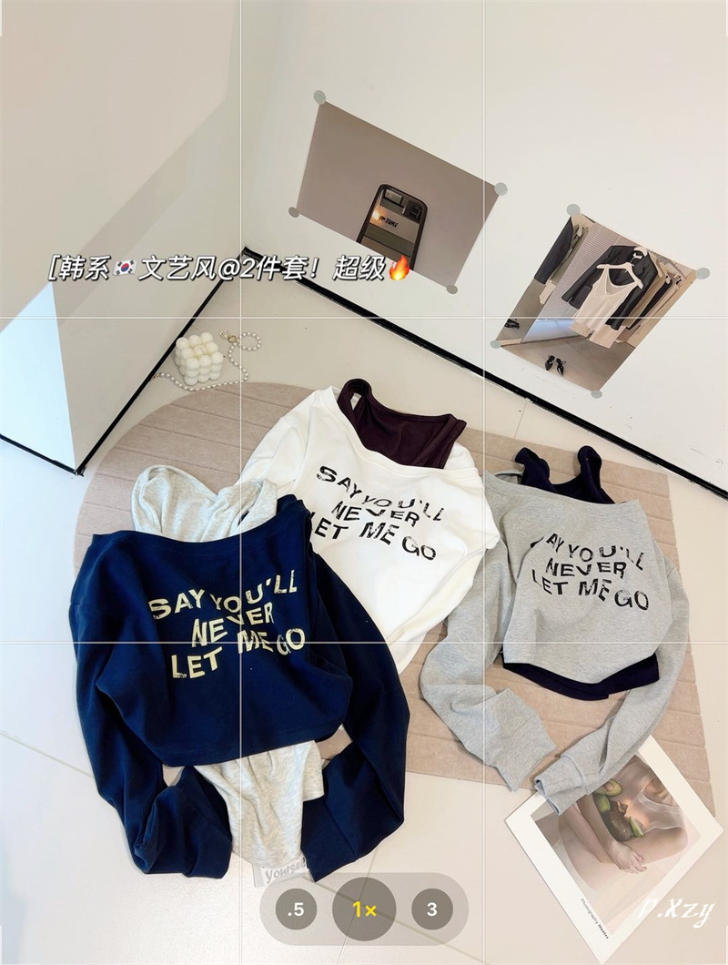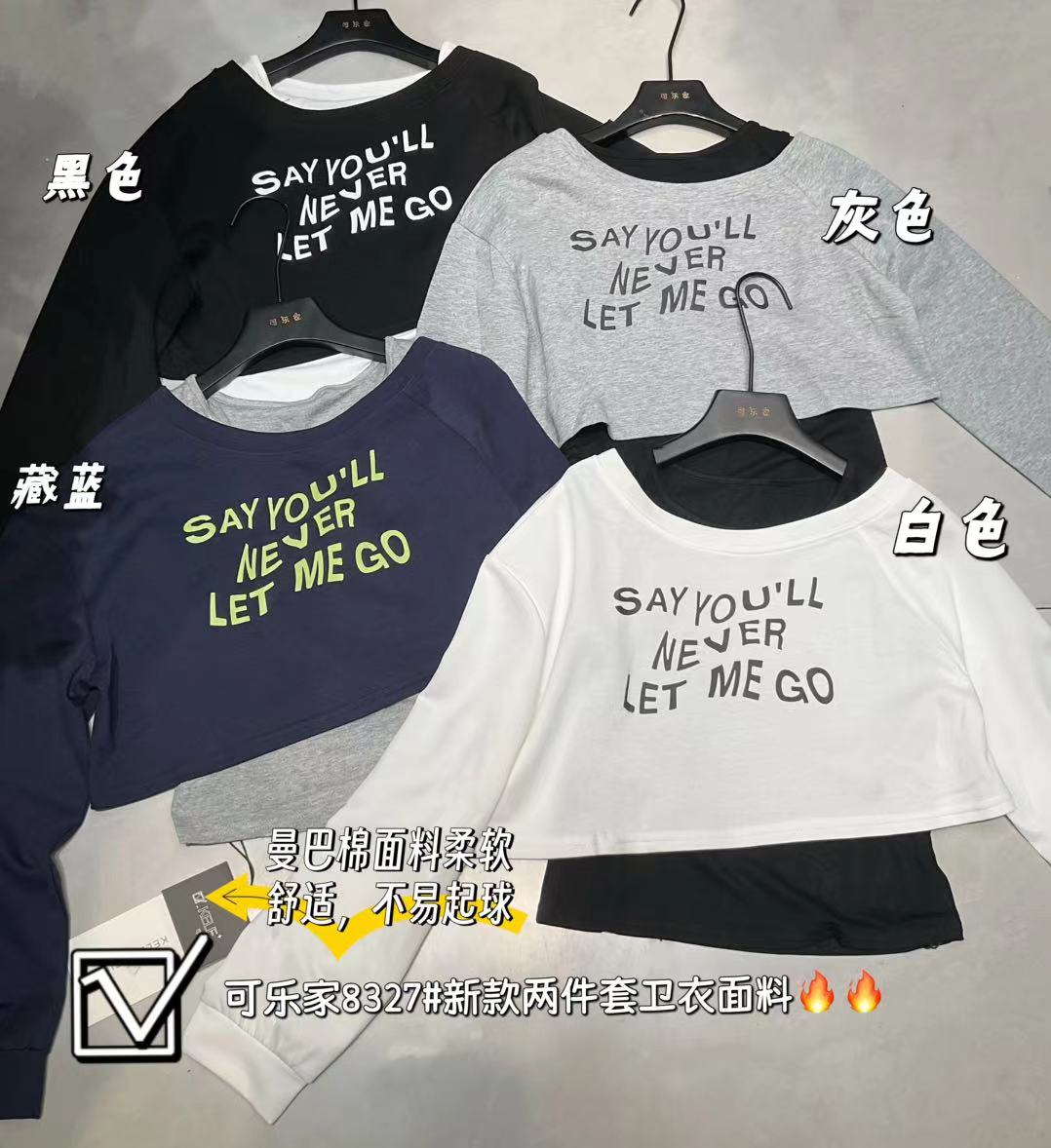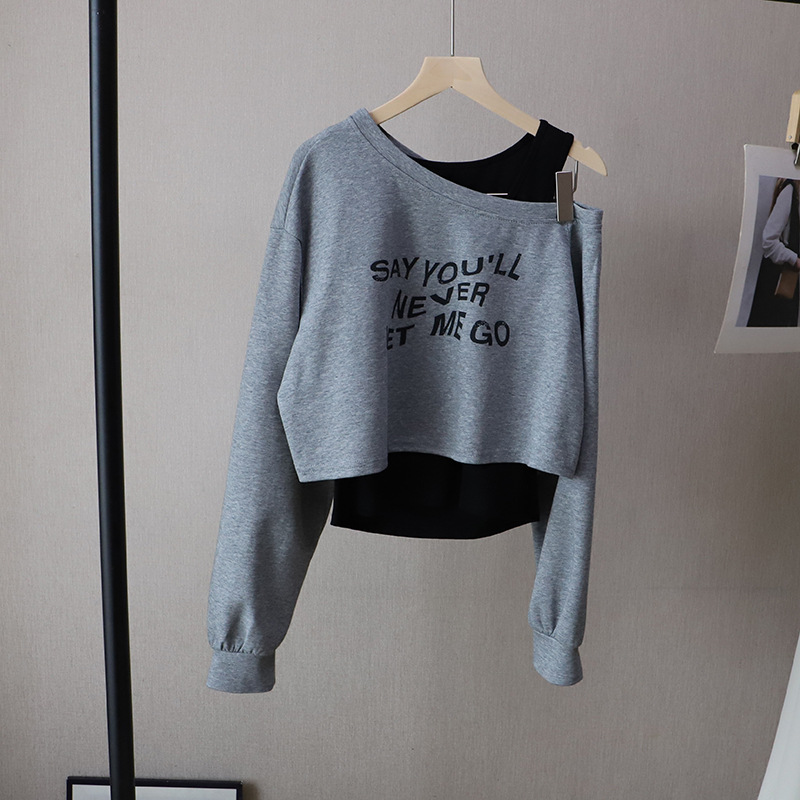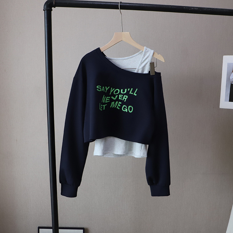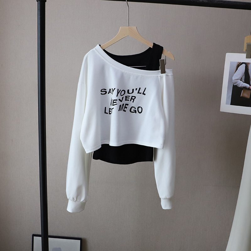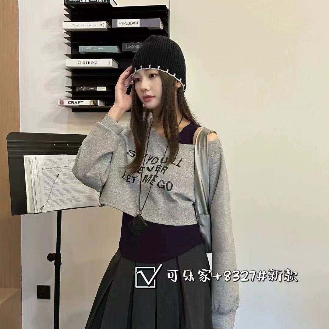 【GZ】无忧购 秋季慵懒风一字领字母T恤女背心长袖打底衫女士二件套T恤8327(截单后3-5天发货)