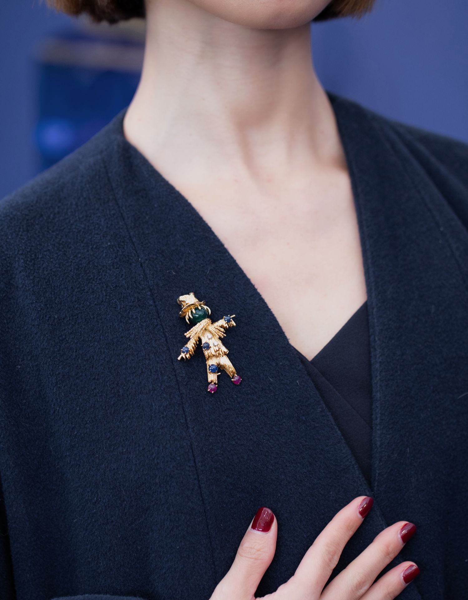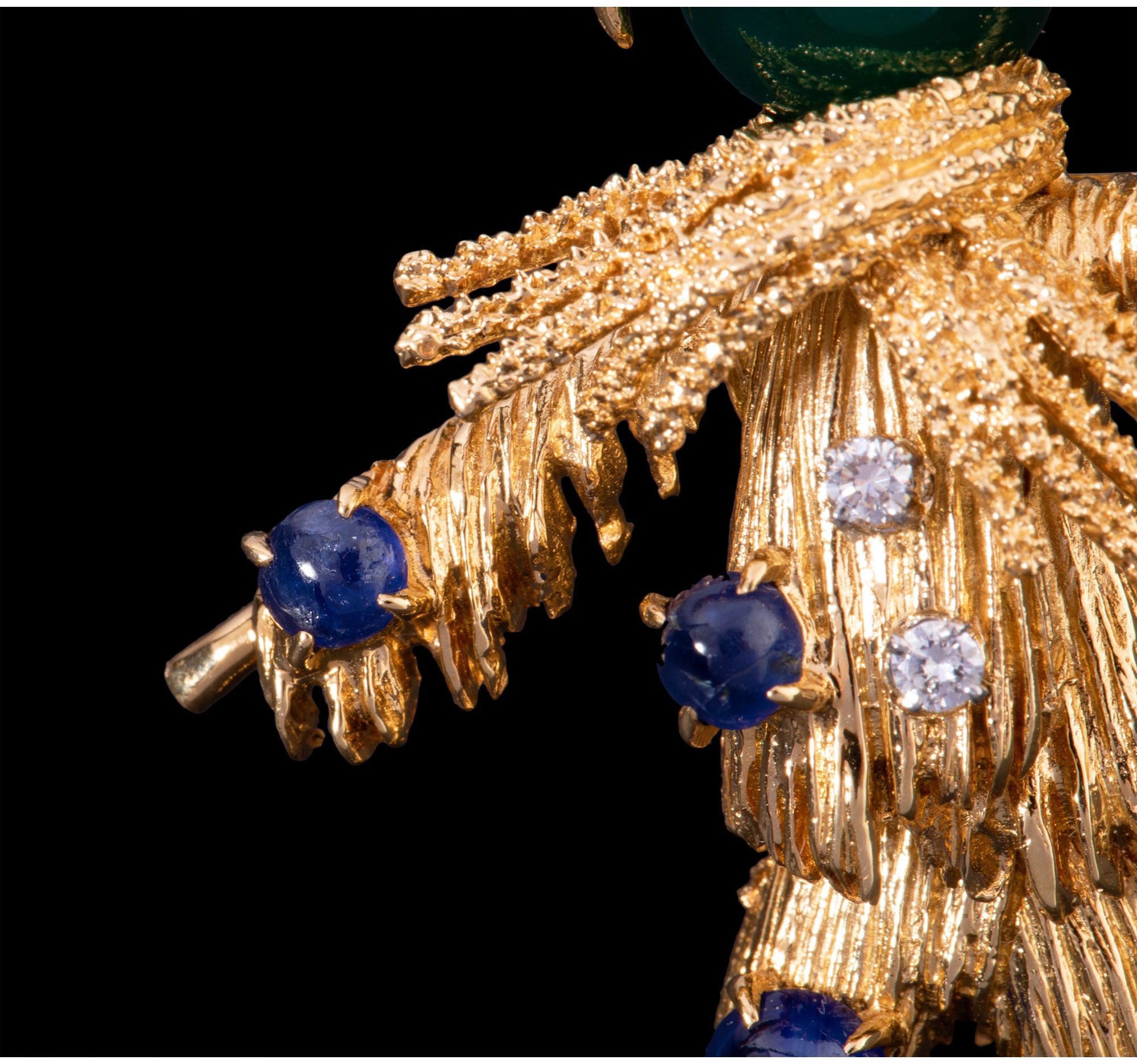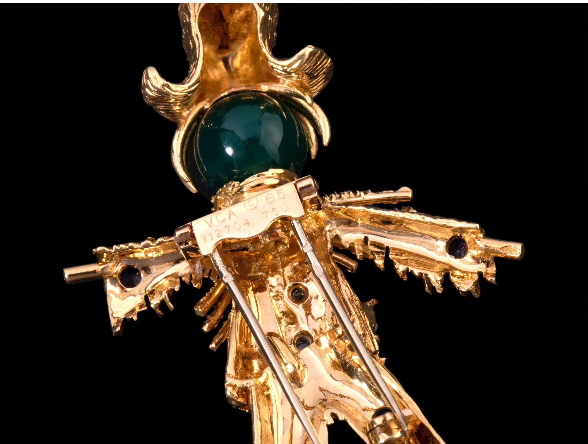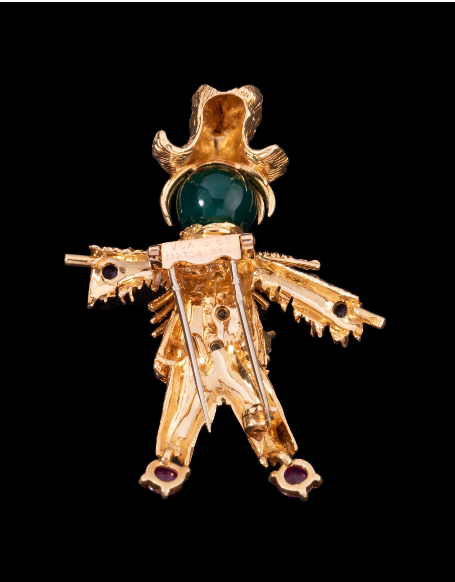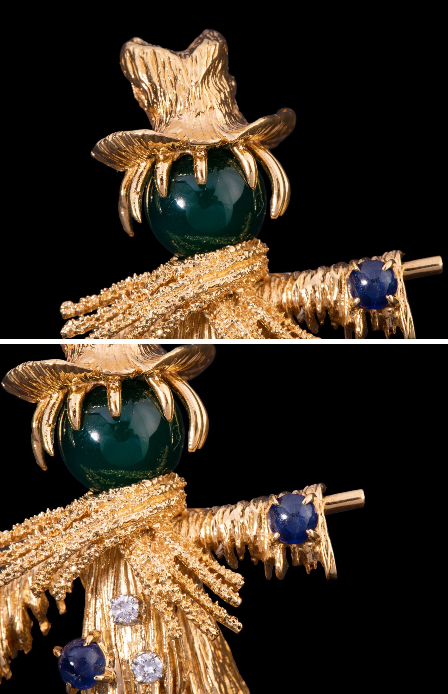独角鹿西洋古董法国18K金镶嵌绿玉髓蓝宝石红宝石钻石稻草人胸针