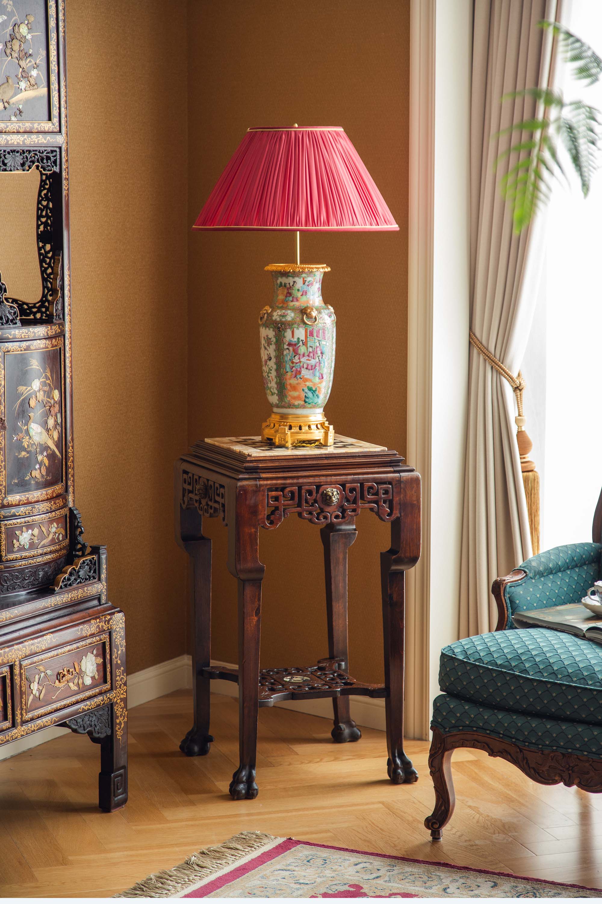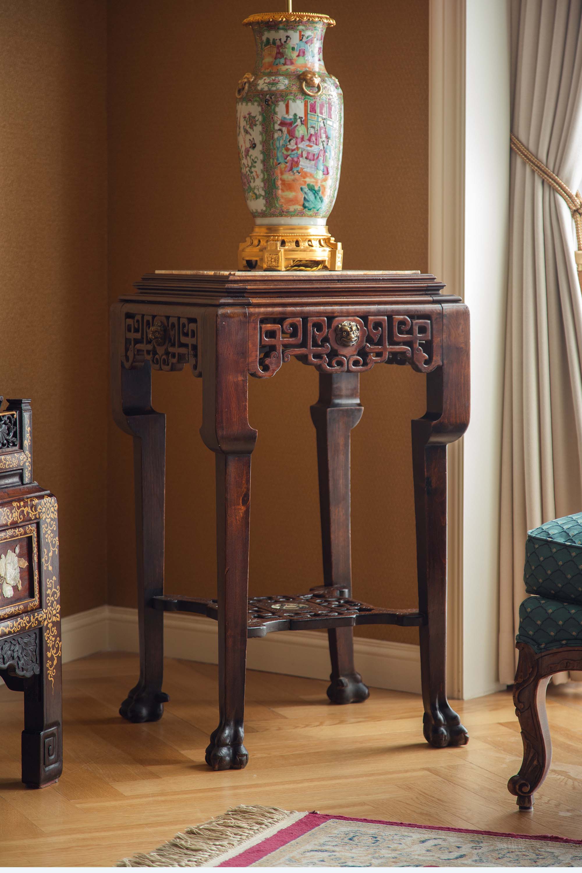 材质:硬木,铜鎏金,大理石