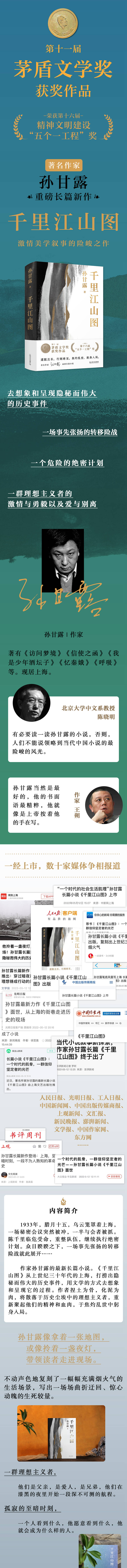 【赠印签藏书票】千里江山图 刷边钤印 精装版 第十一届茅盾文学奖获奖作品 22年中国好书(孙甘露令人惊叹的长篇新作!刘擎、马伯庸、李诞盛赞!以惊人的文学性呈现30年代上海惊心动魄的隐秘战争)