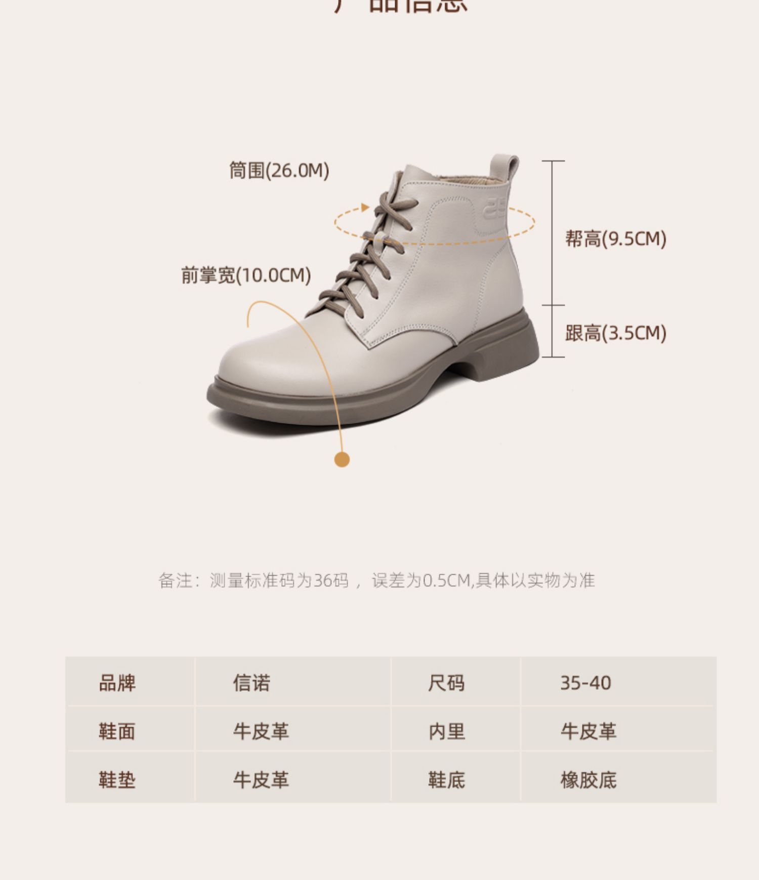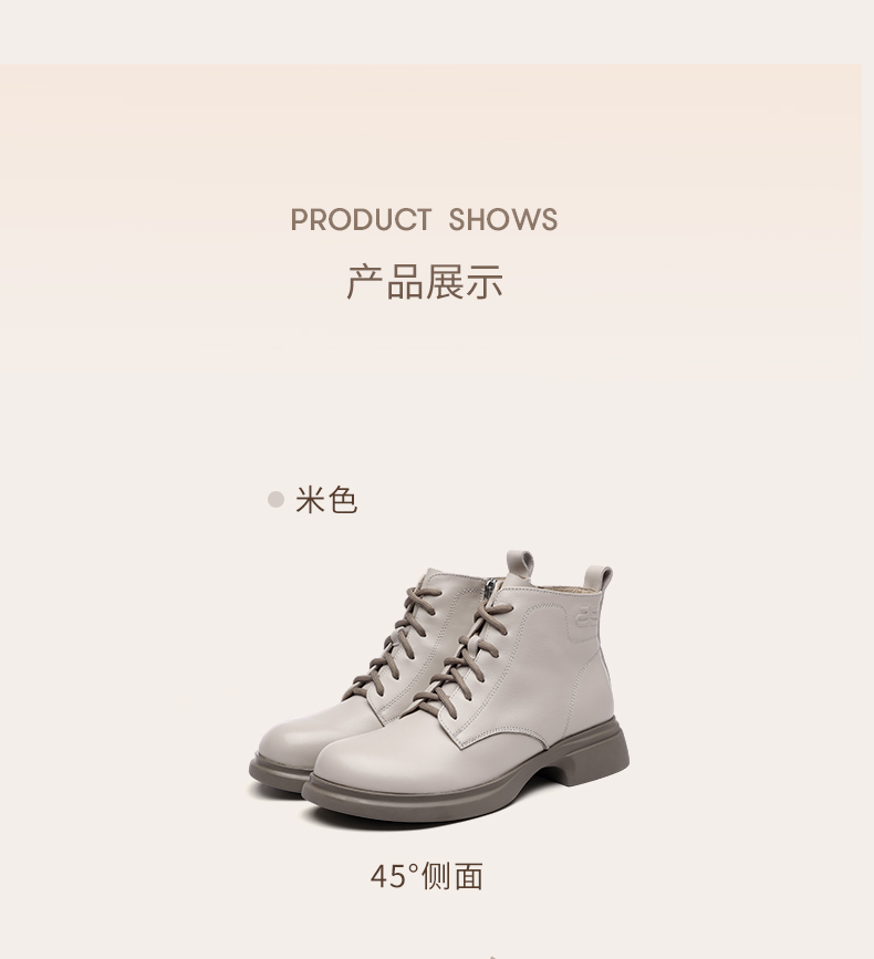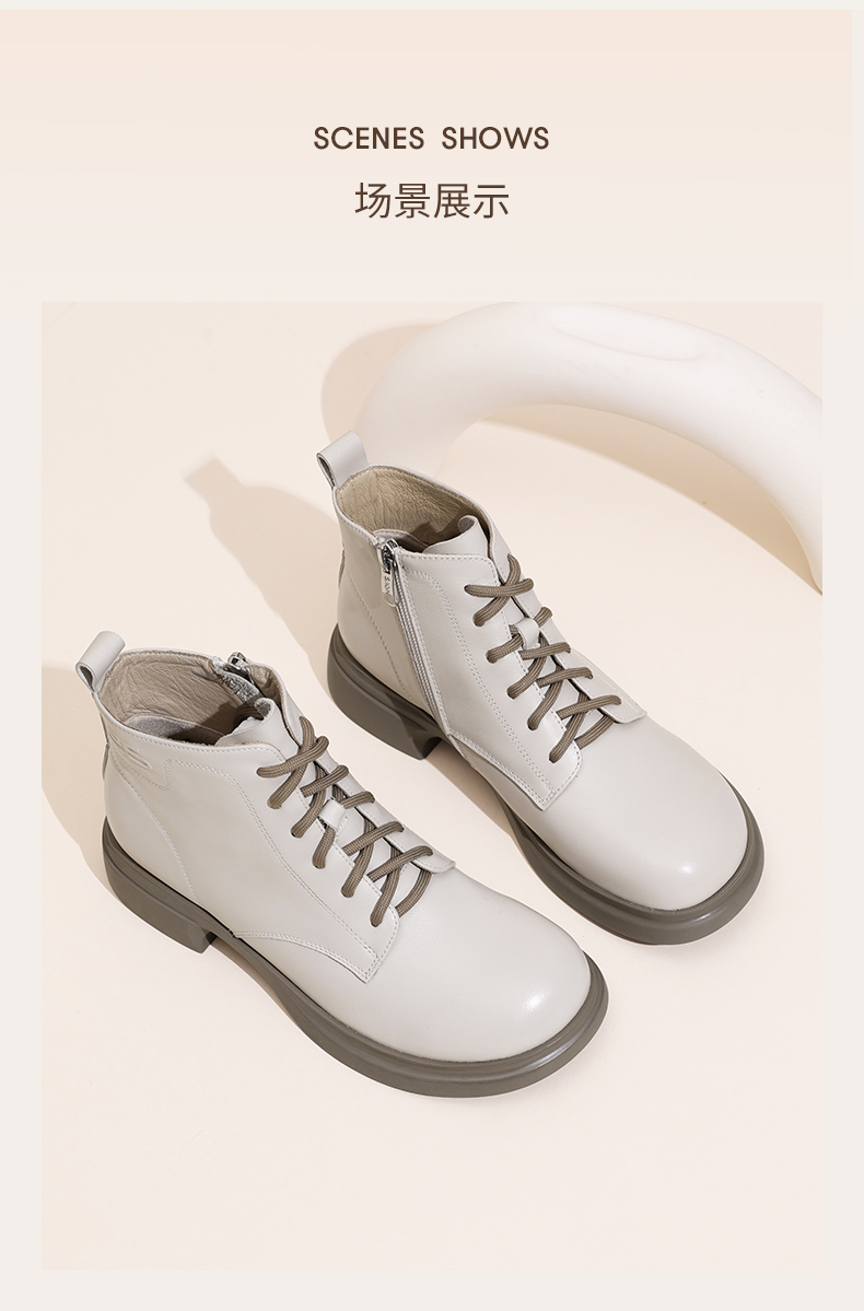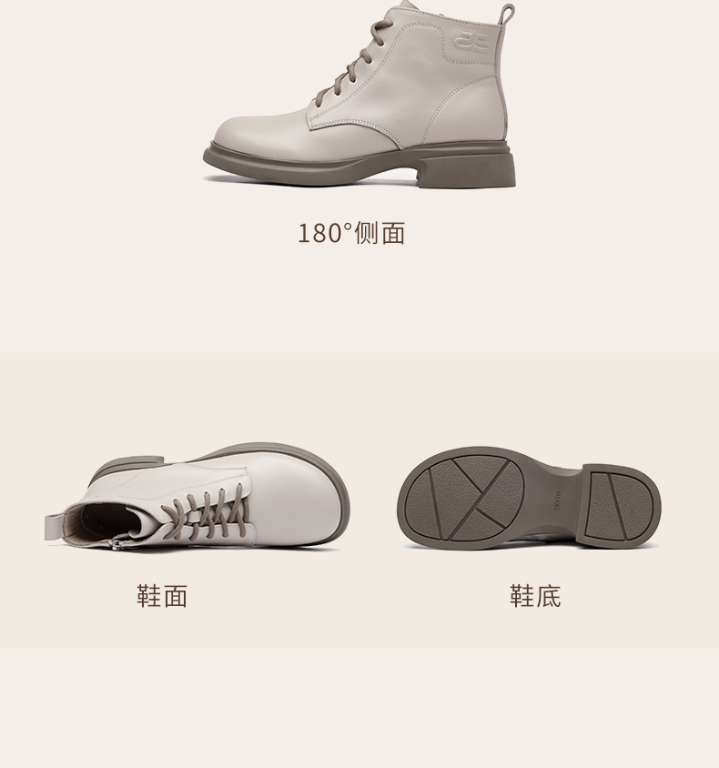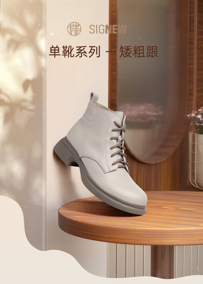 信诺真皮马丁靴女款2024秋冬新款粗跟短筒靴子单靴中年妈妈鞋皮鞋X24Q118-70