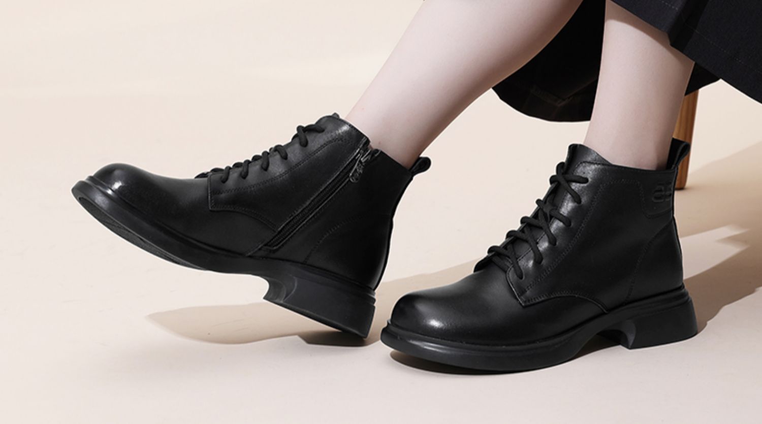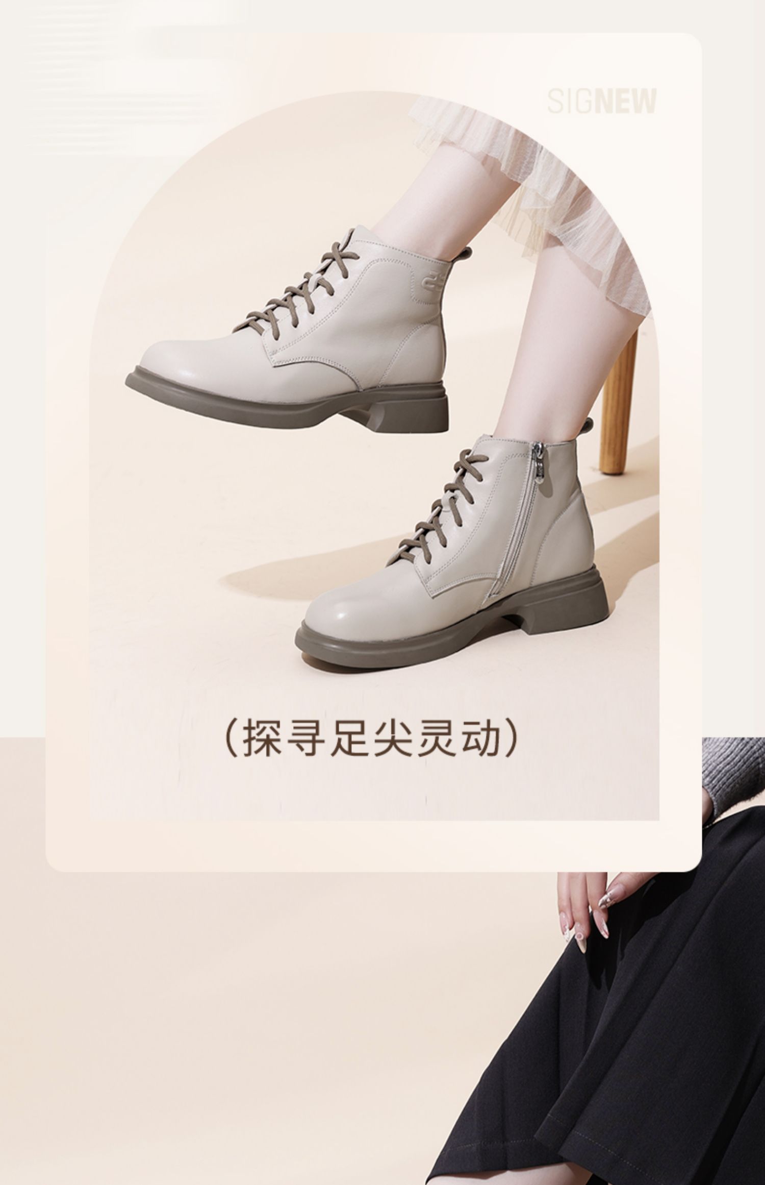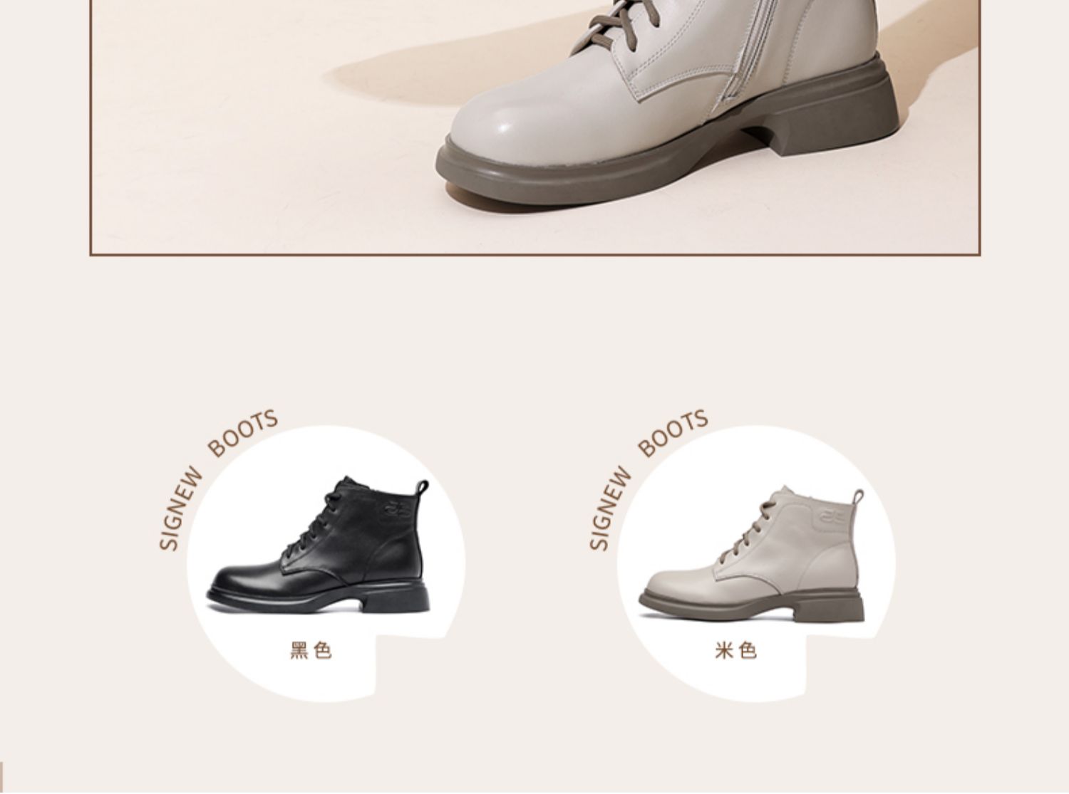 信诺真皮马丁靴女款2024秋冬新款粗跟短筒靴子单靴中年妈妈鞋皮鞋X24Q118-70