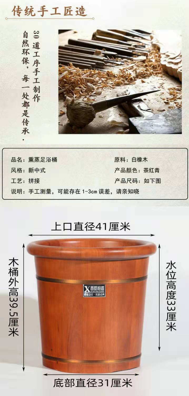 红橡木泡脚桶36cm高 泡脚盆 足浴中木桶 足浴桶 足浴盆