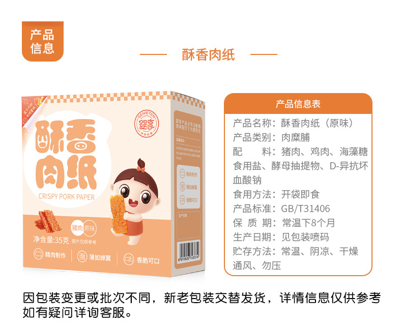 婴享酥香肉纸儿童零食猪肉脯原味肉脯正品休闲肉片即食35g