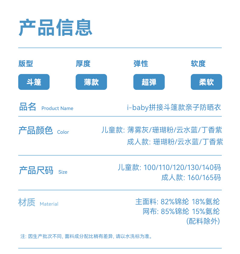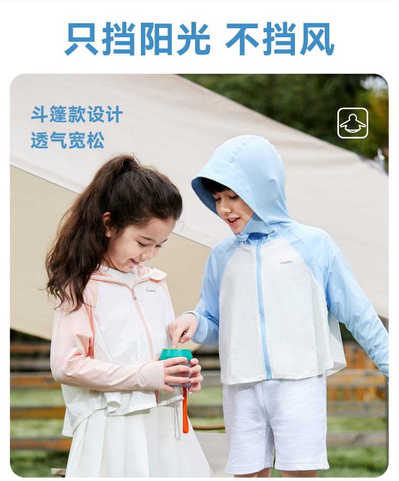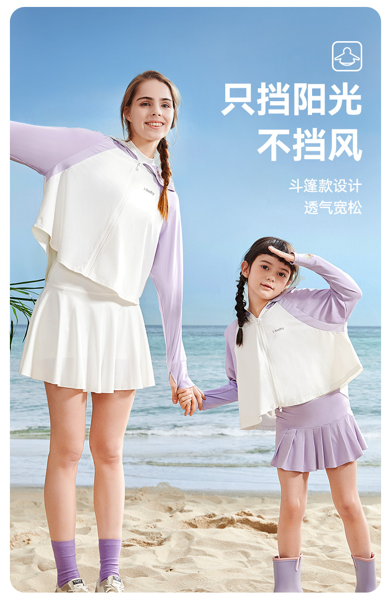i-baby/英伦宝贝夏季清爽冰感儿童/成人拼接斗篷款防晒衣防紫外线亲子款