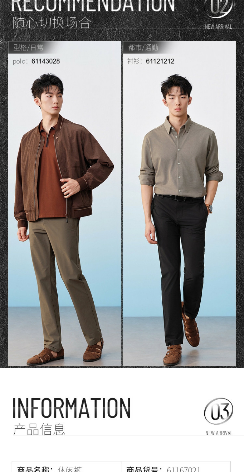 G2000男装SS26商场新款【多面弹/速干】时尚百搭直筒休闲裤61167021