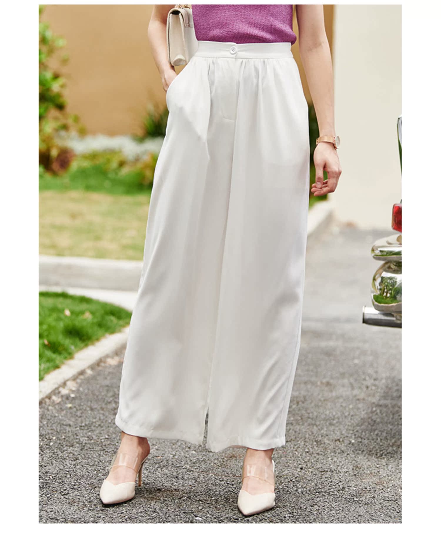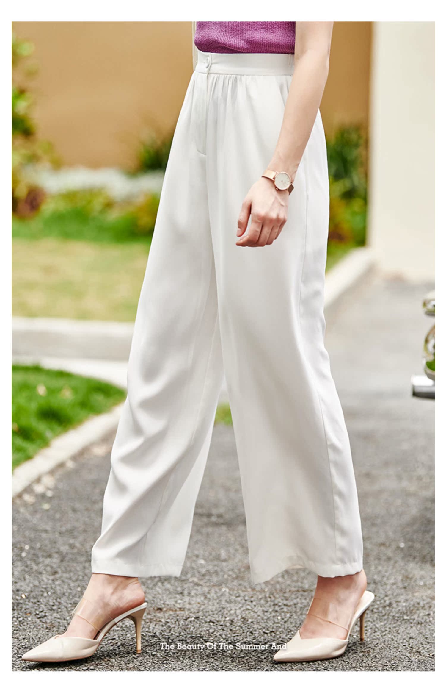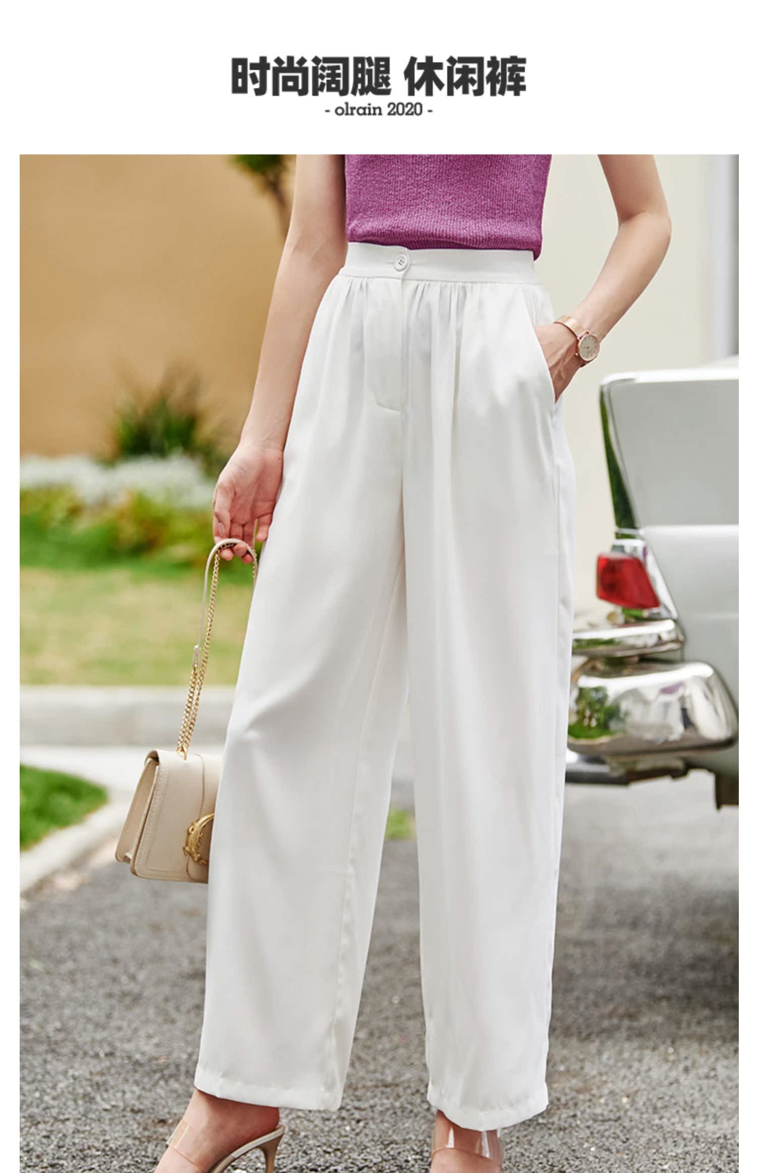 欧芮儿高腰显瘦白色休闲裤女2021新款夏季垂感直筒宽松阔腿长裤子