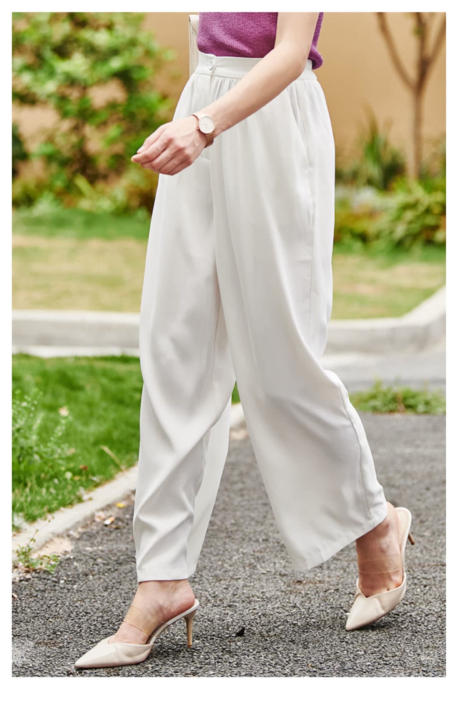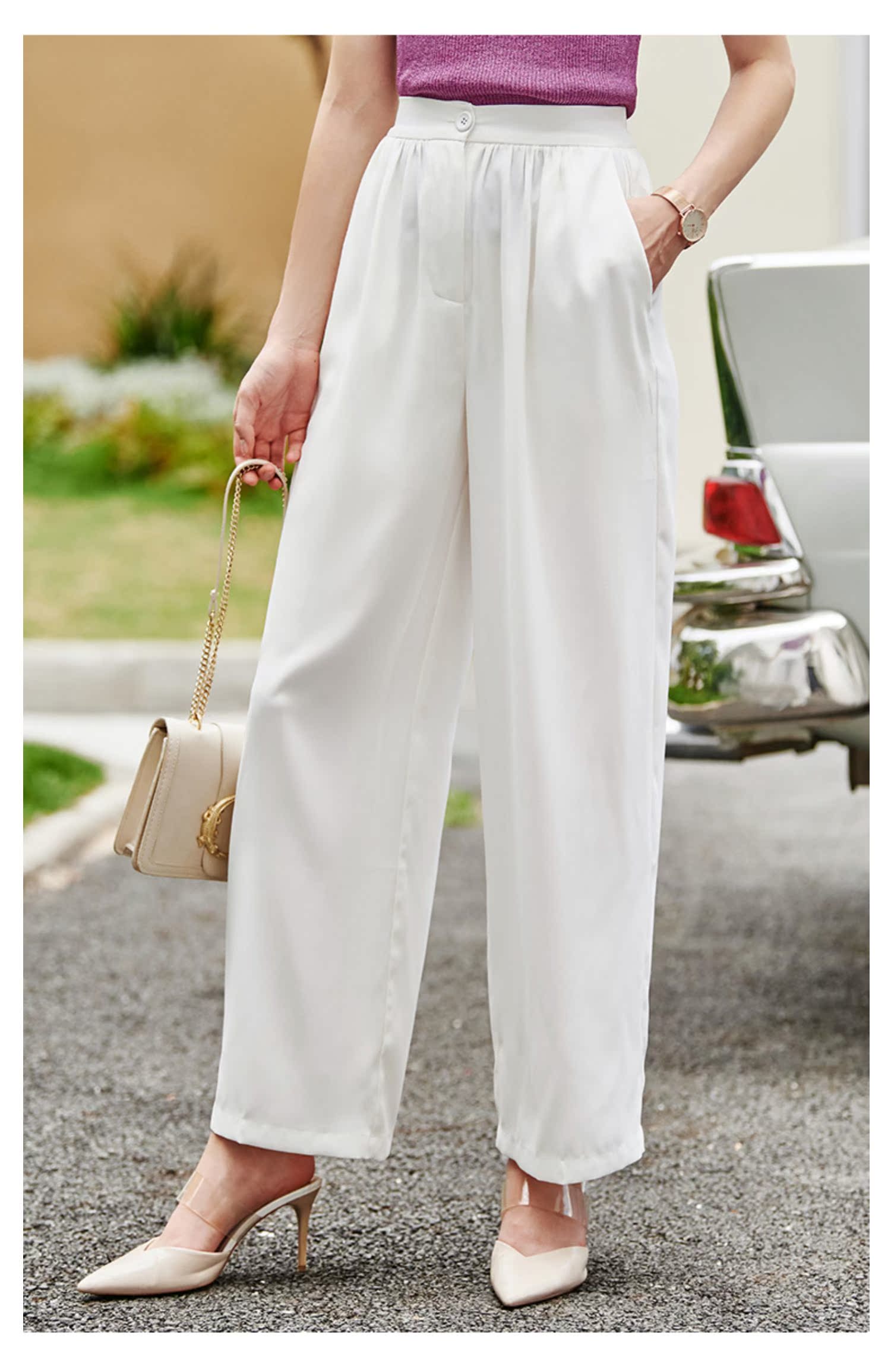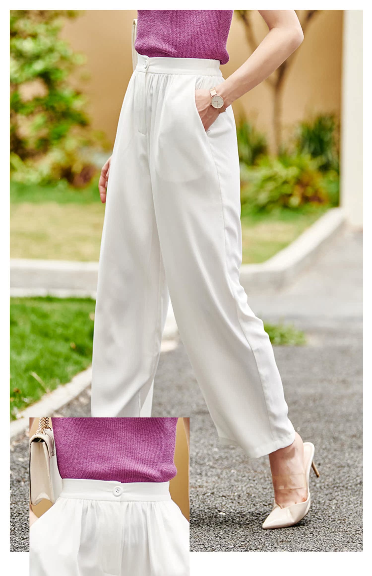 欧芮儿高腰显瘦白色休闲裤女2021新款夏季垂感直筒宽松阔腿长裤子