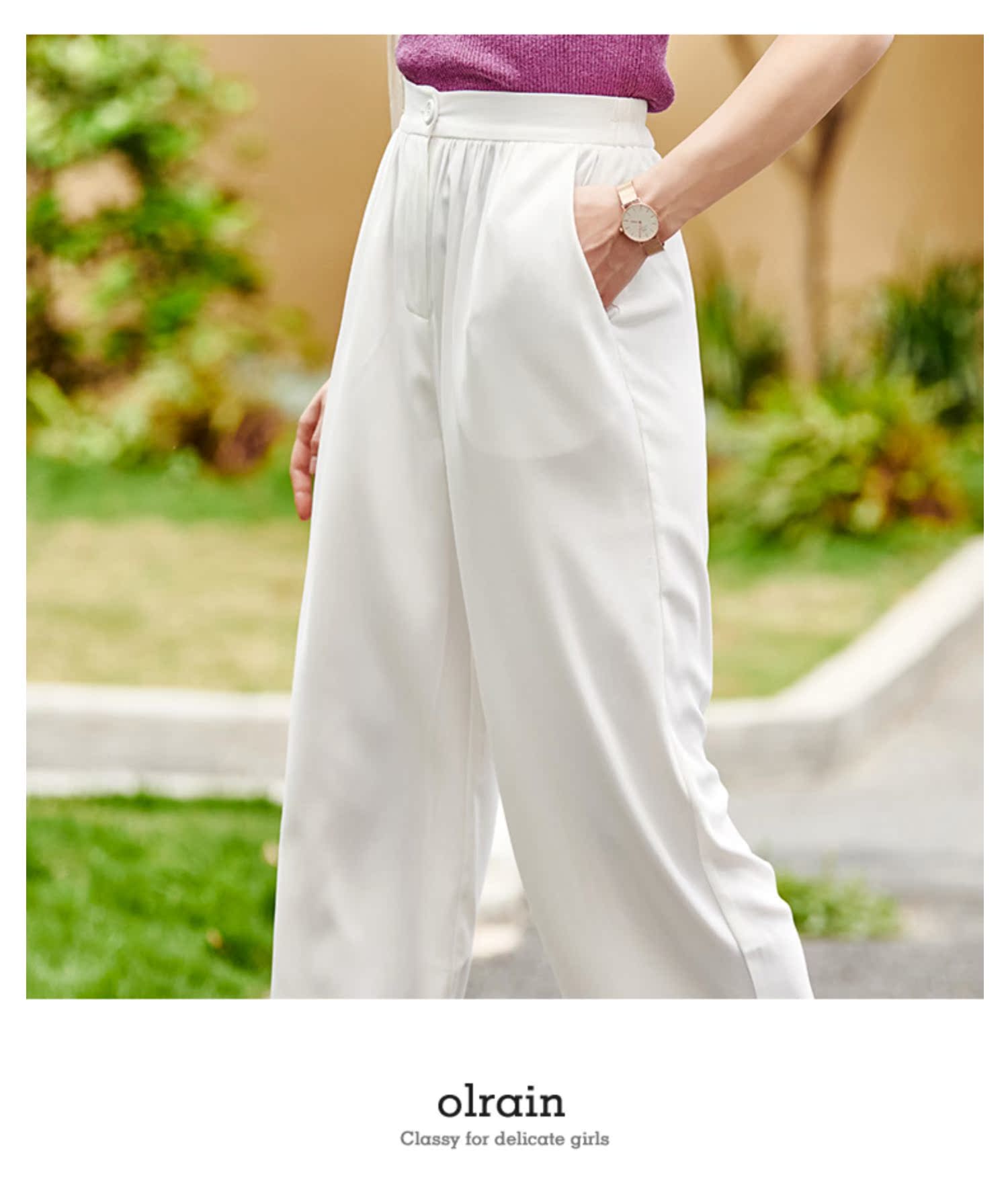 - “精致”是欧芮儿olrain品牌文化的核心,欧芮儿认为,精致的女人,不但要外在动人,更要内在迷人,内外兼修,有魅力、有气质、有内涵,自信而不自傲,优雅而不矫揉,自有万种风情而不轻浮,更不故作矜持。