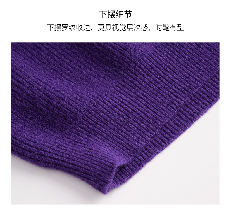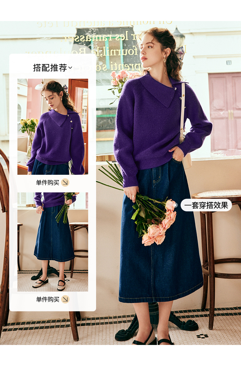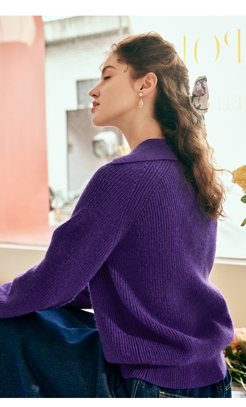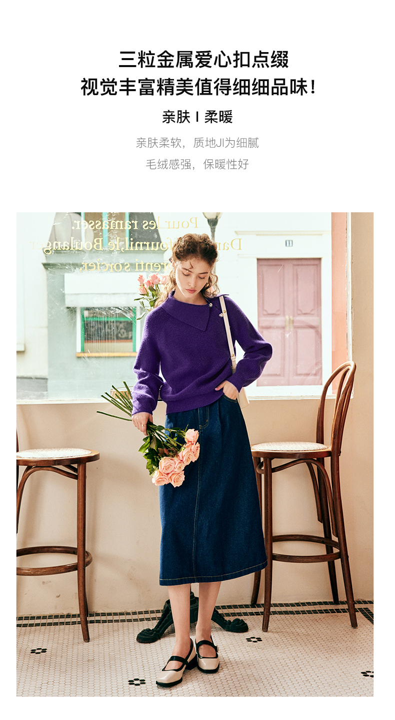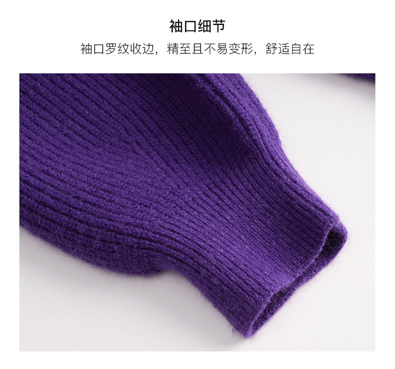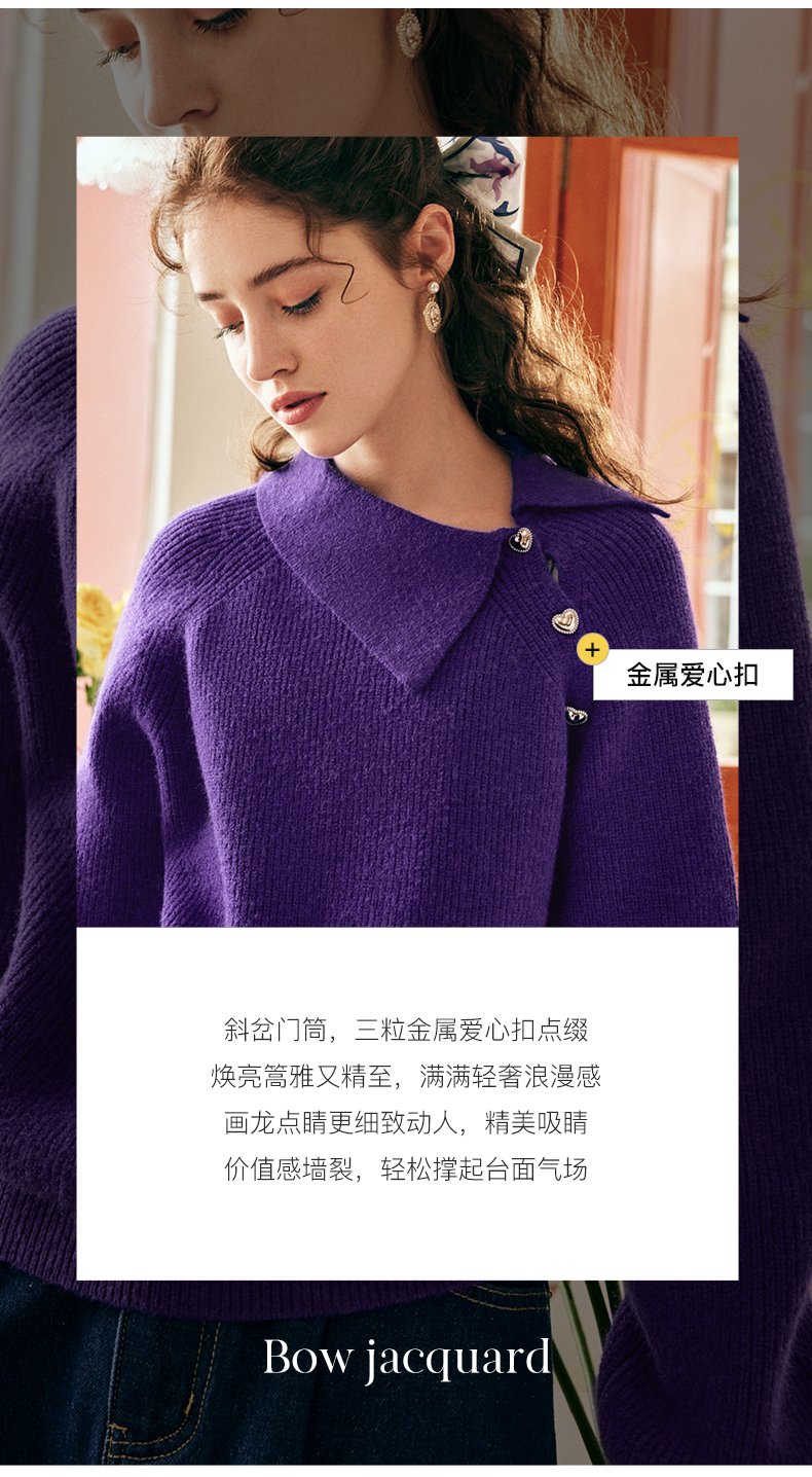 OLrain欧芮儿法式紫色毛衣女秋冬2022年新款不对称翻领毛绒针织衫