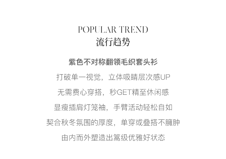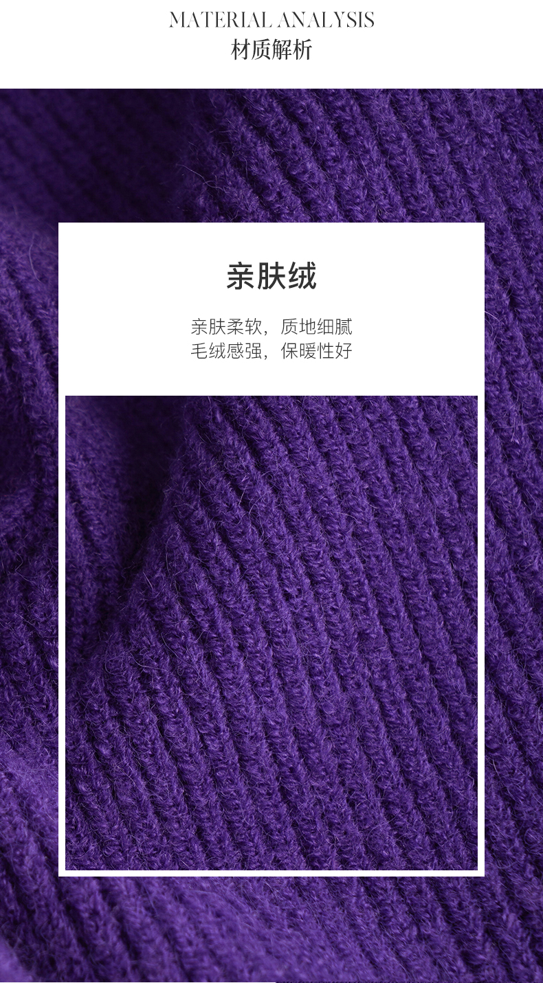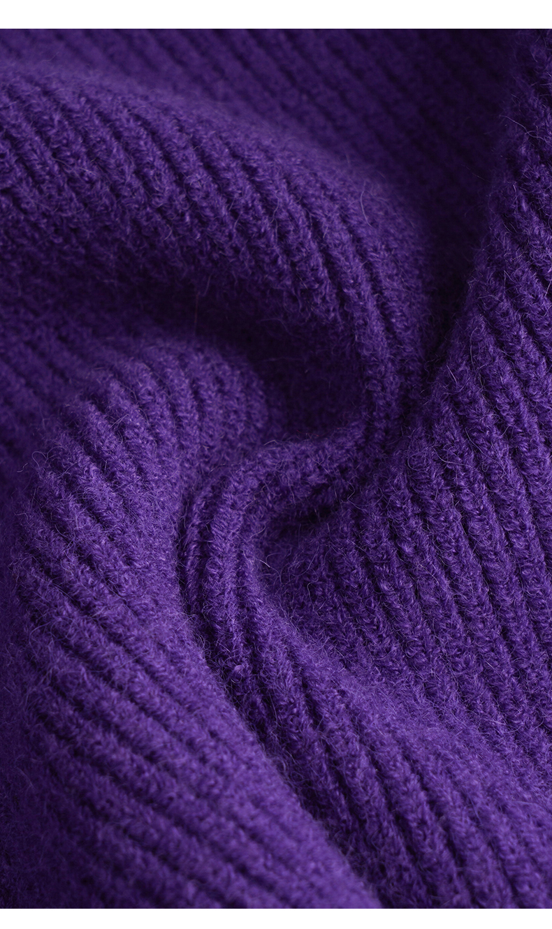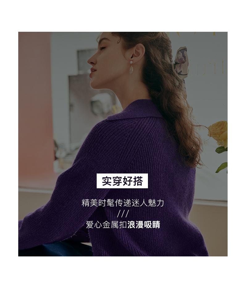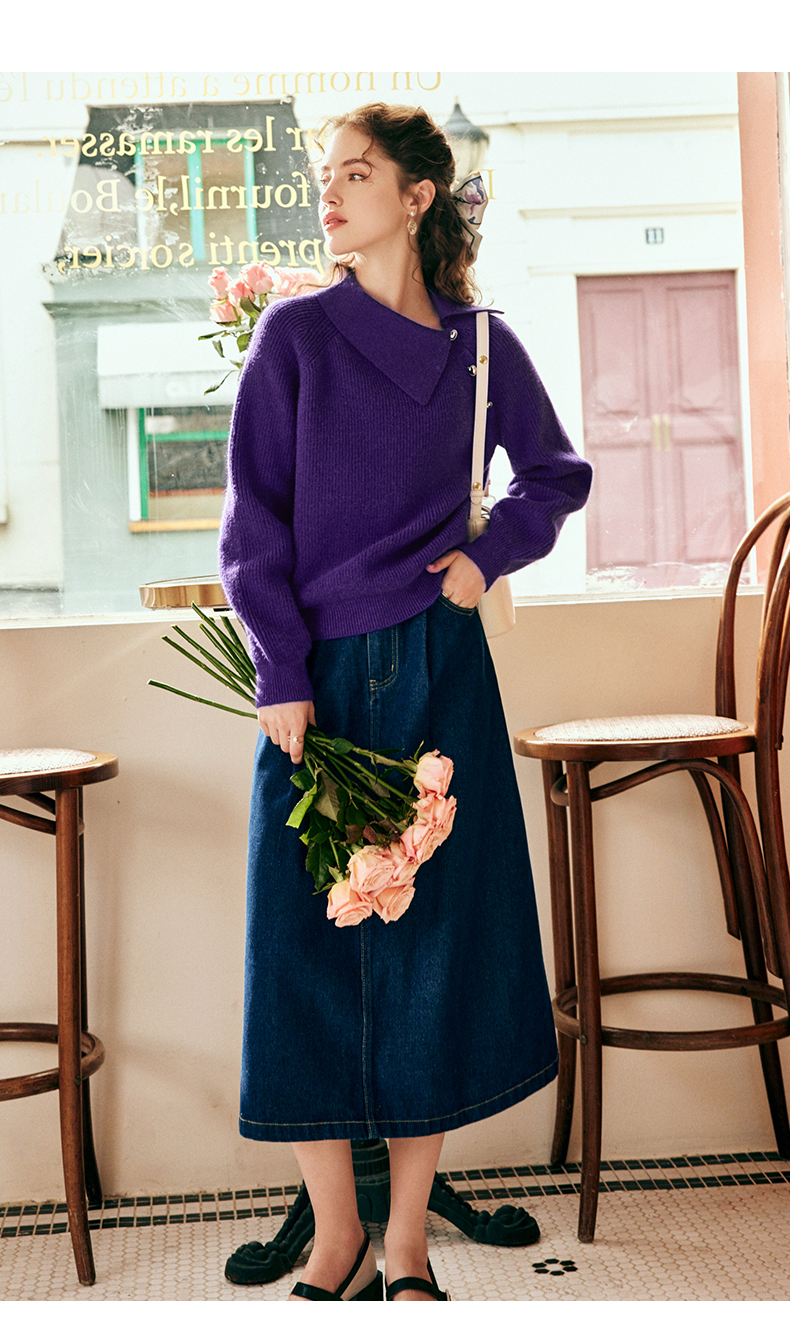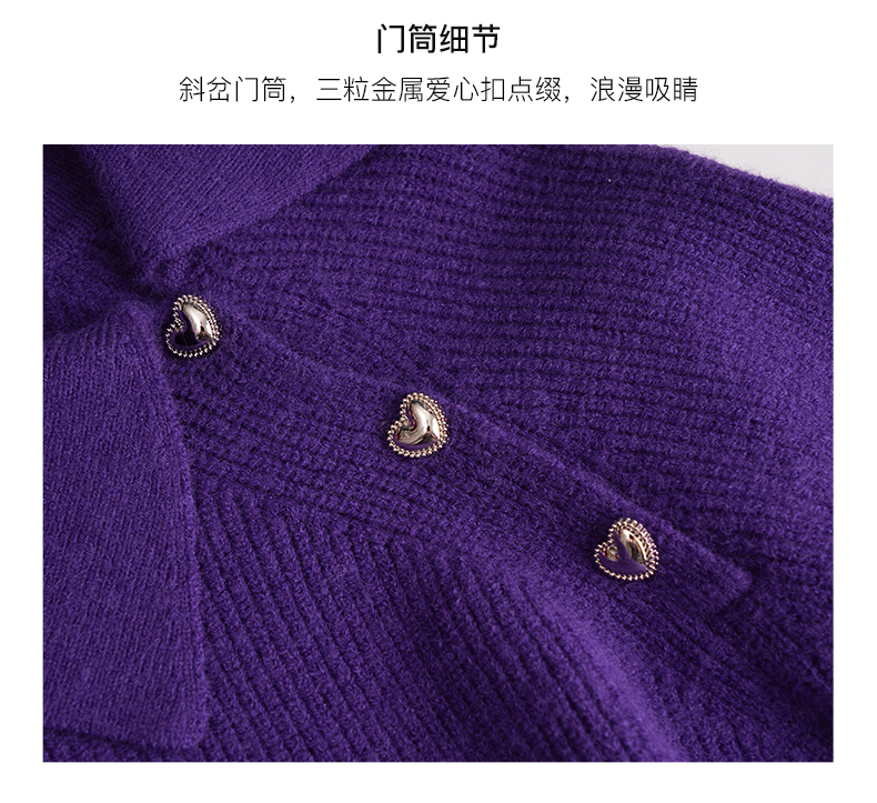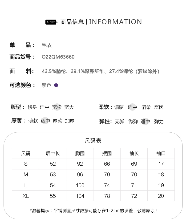 OLrain欧芮儿法式紫色毛衣女秋冬2022年新款不对称翻领毛绒针织衫