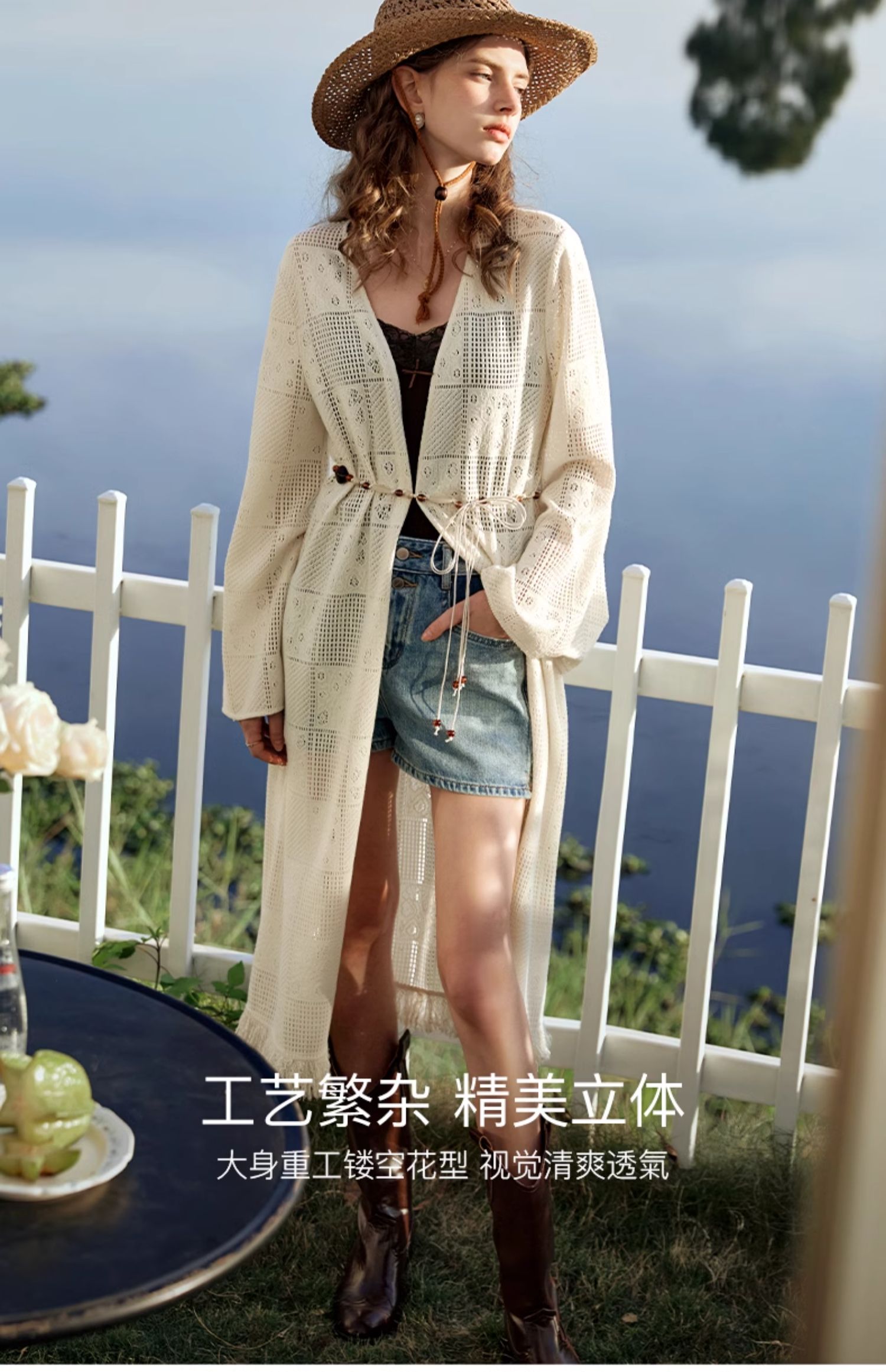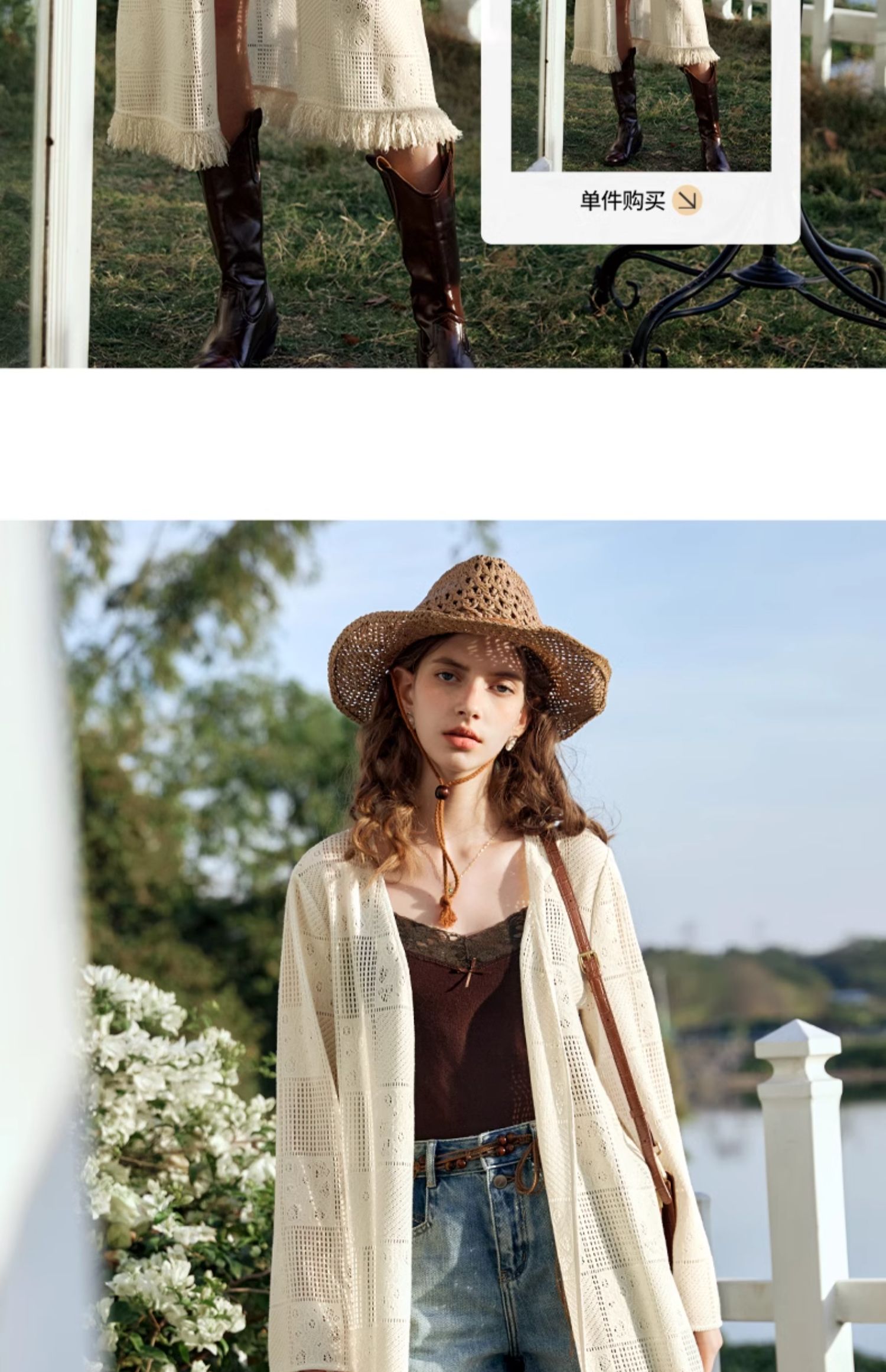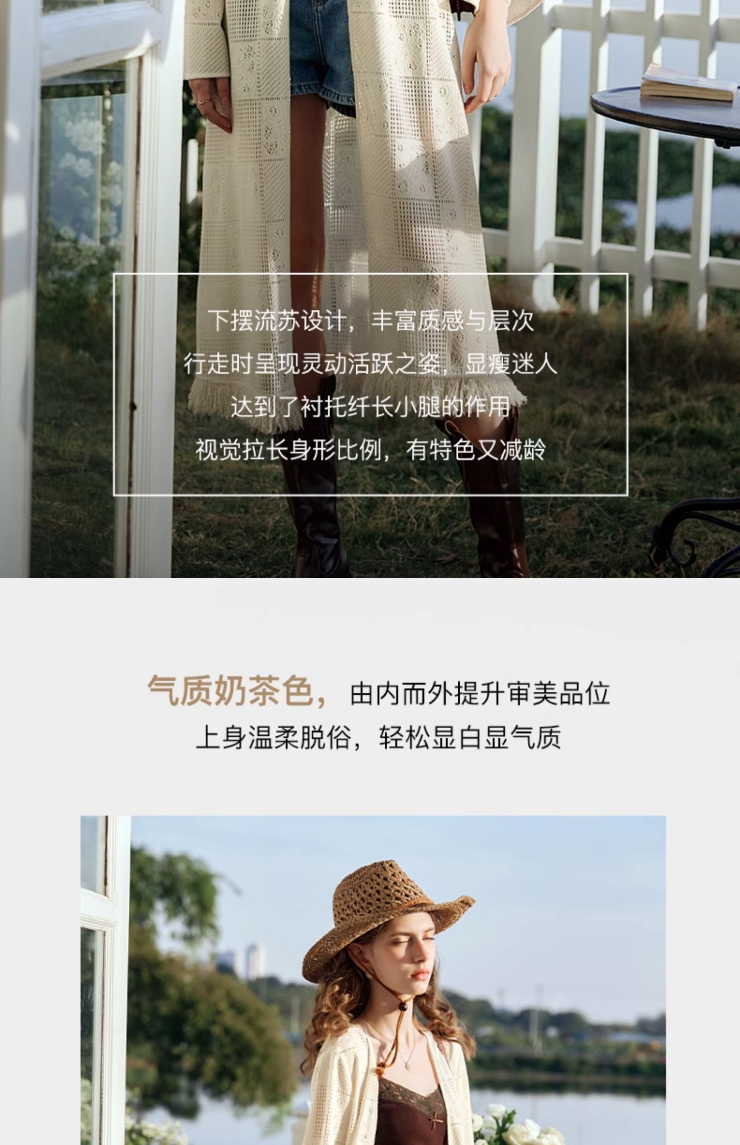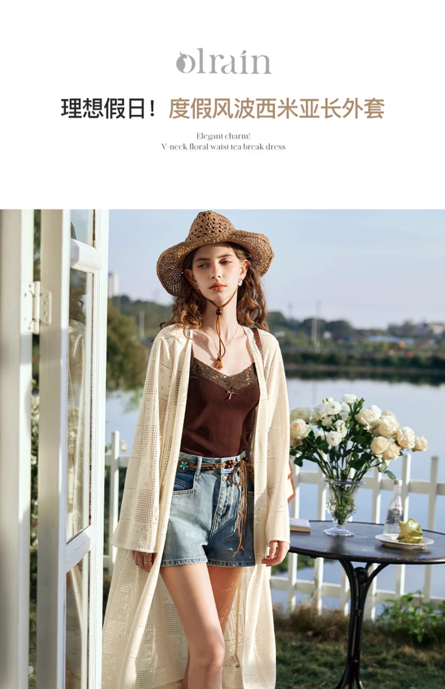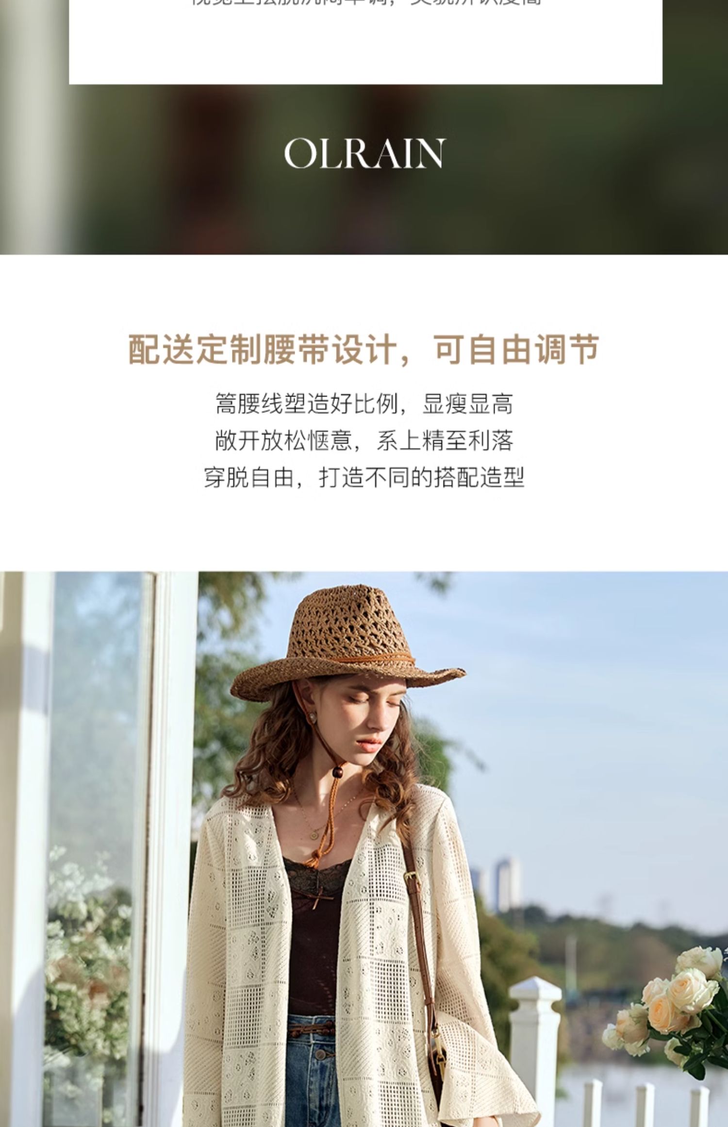 OLrain欧芮儿奶茶色短外套女春季2024年新款波西米亚镂空针织衫