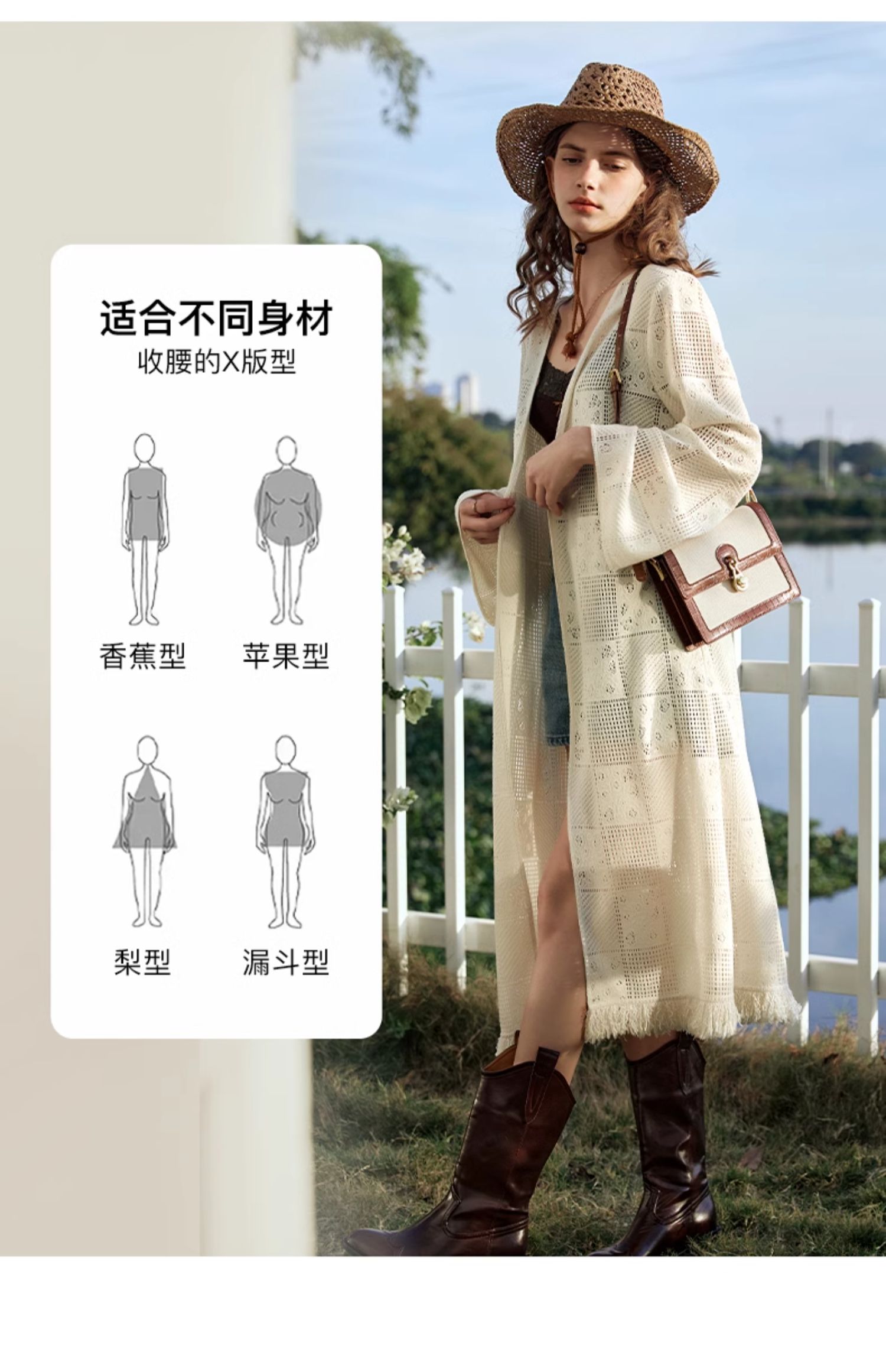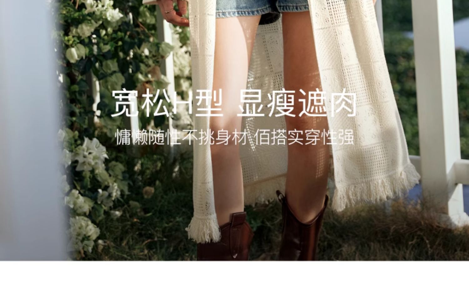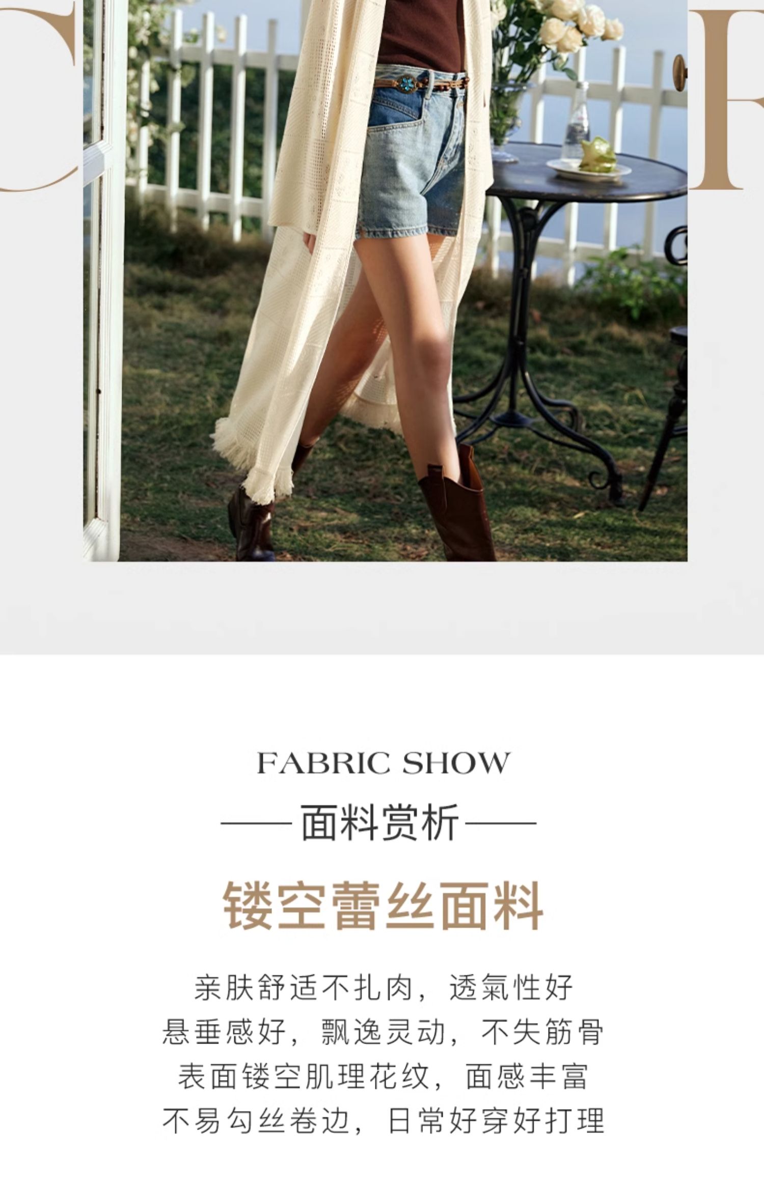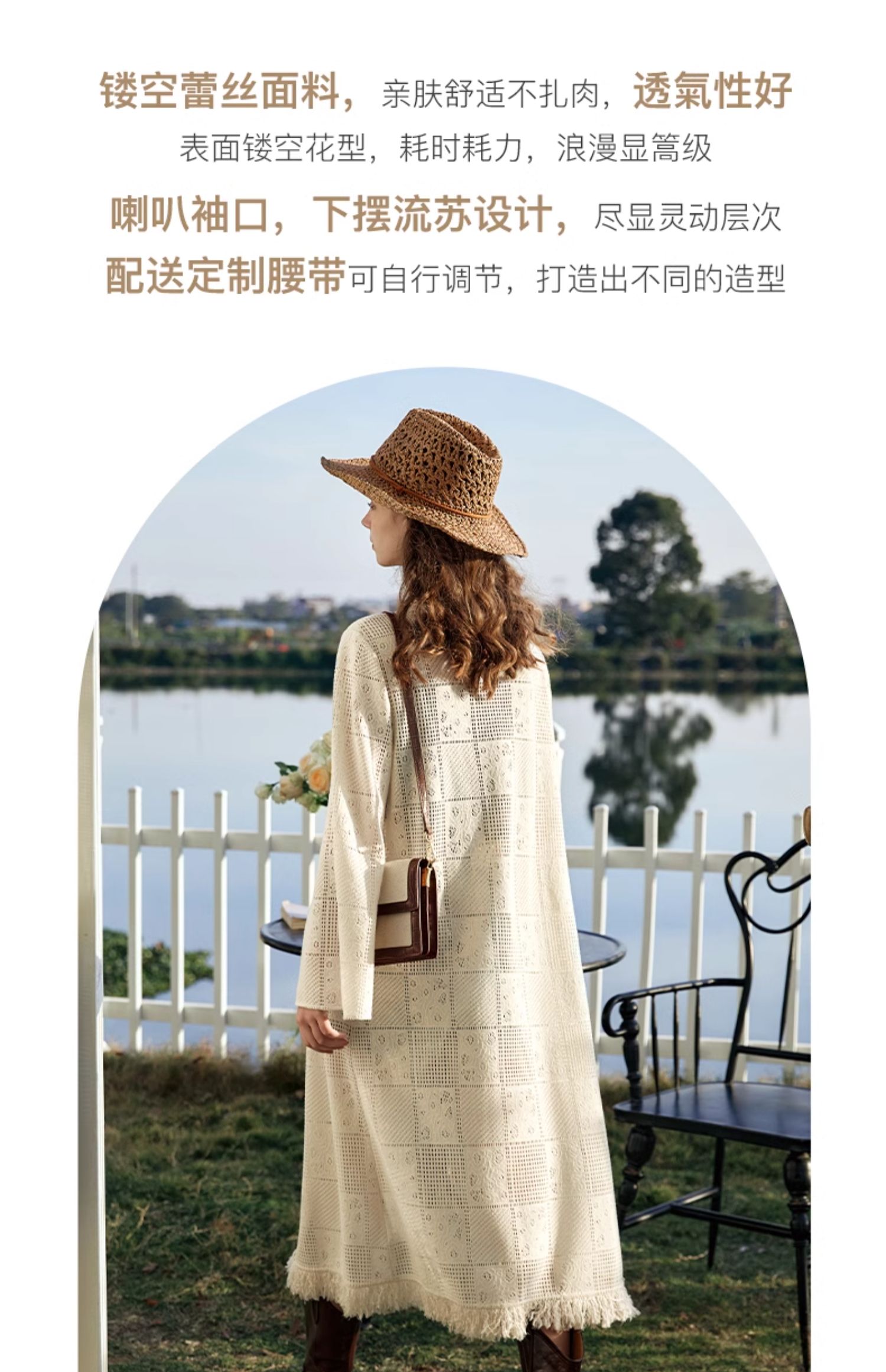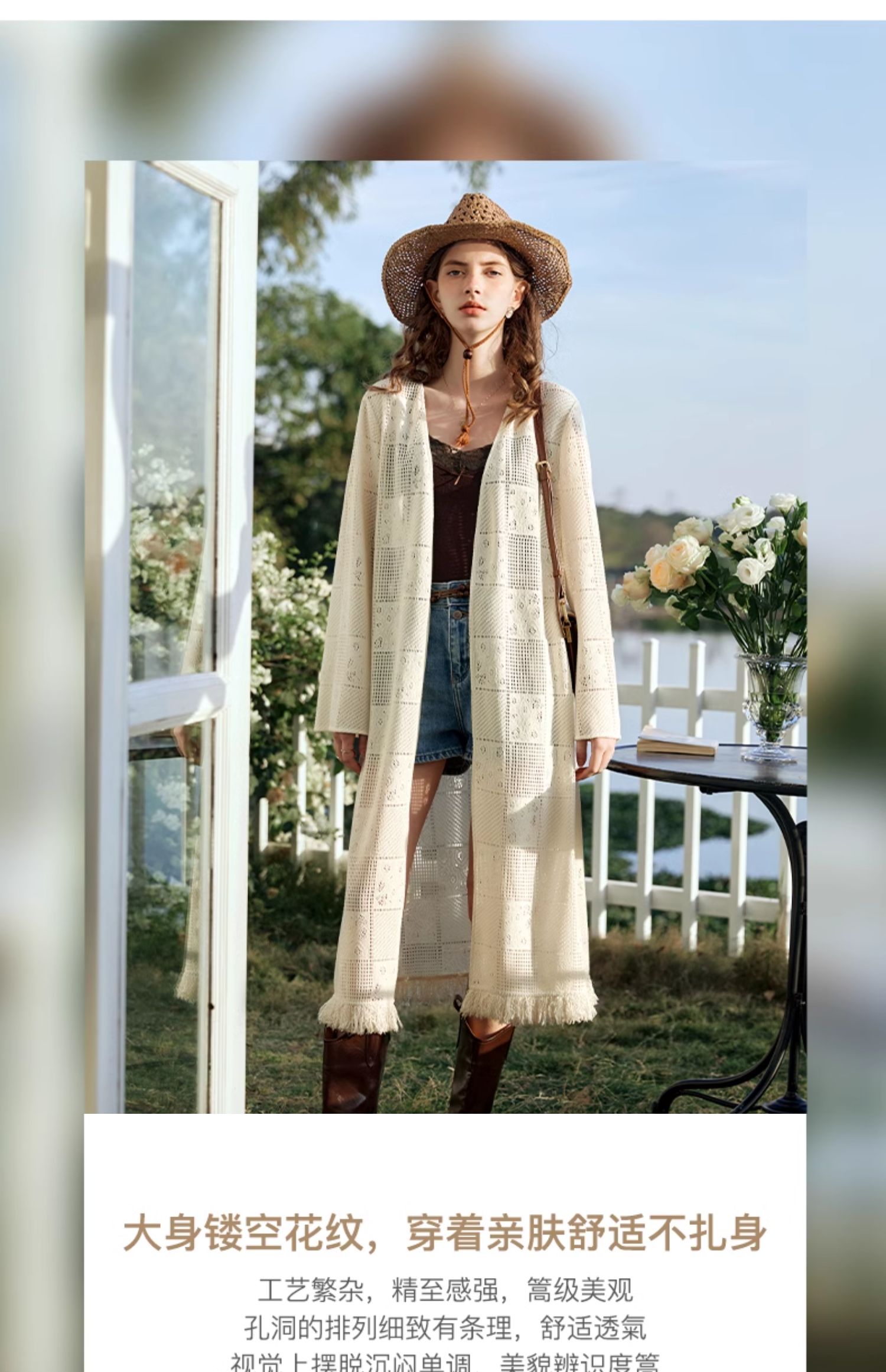 OLrain欧芮儿奶茶色短外套女春季2024年新款波西米亚镂空针织衫