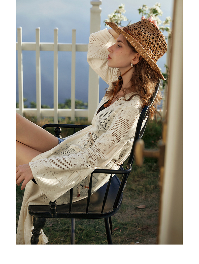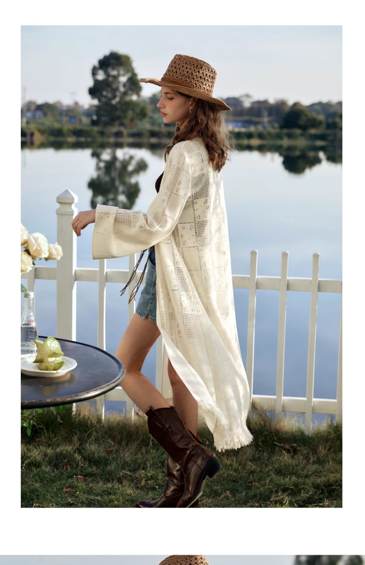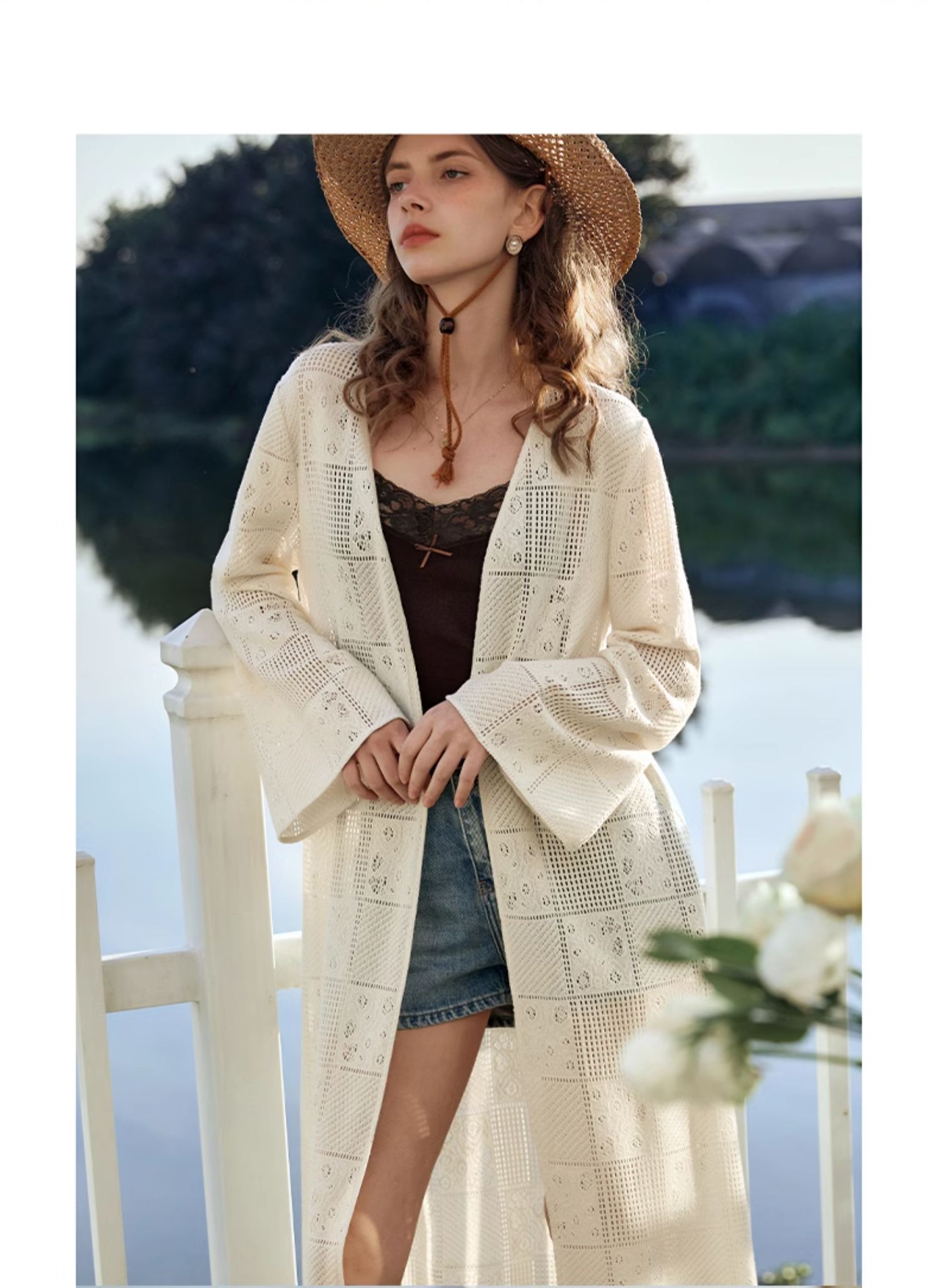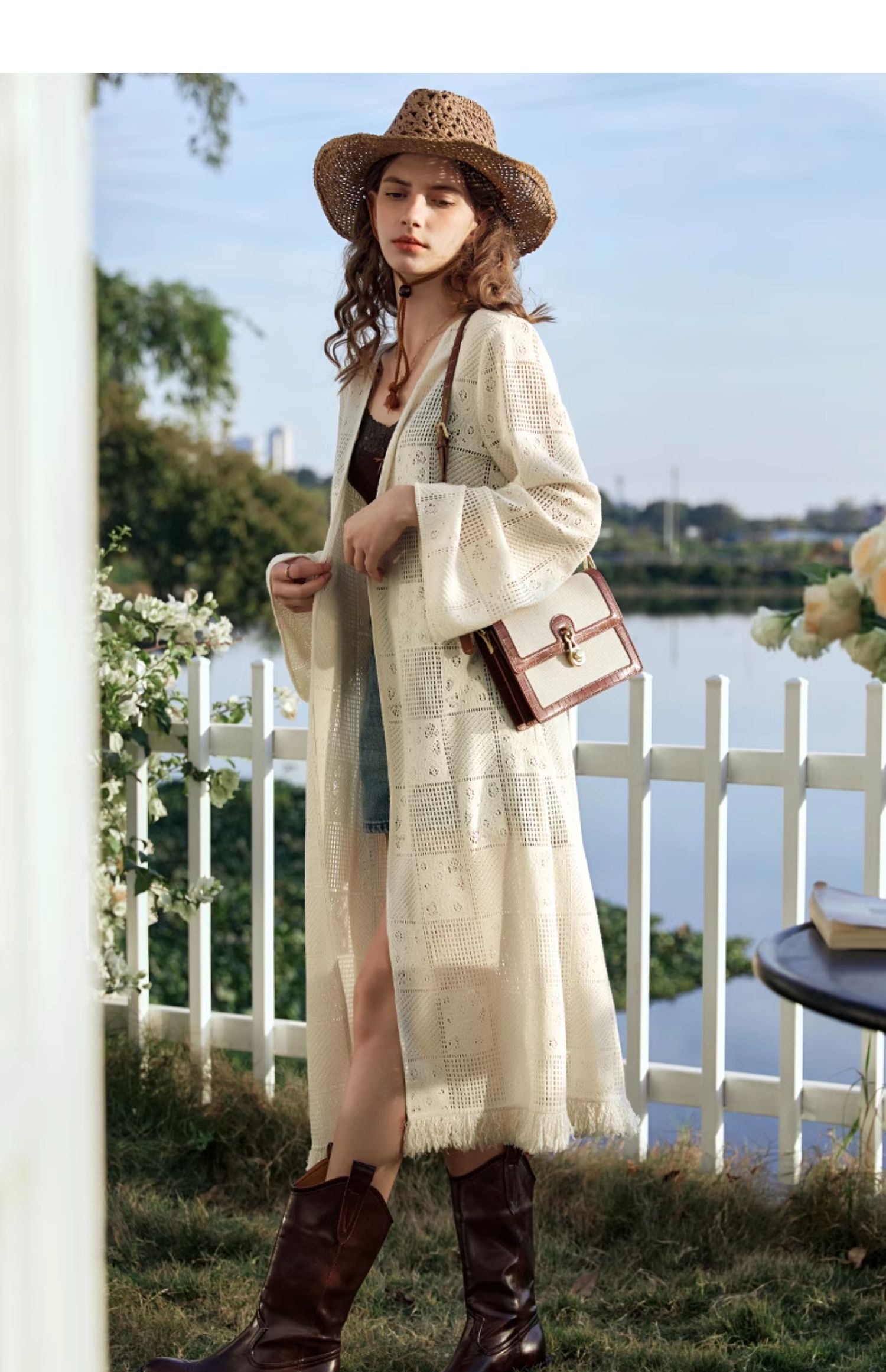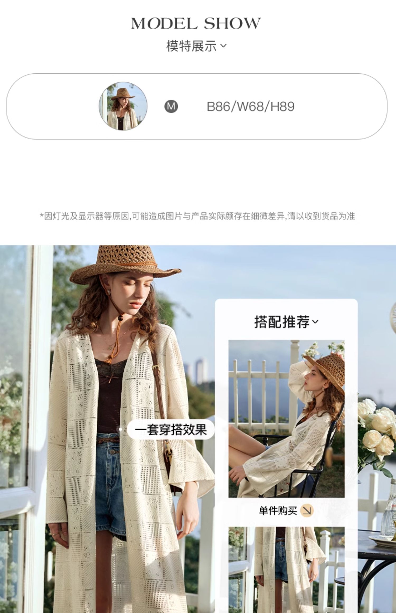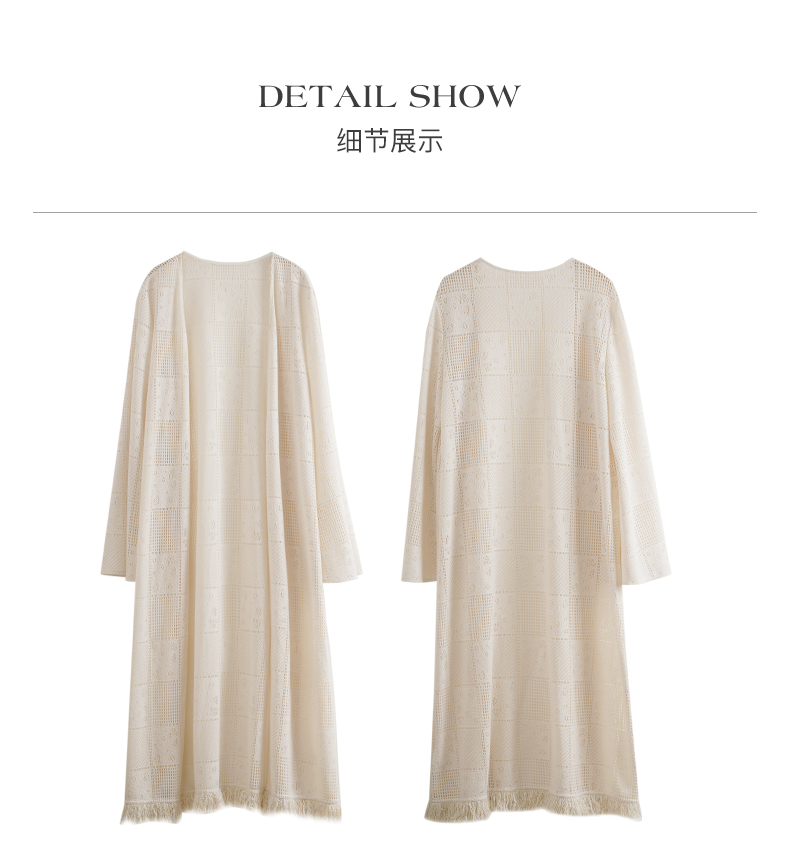 OLrain欧芮儿奶茶色短外套女春季2024年新款波西米亚镂空针织衫
