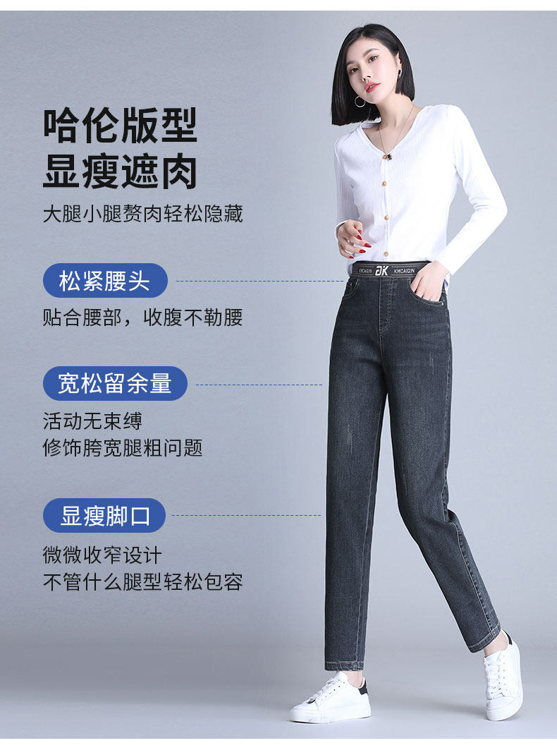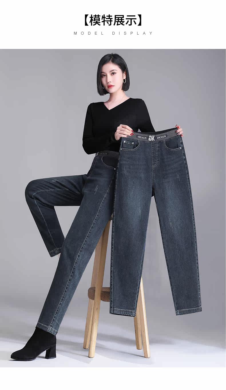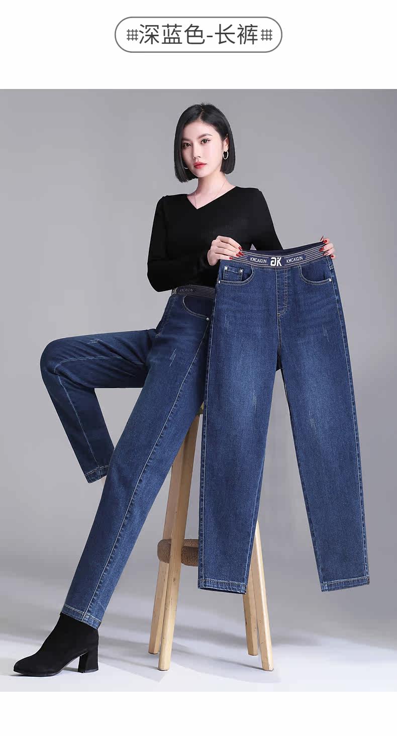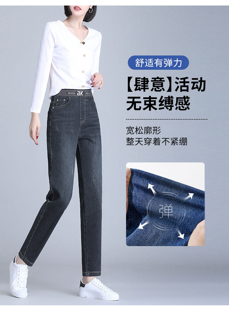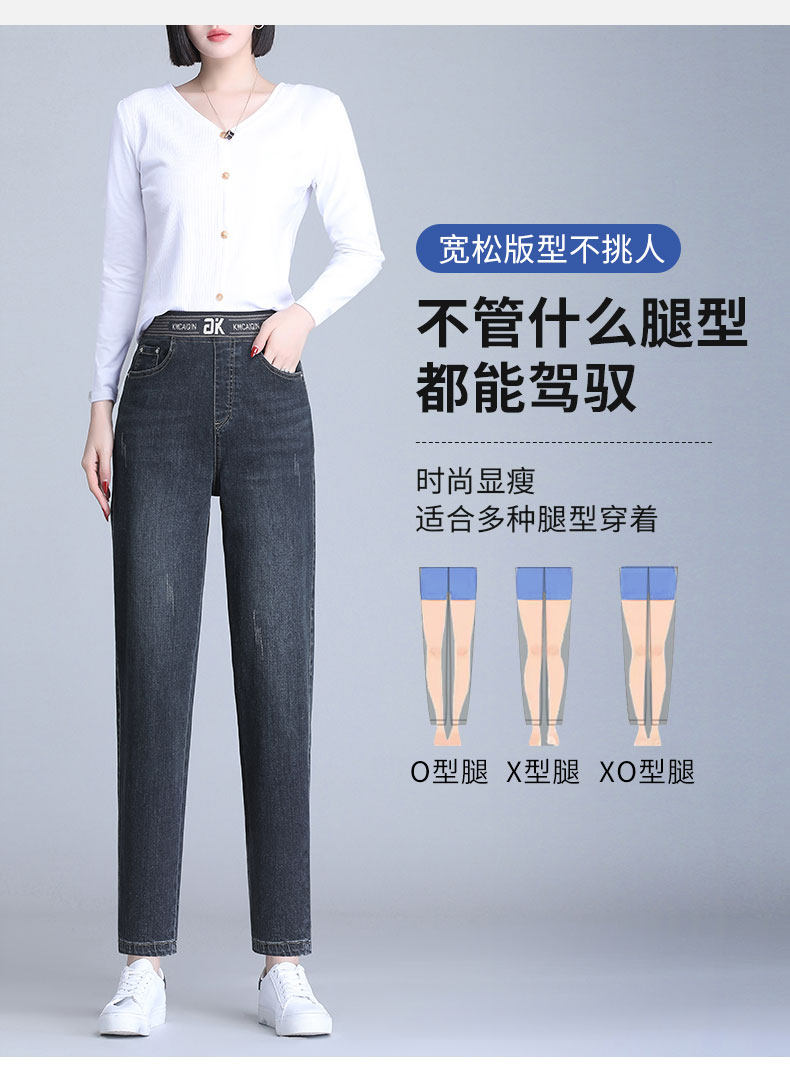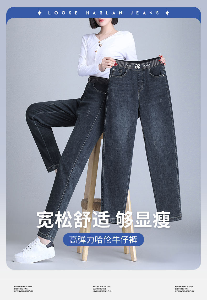 宽松哈伦牛仔裤女2026年新款松紧腰女裤春秋大码女士中年妈妈裤子