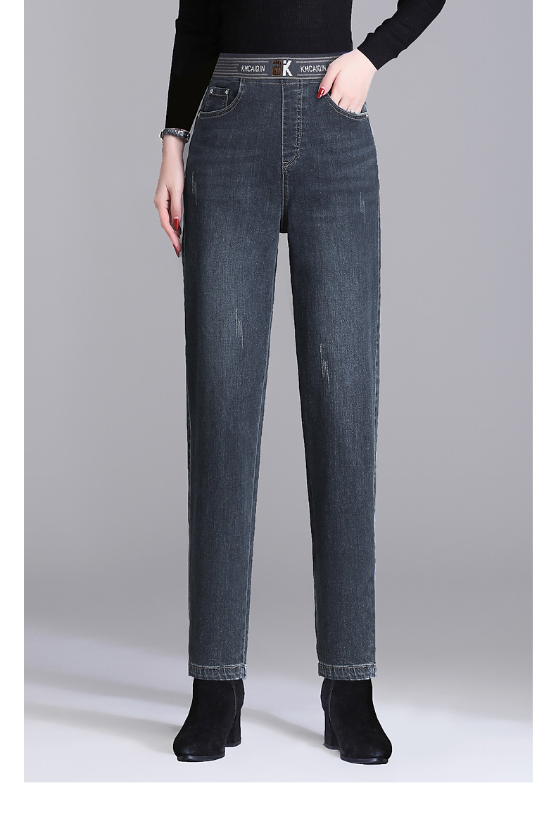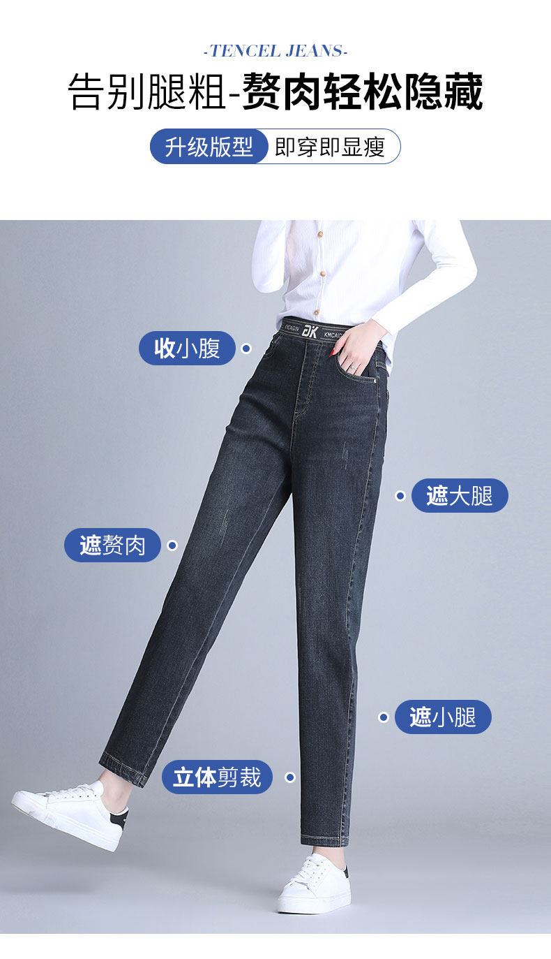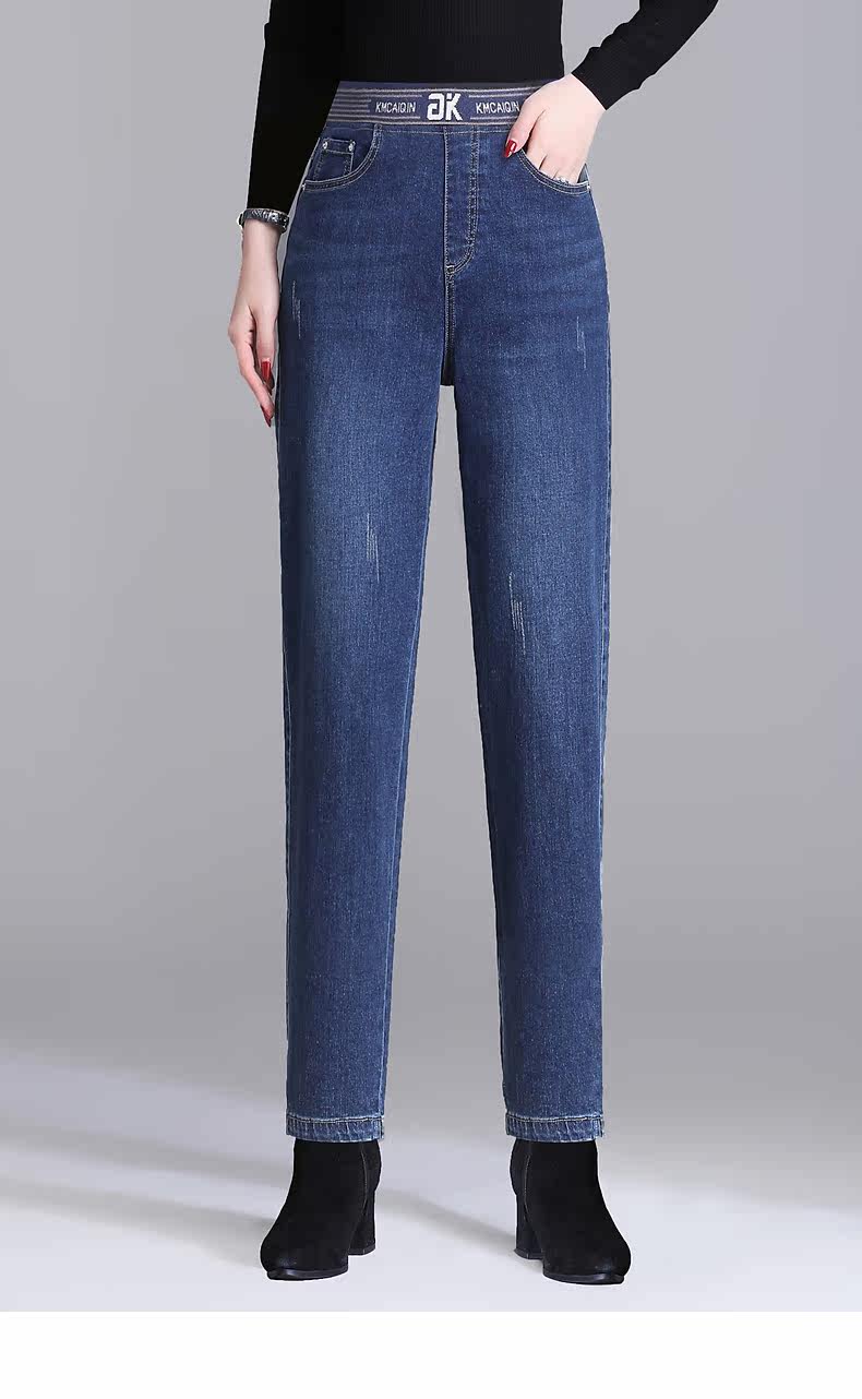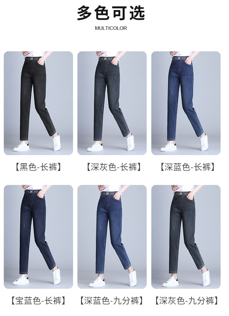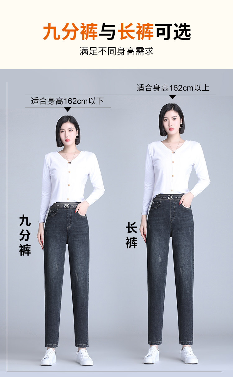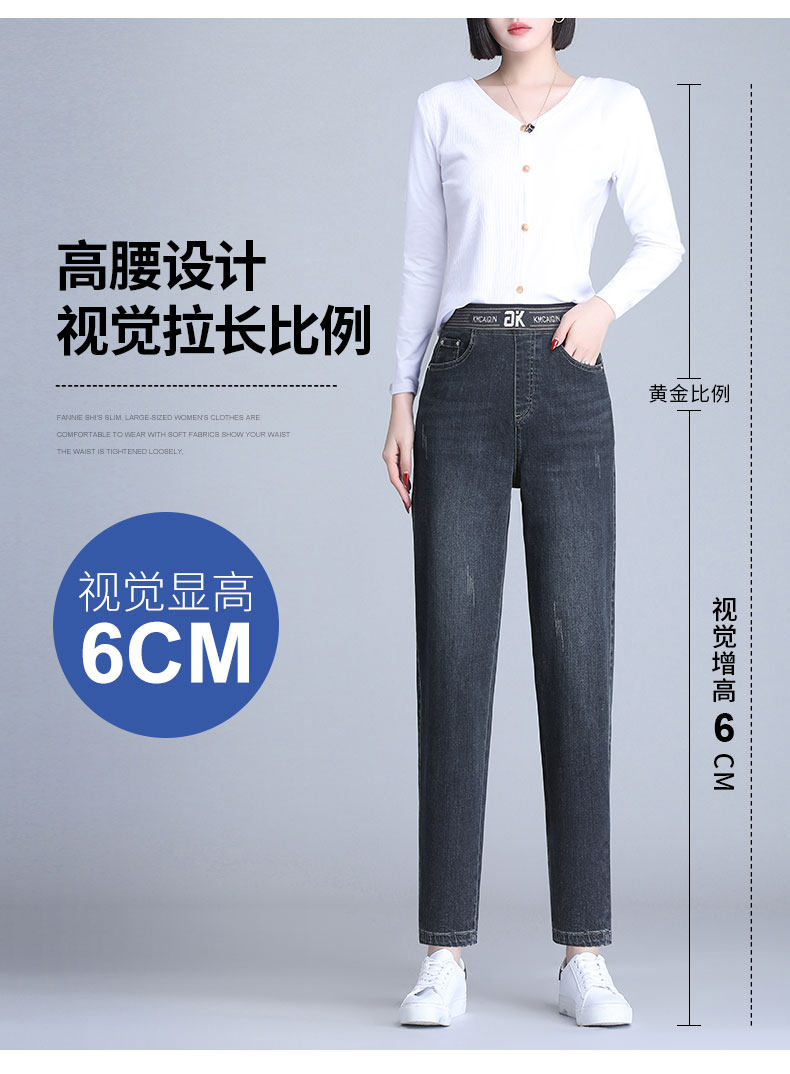 宽松哈伦牛仔裤女2026年新款松紧腰女裤春秋大码女士中年妈妈裤子