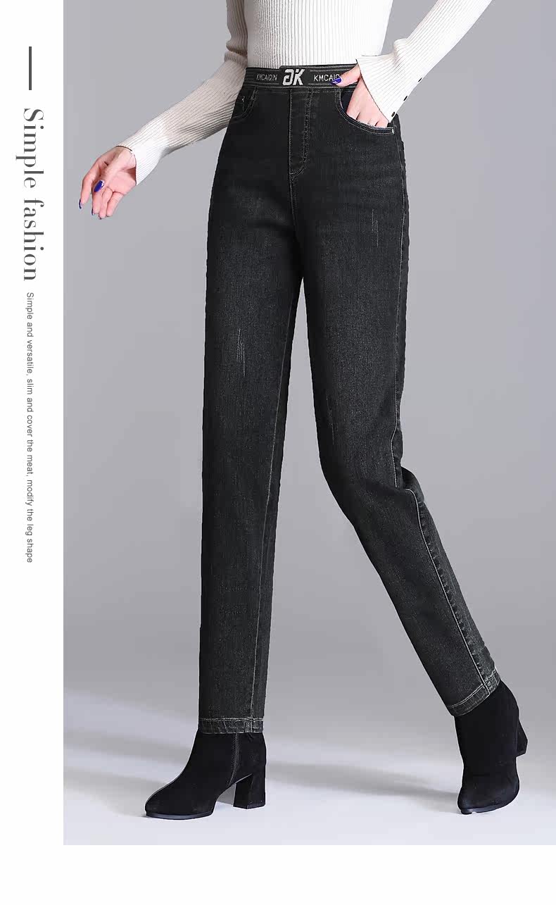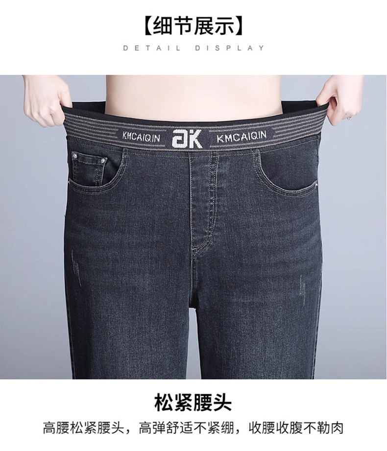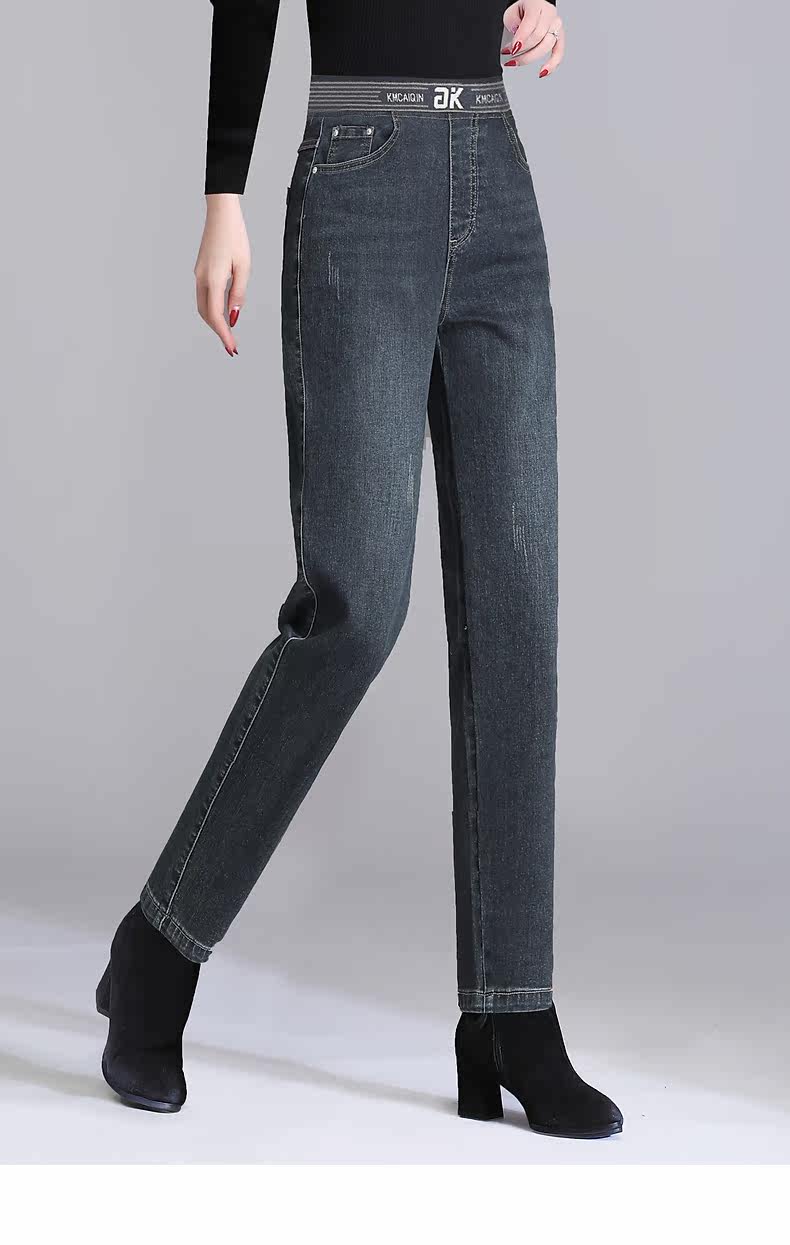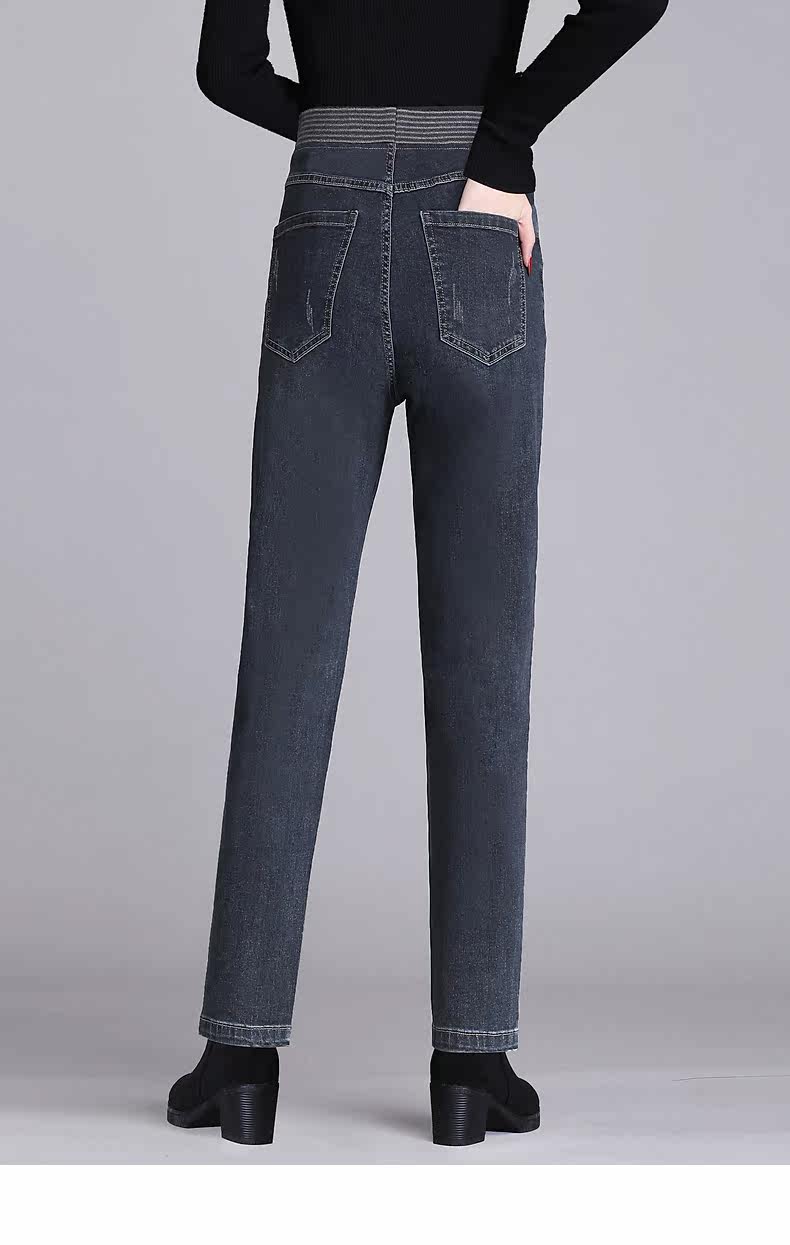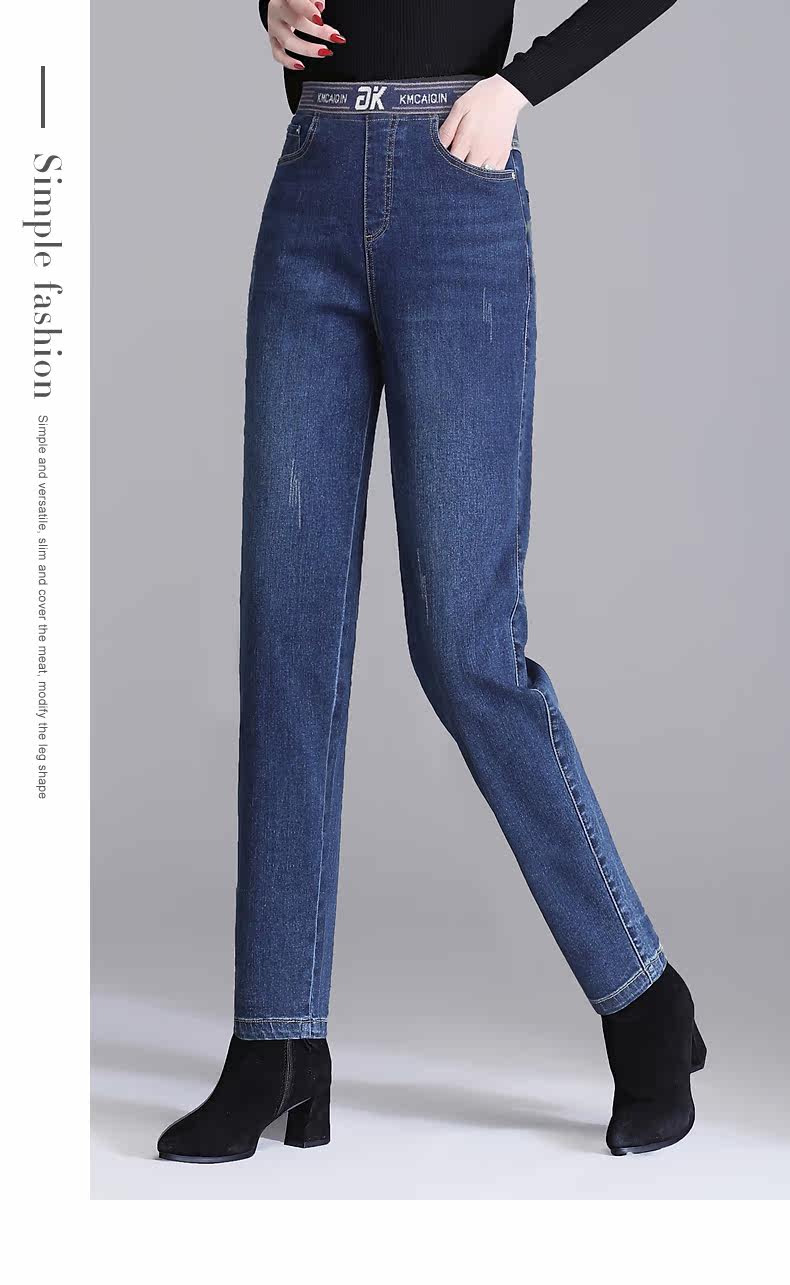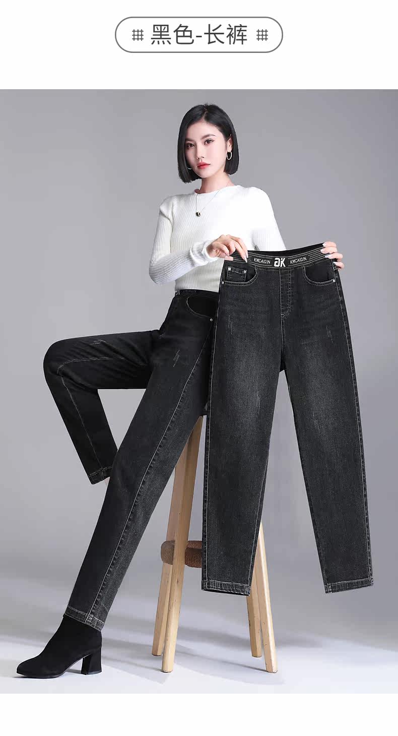 宽松哈伦牛仔裤女2026年新款松紧腰女裤春秋大码女士中年妈妈裤子