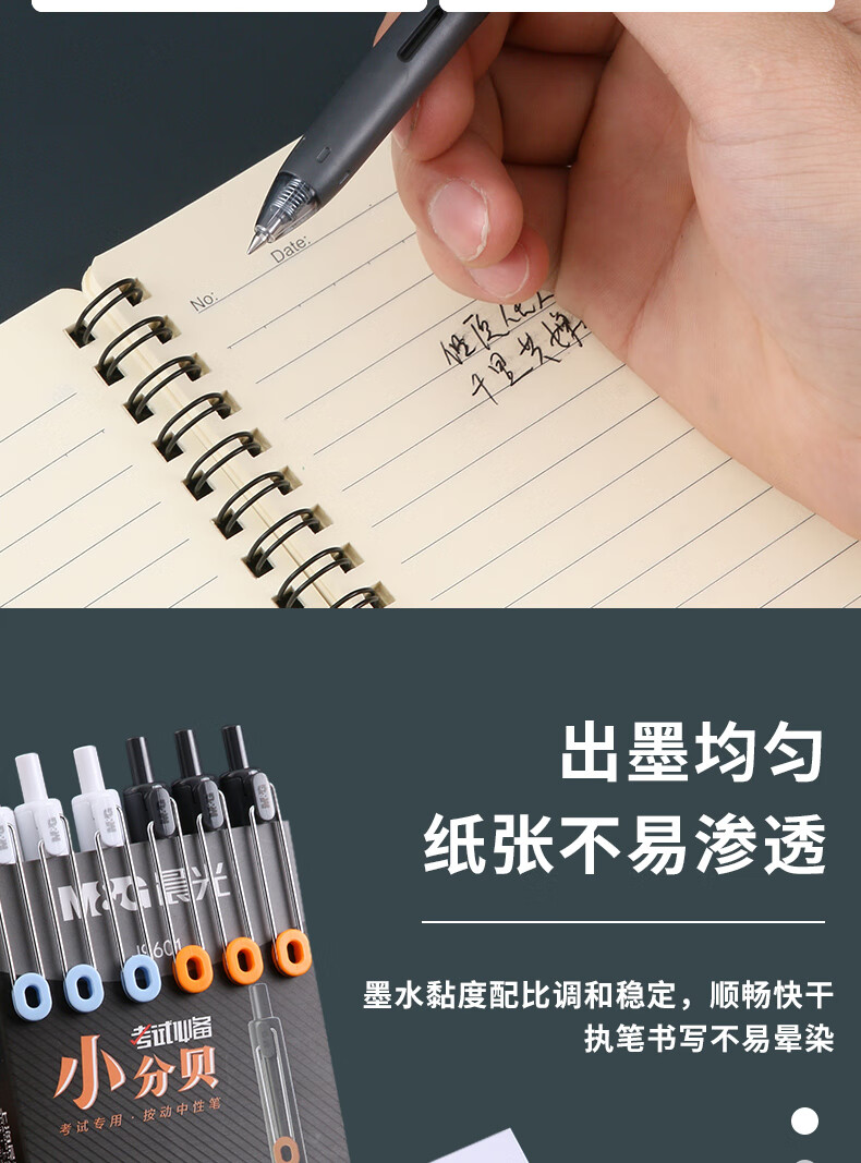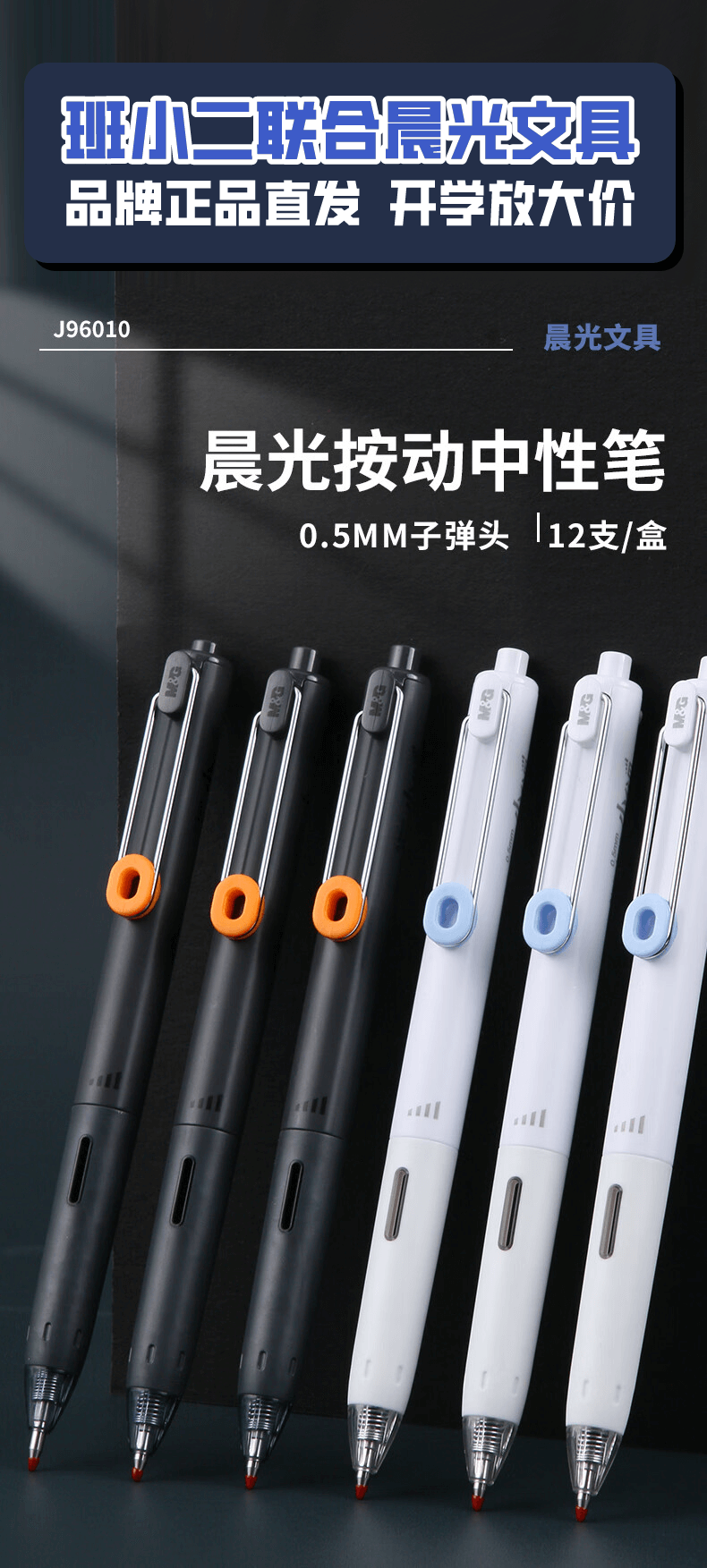 【班小二用户专享】晨光(M&G)按动中性笔小分贝静音学生用速干顺滑考试专用碳素超黑防水0.5mm按压式子弹头刷题笔 6支