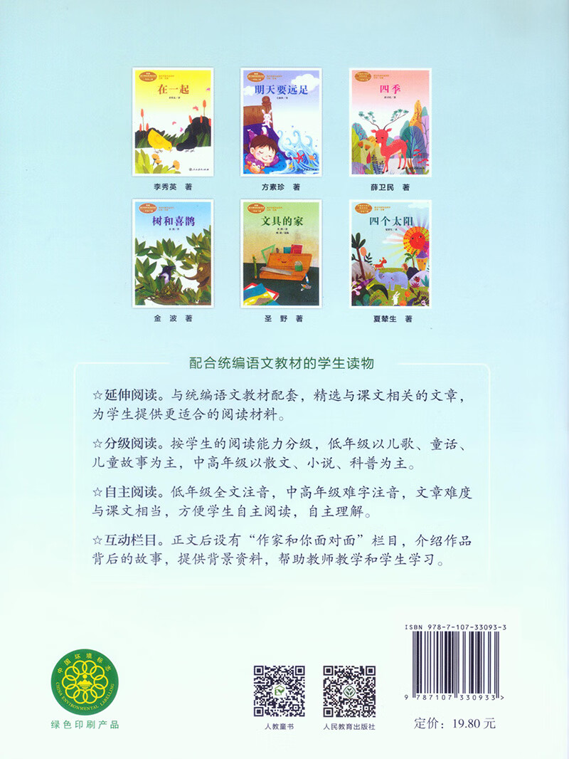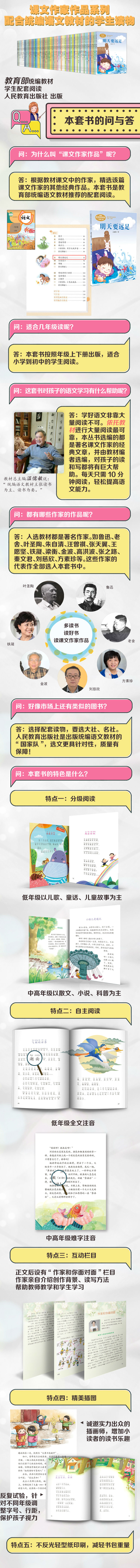 语文教材中选用了一些作家的作品,这些作家的作品受到学生的喜爱,也说明他们的创作质量达到了相当高度。“统编语文教材配套阅读 课文作家作品系列”让学生学完课文后,延伸阅读该作家的其他文章,是拓展阅读面、了解作家作品的重要方式。