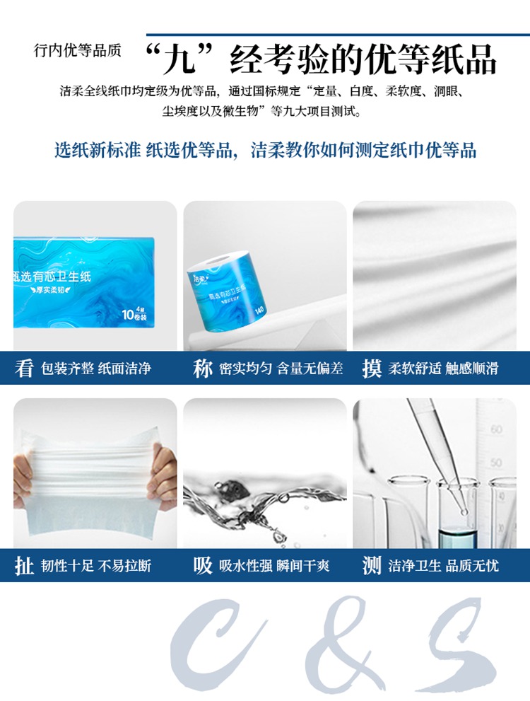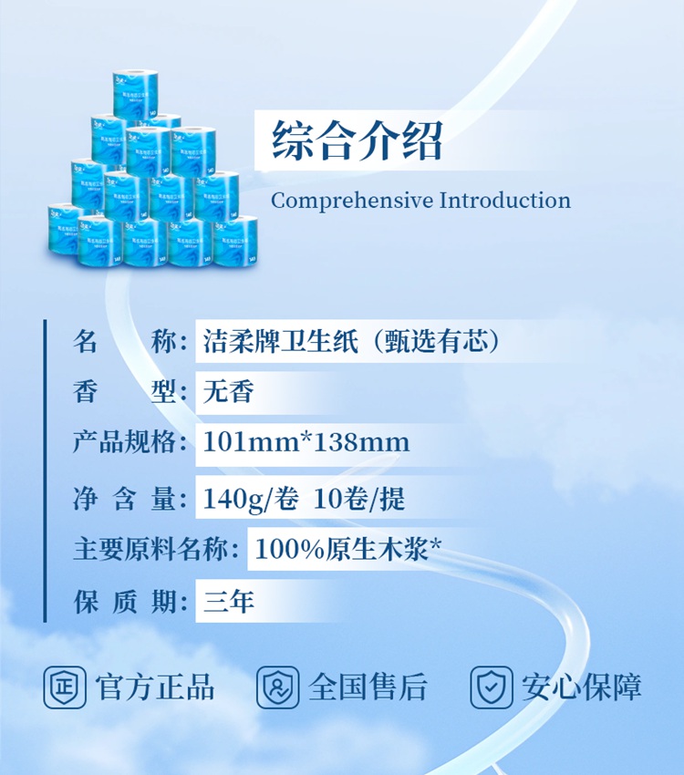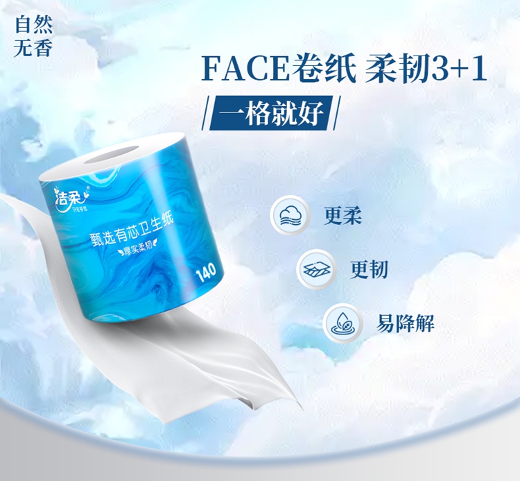 洁柔 甄选有芯卫生卷纸无香 4层*10卷/1400g/提【包邮直发】