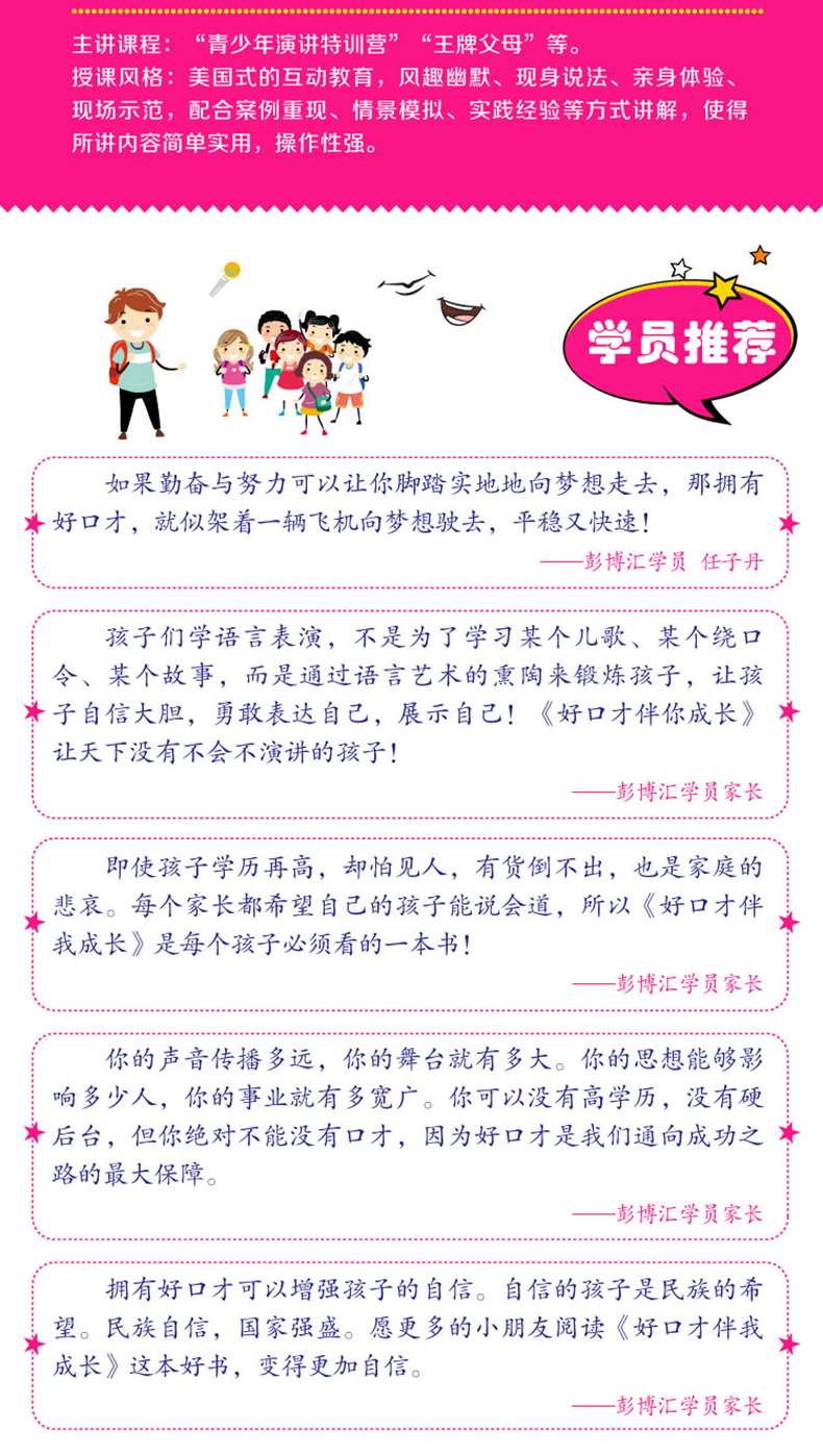 彭博汇青少年演讲特训营主讲老师,从事青少年及家庭教育研究20年,实战经验丰富。