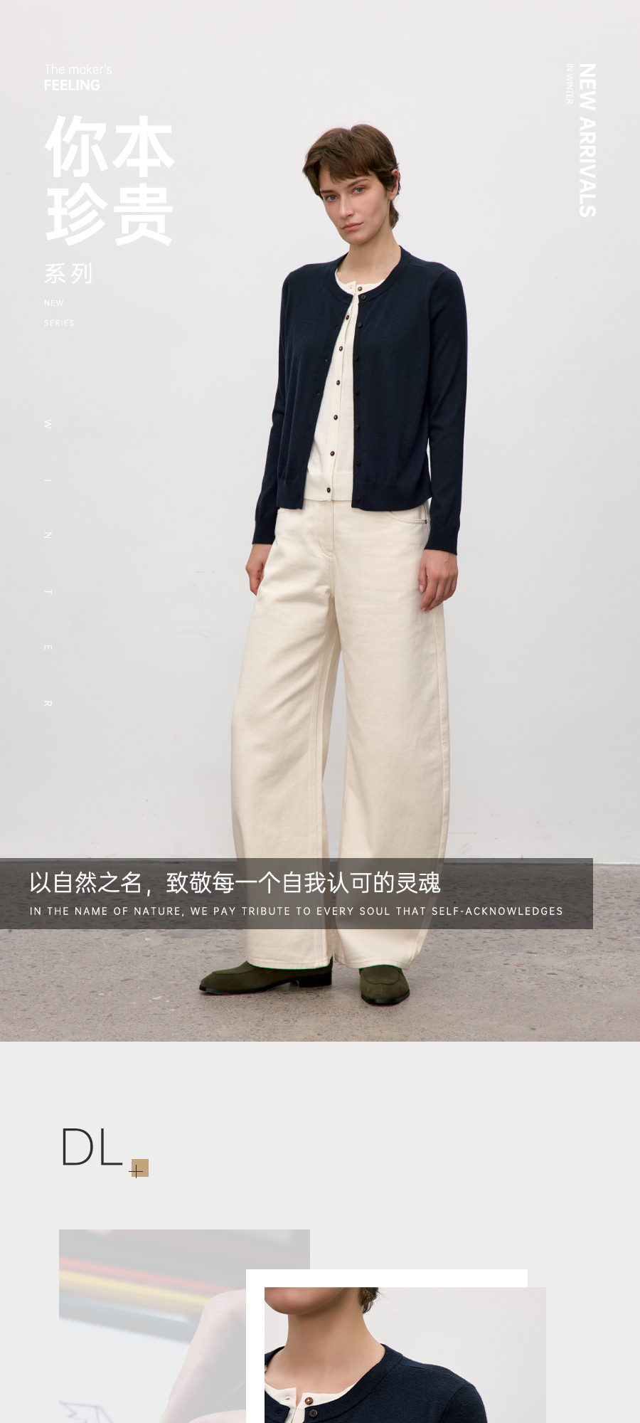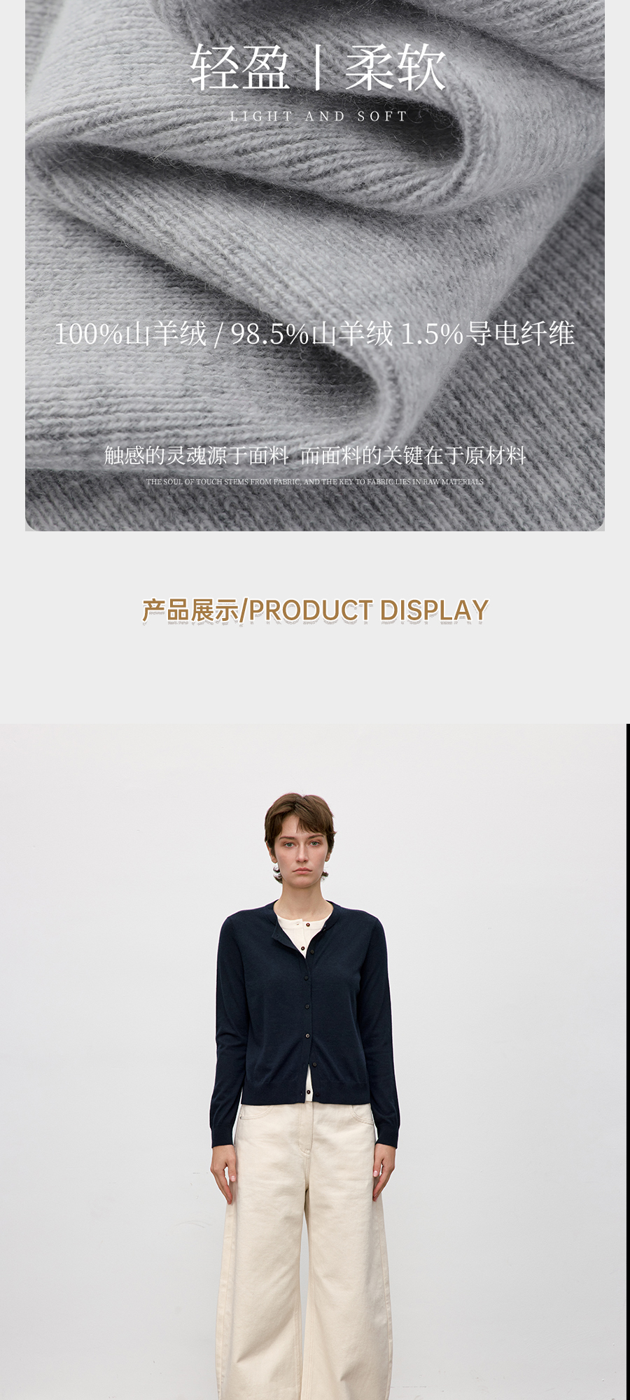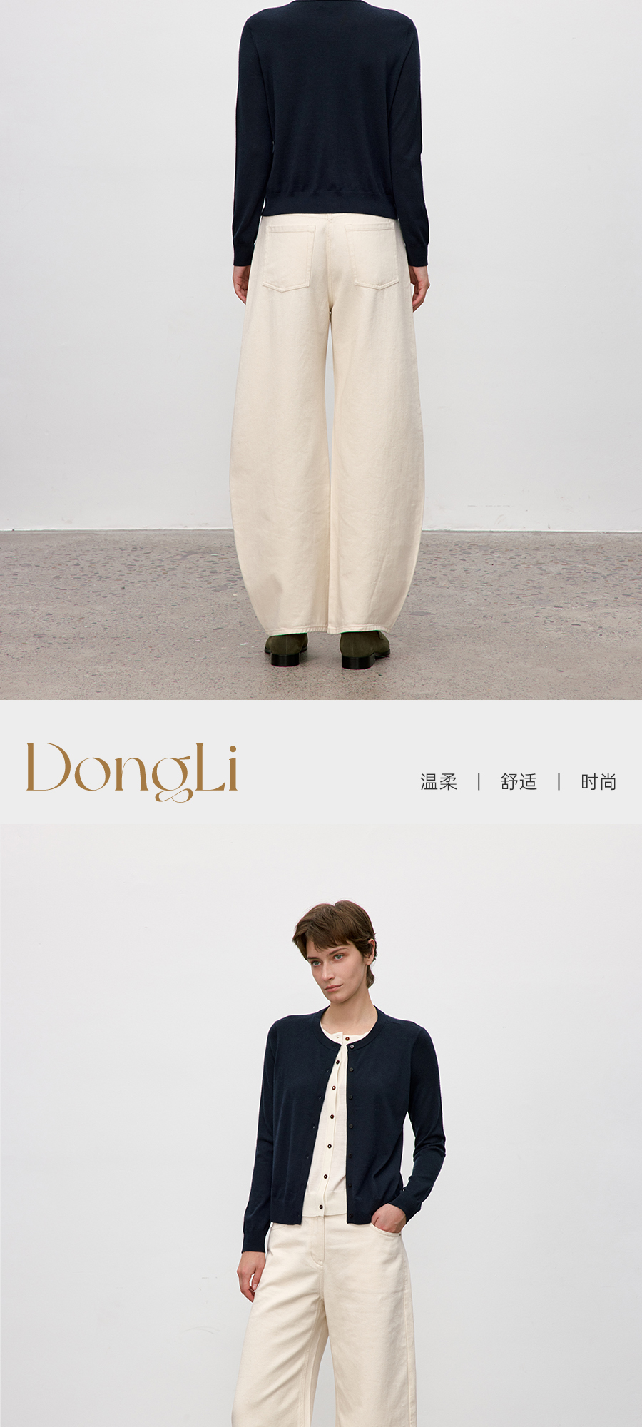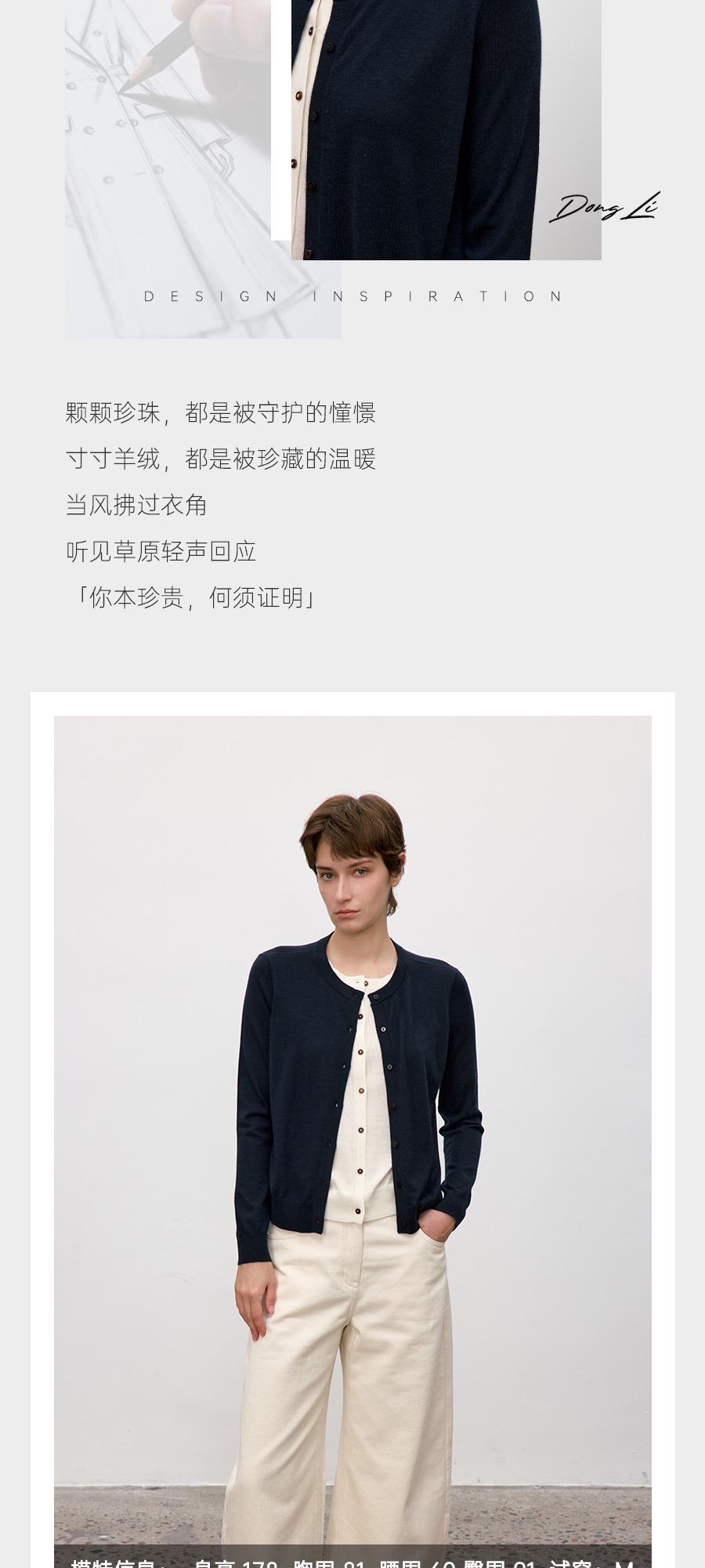 东黎 • 你本珍贵 轻盈冬日 山羊绒女士秋季圆领拼色开衫 5535