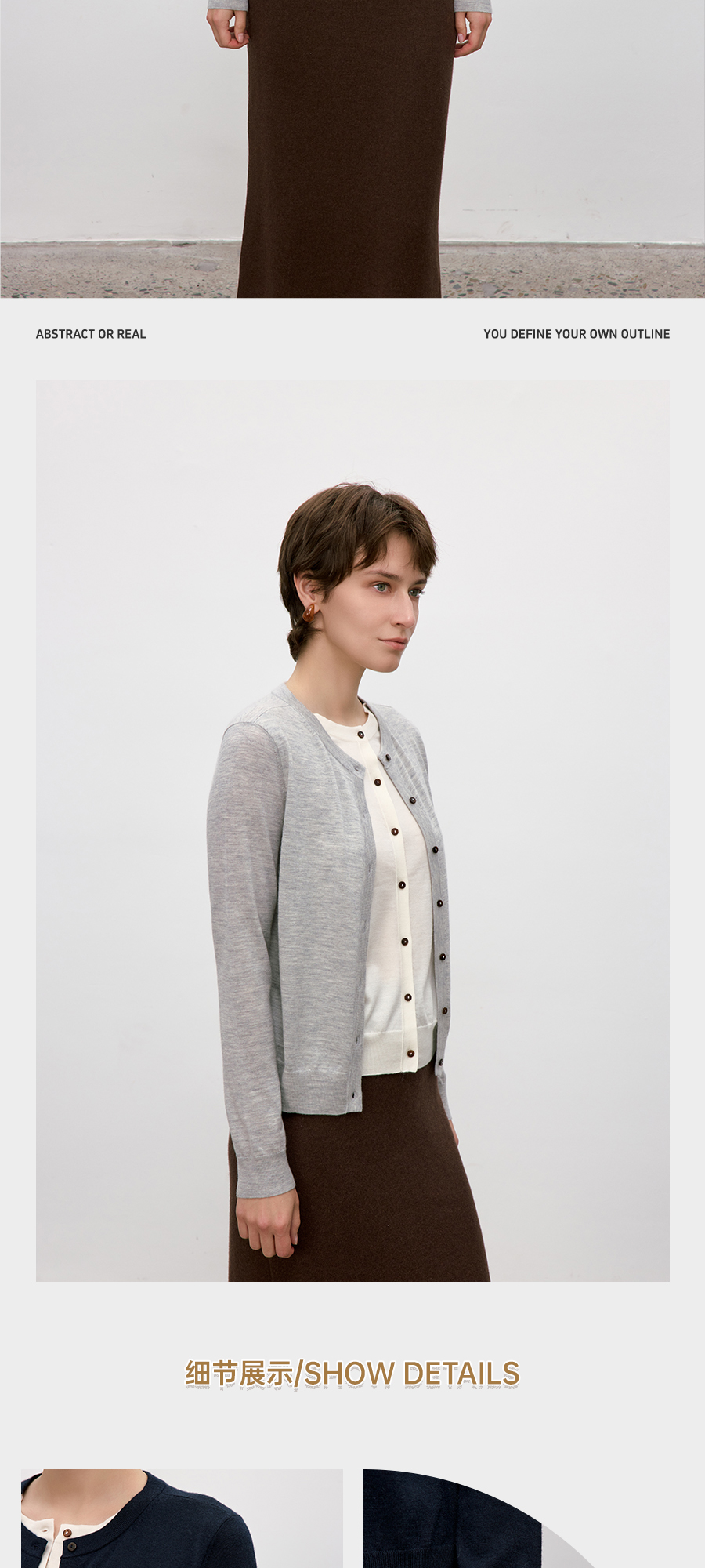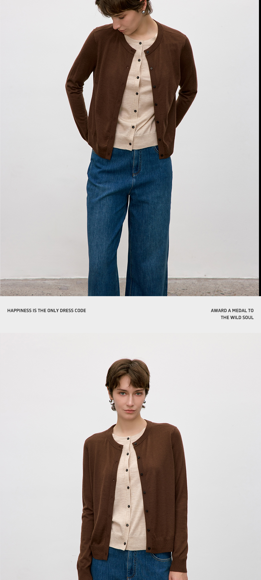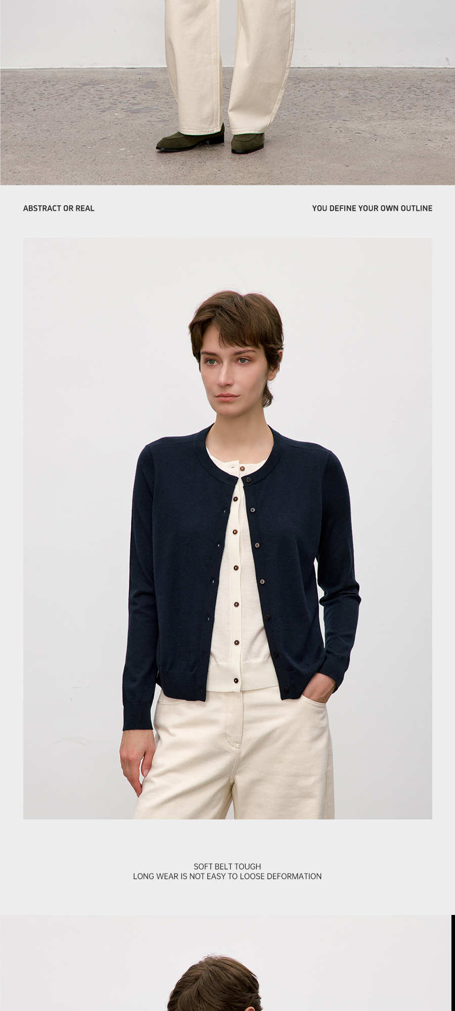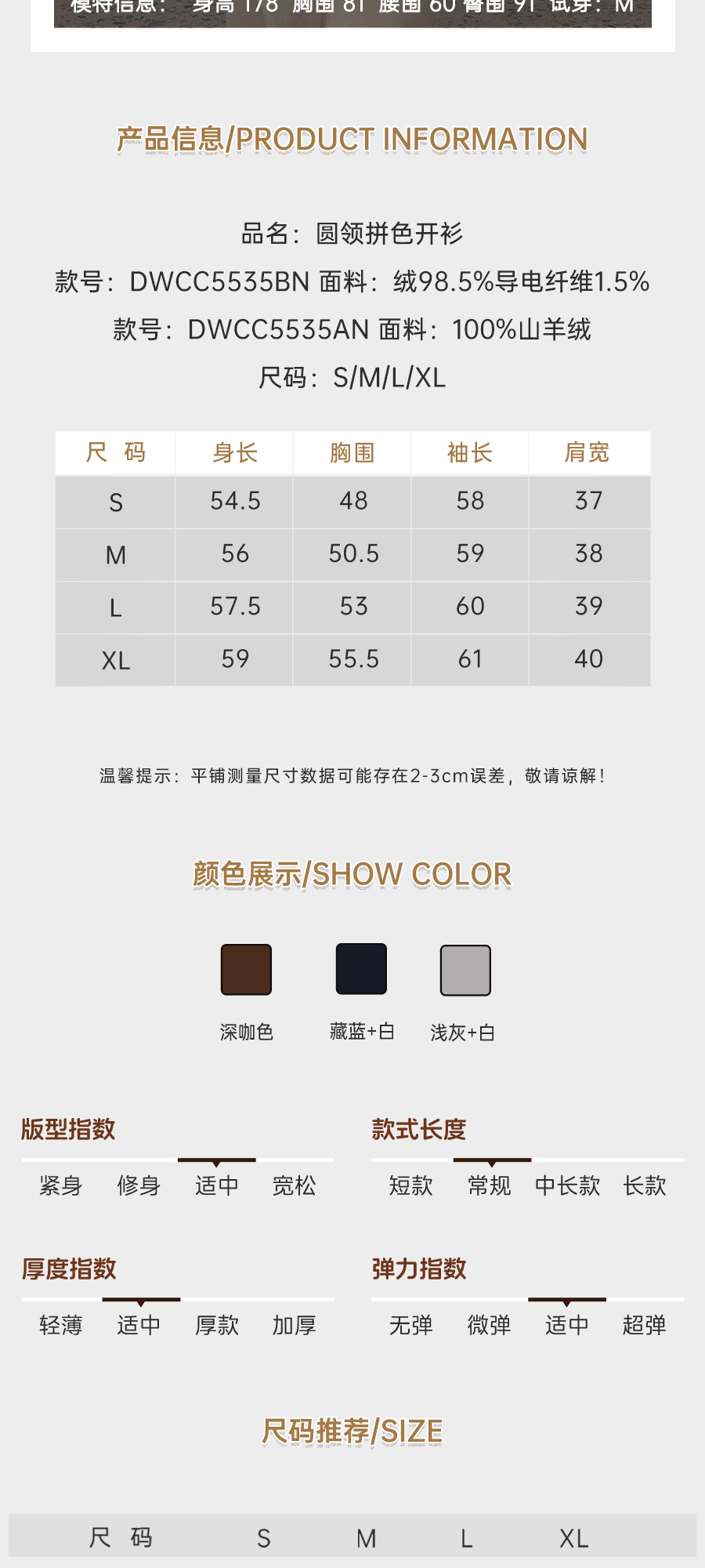 东黎 • 你本珍贵 轻盈冬日 山羊绒女士秋季圆领拼色开衫 5535