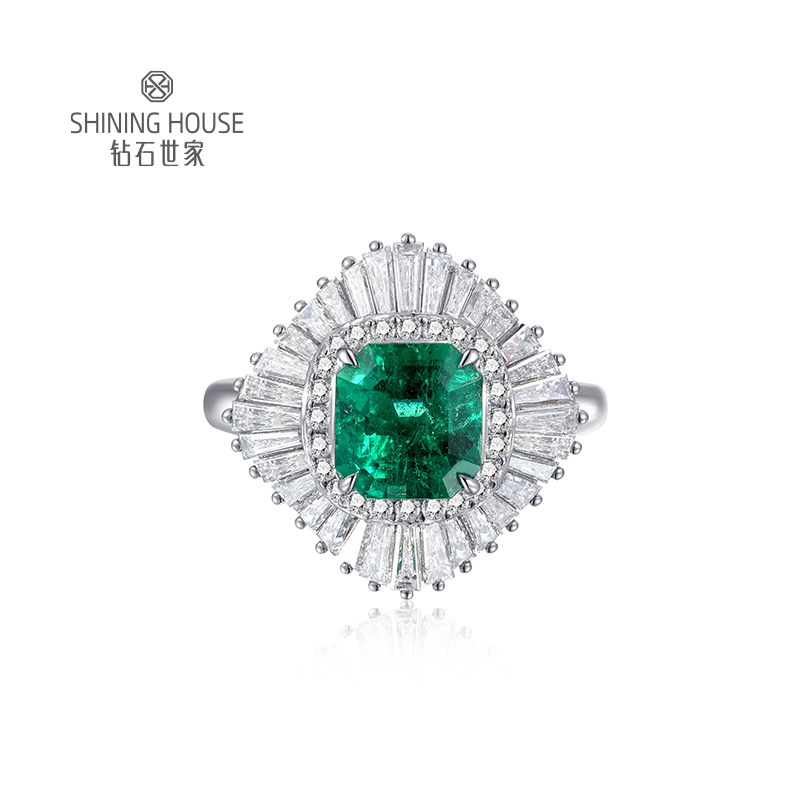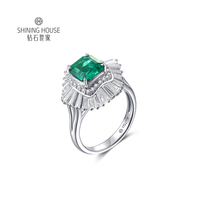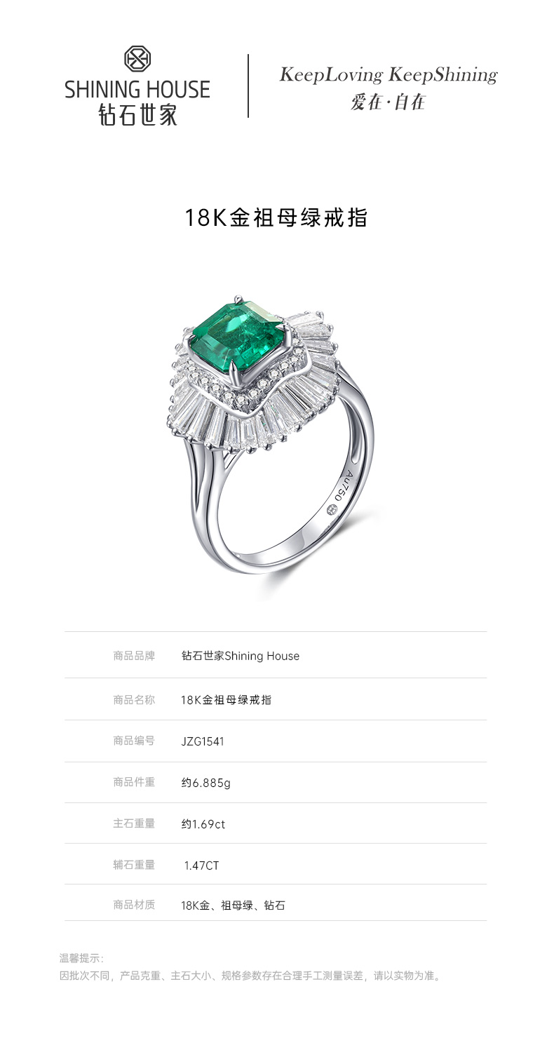 【祖母绿戒指】钻石世家 18K金祖母绿镶钻戒指 高级设计珠宝系列 绿宝石之王祖母绿 拥有美丽的翠绿色 象征着幸运、幸福和万物盎然的生命力