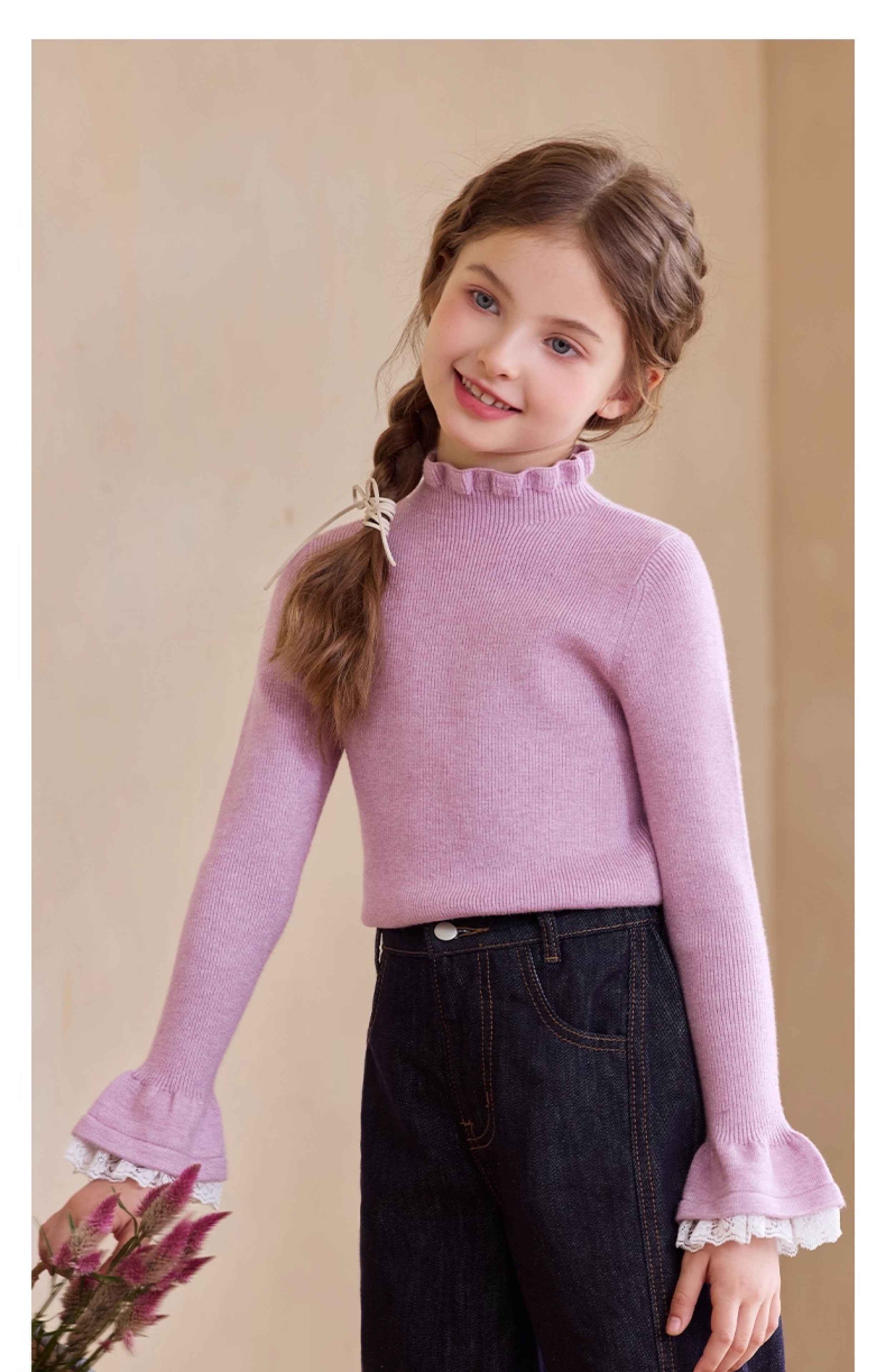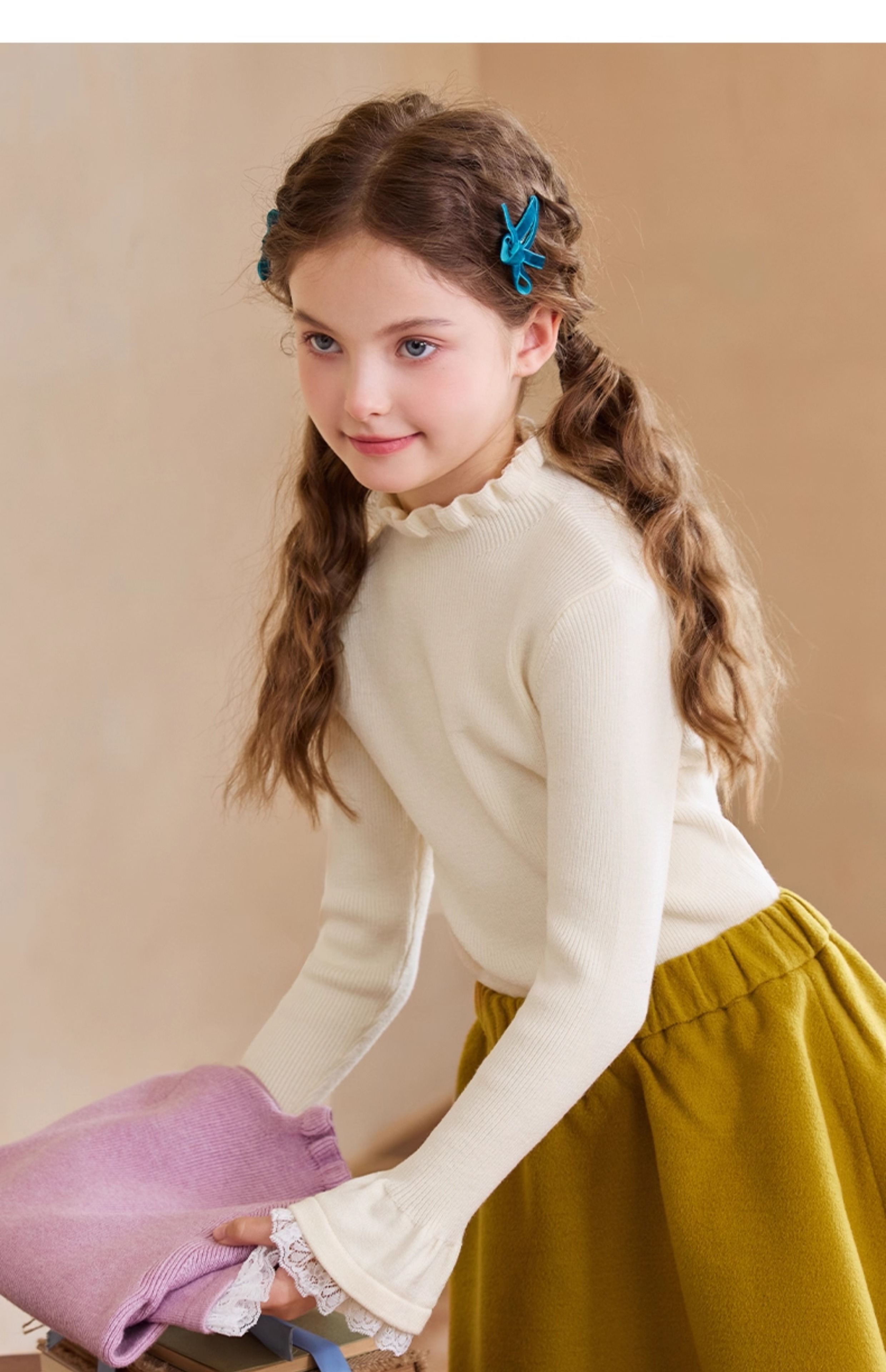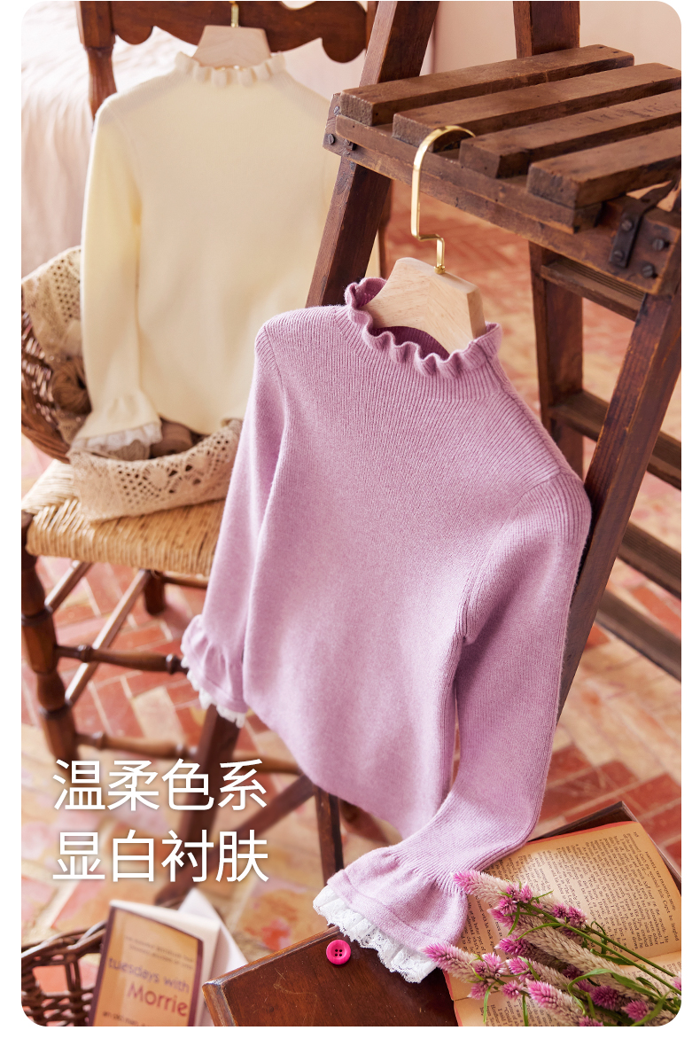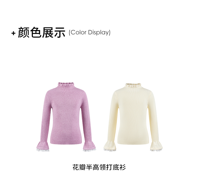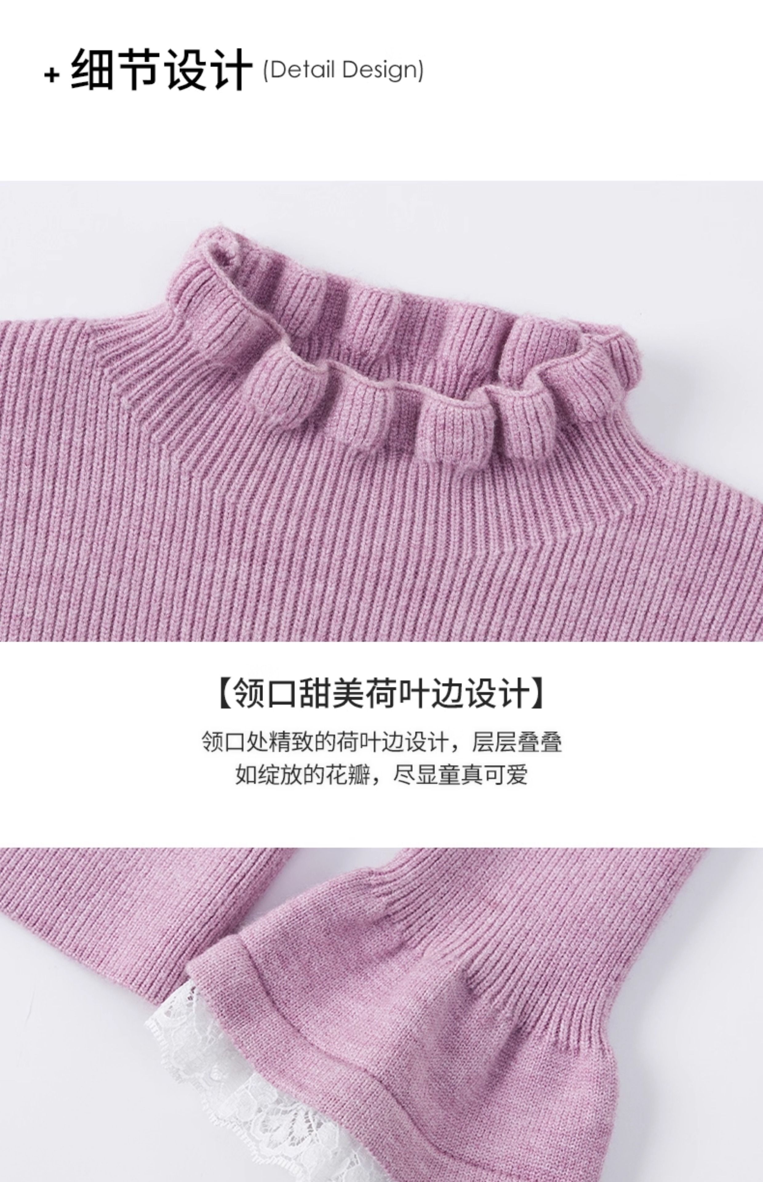 【云优选】Little Naive女童针织衫秋季半高领荷叶边甜美打底上衣儿童打底衫
