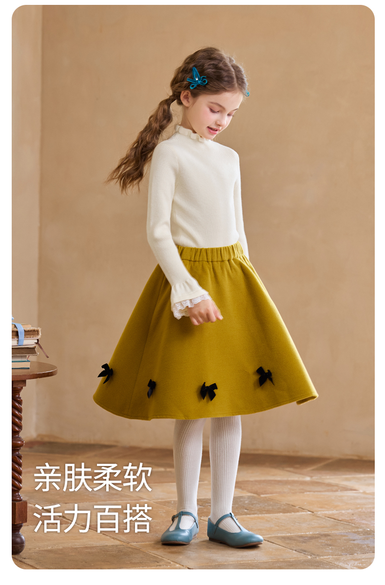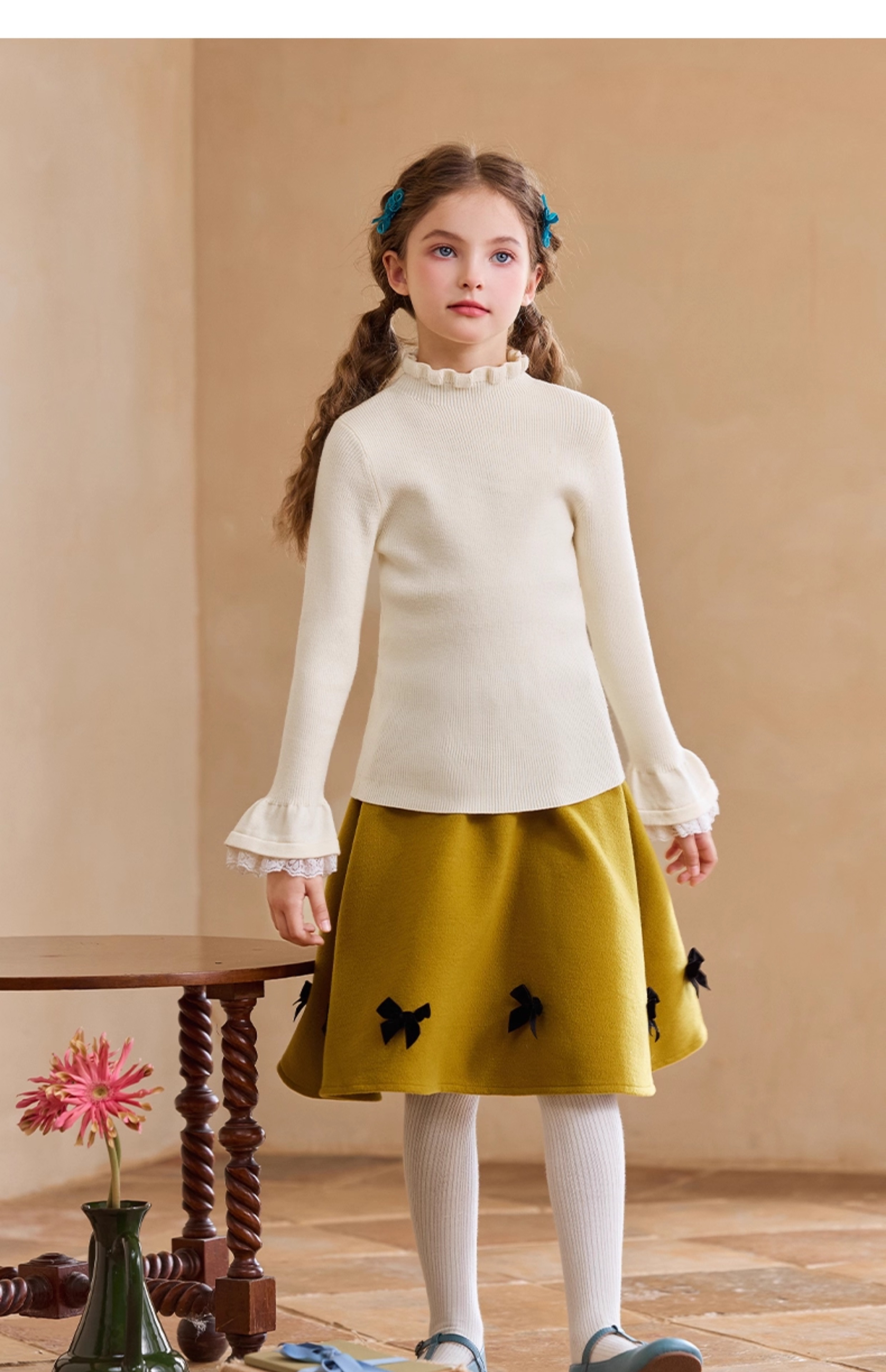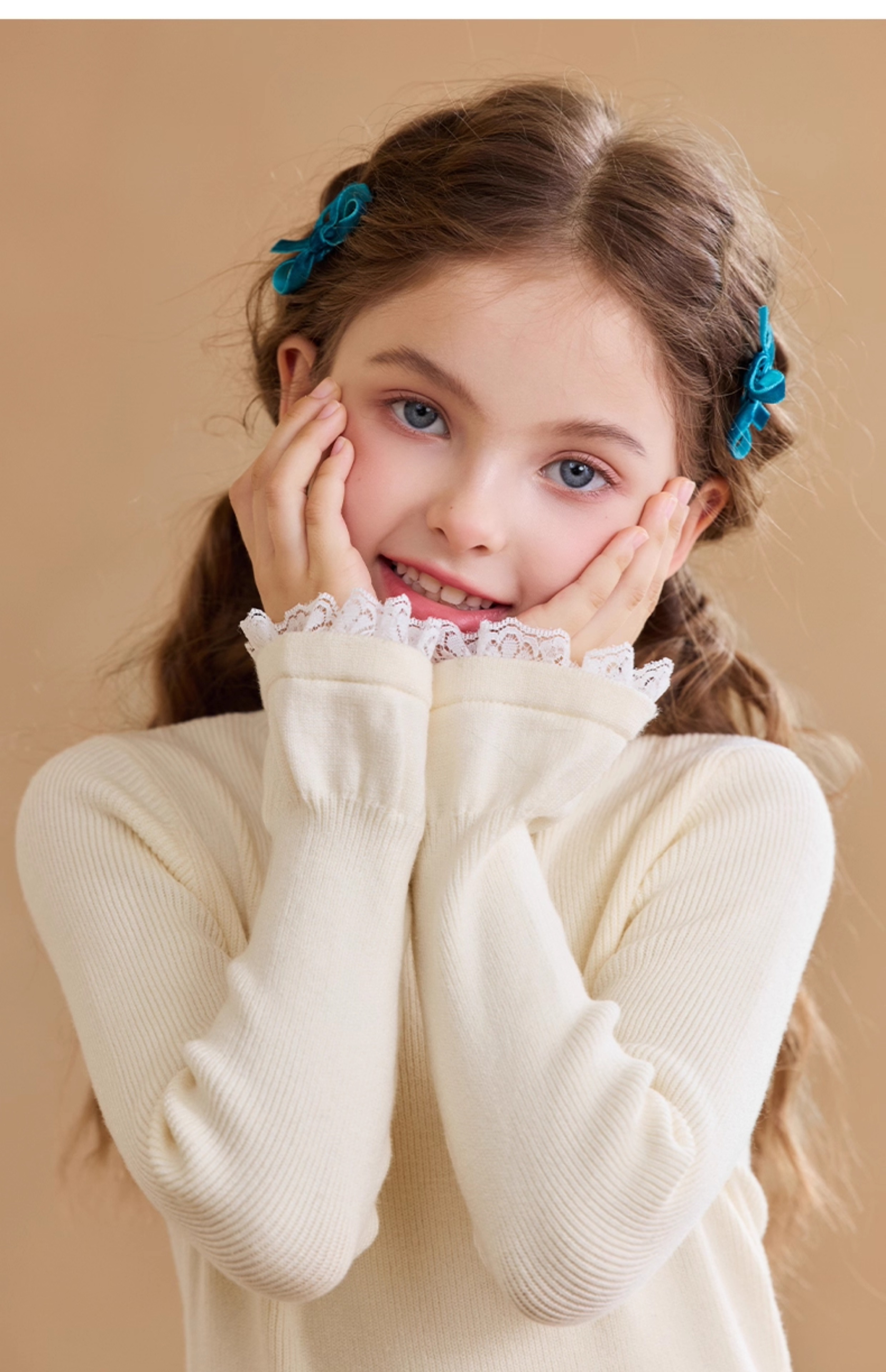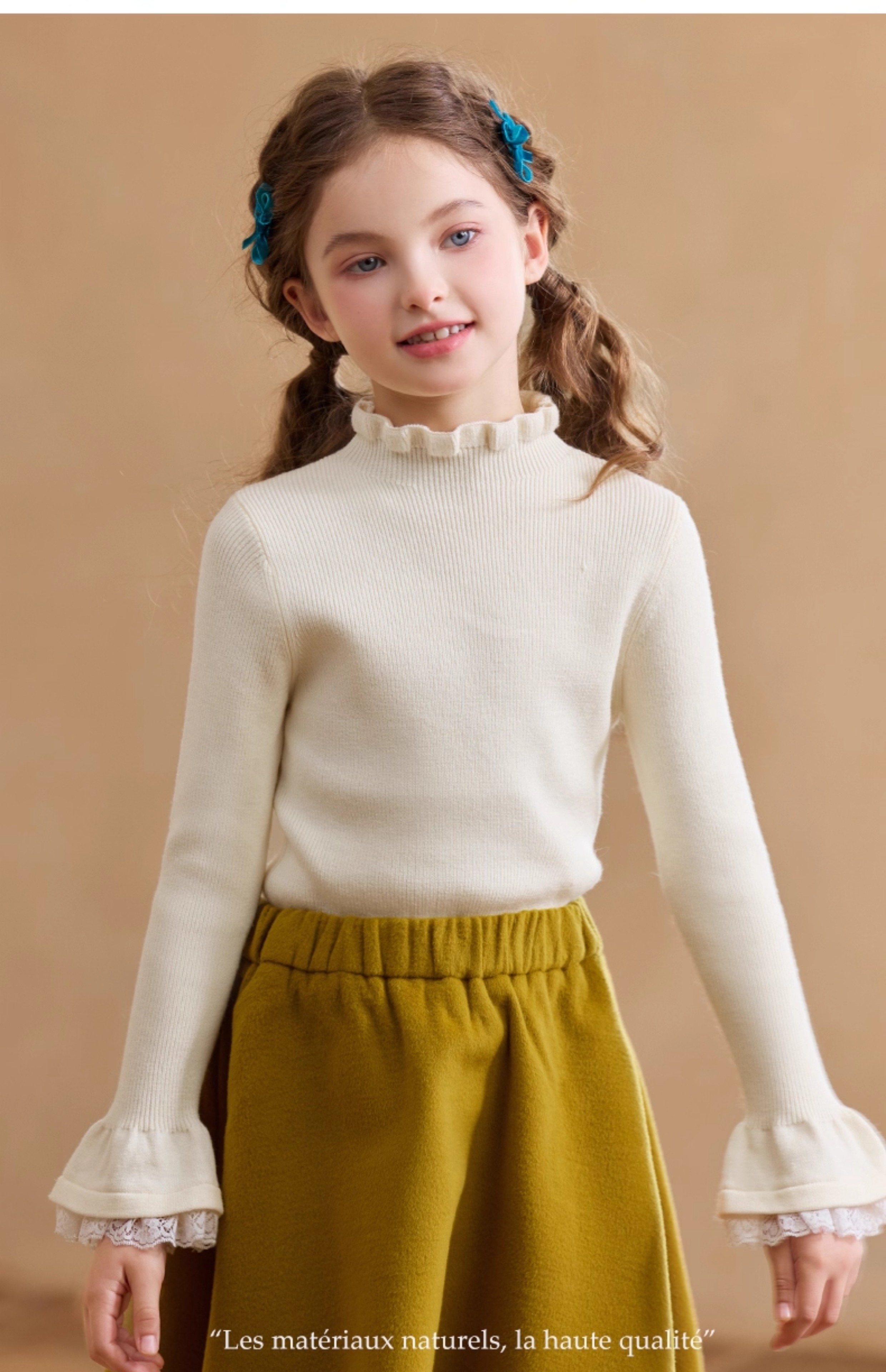 【云优选】Little Naive女童针织衫秋季半高领荷叶边甜美打底上衣儿童打底衫