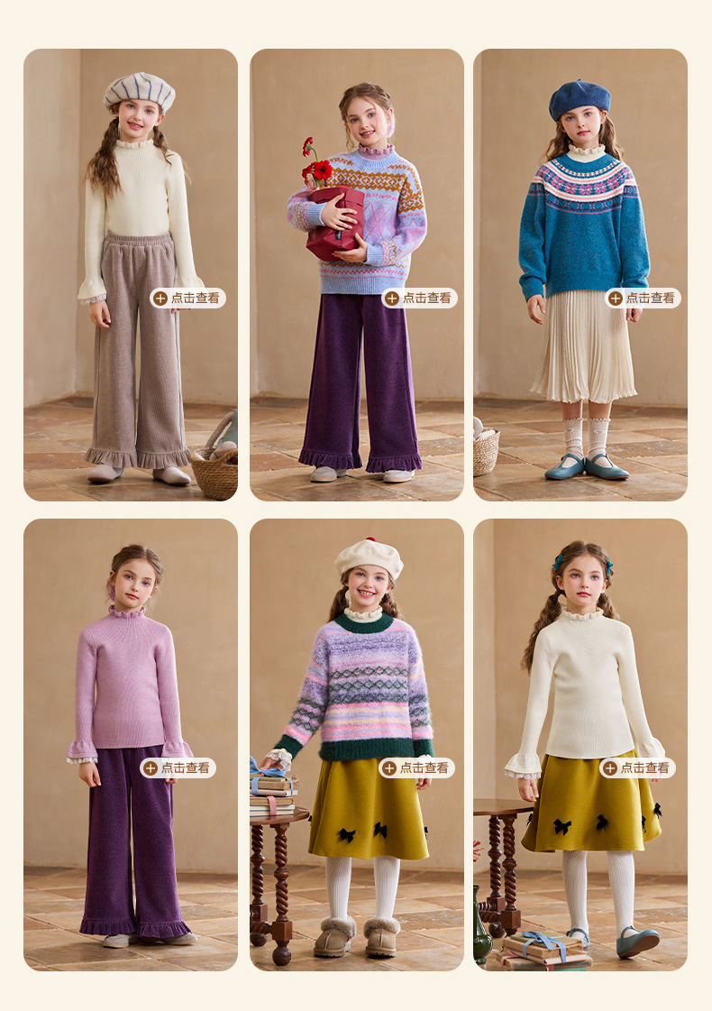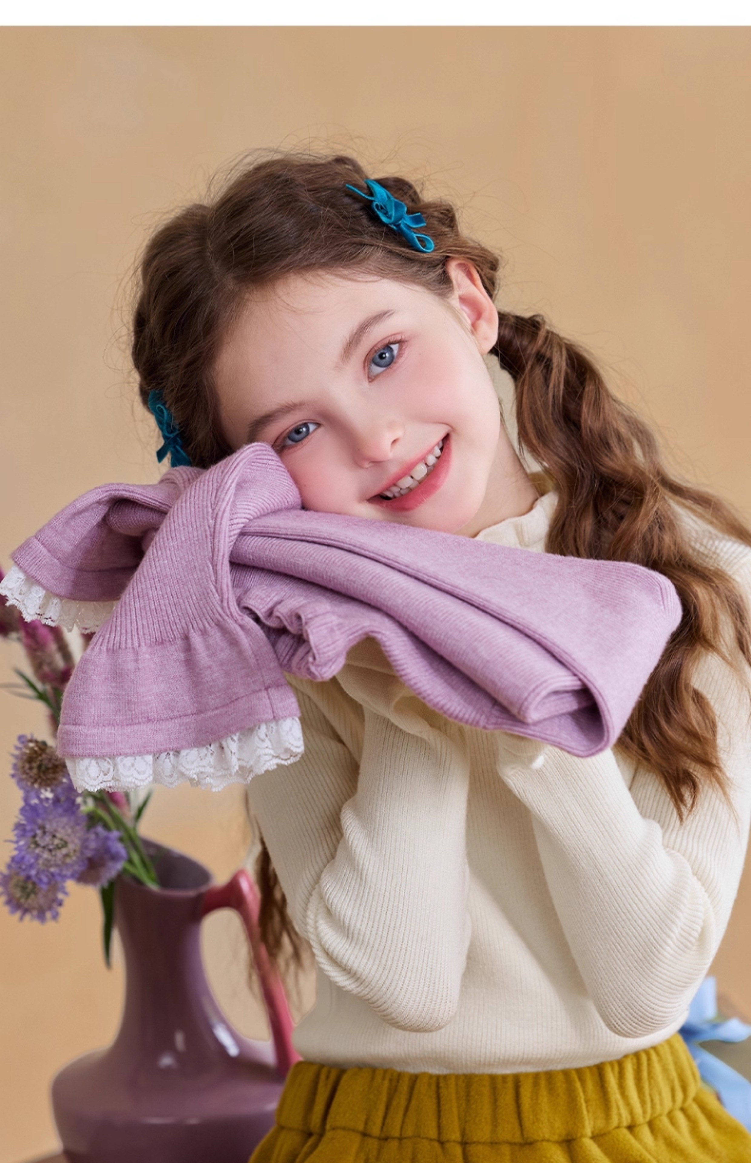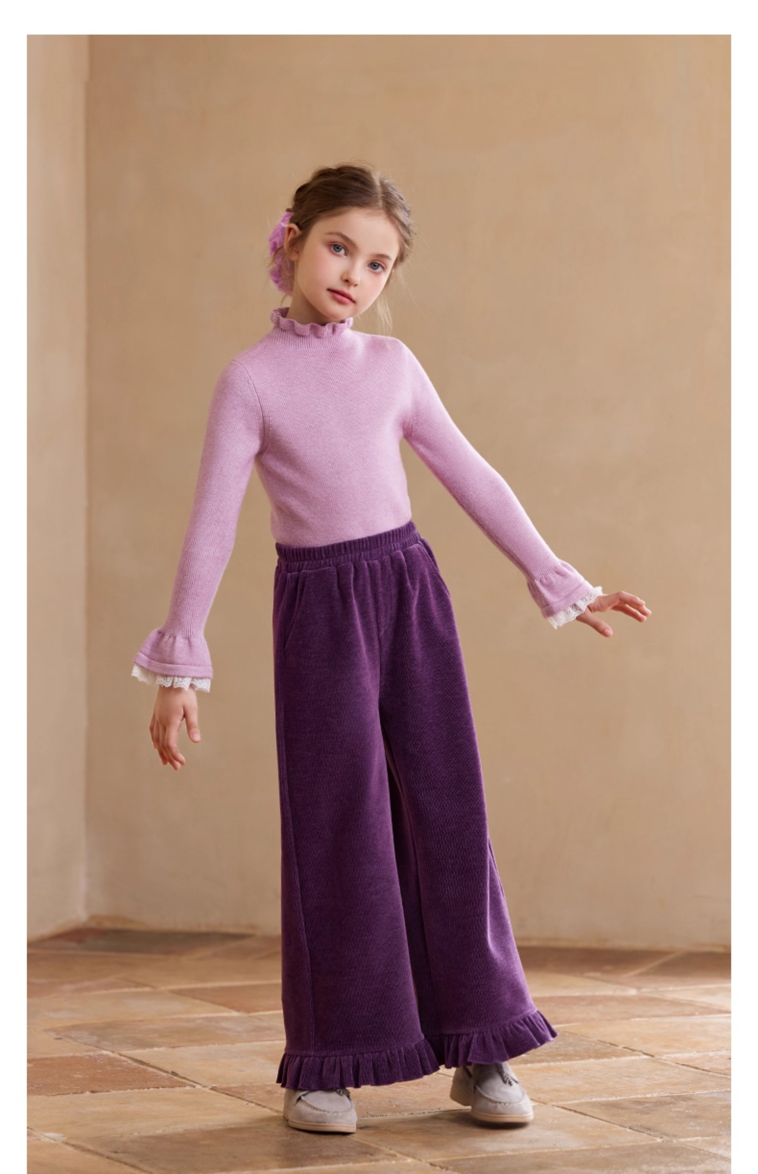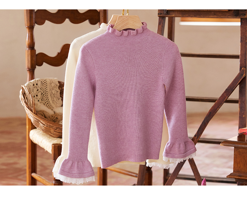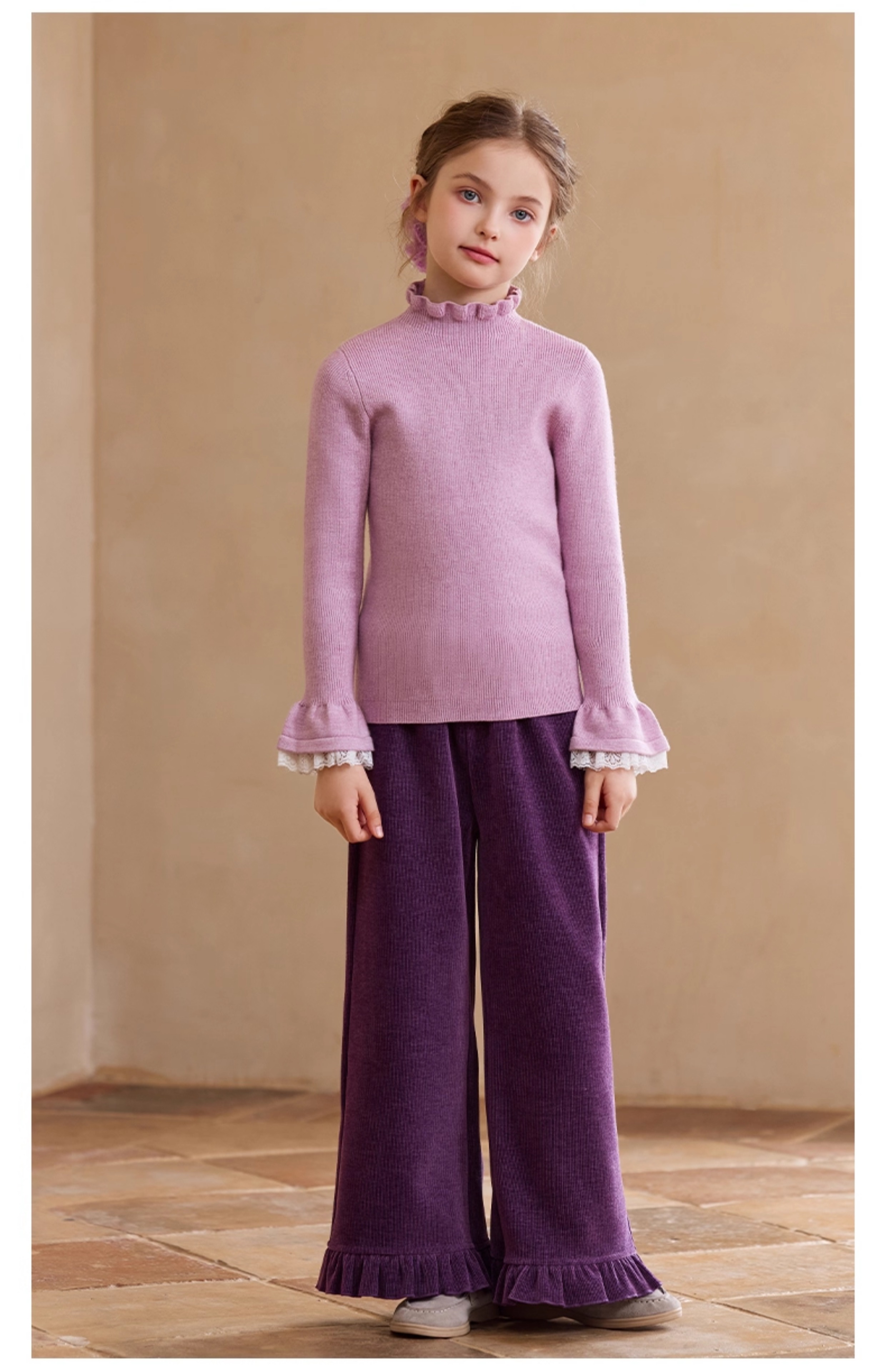 【云优选】Little Naive女童针织衫秋季半高领荷叶边甜美打底上衣儿童打底衫