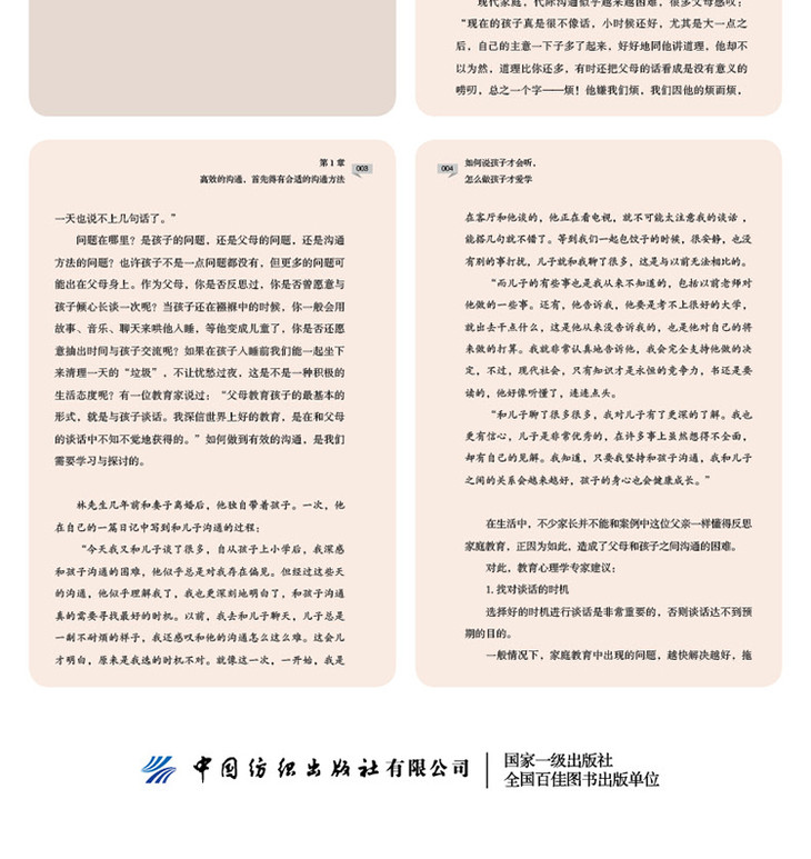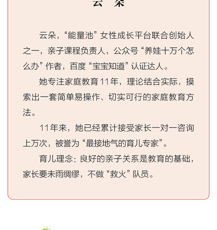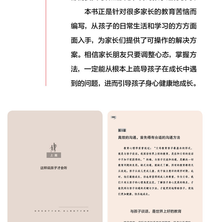 这本书既是一本沟通教育方法之书,又是一本教育理念之书,期盼它能成为家长教育孩子的实用工具和知音伴侣,以及家长不断修炼、提高、完善自身的秘籍宝典。