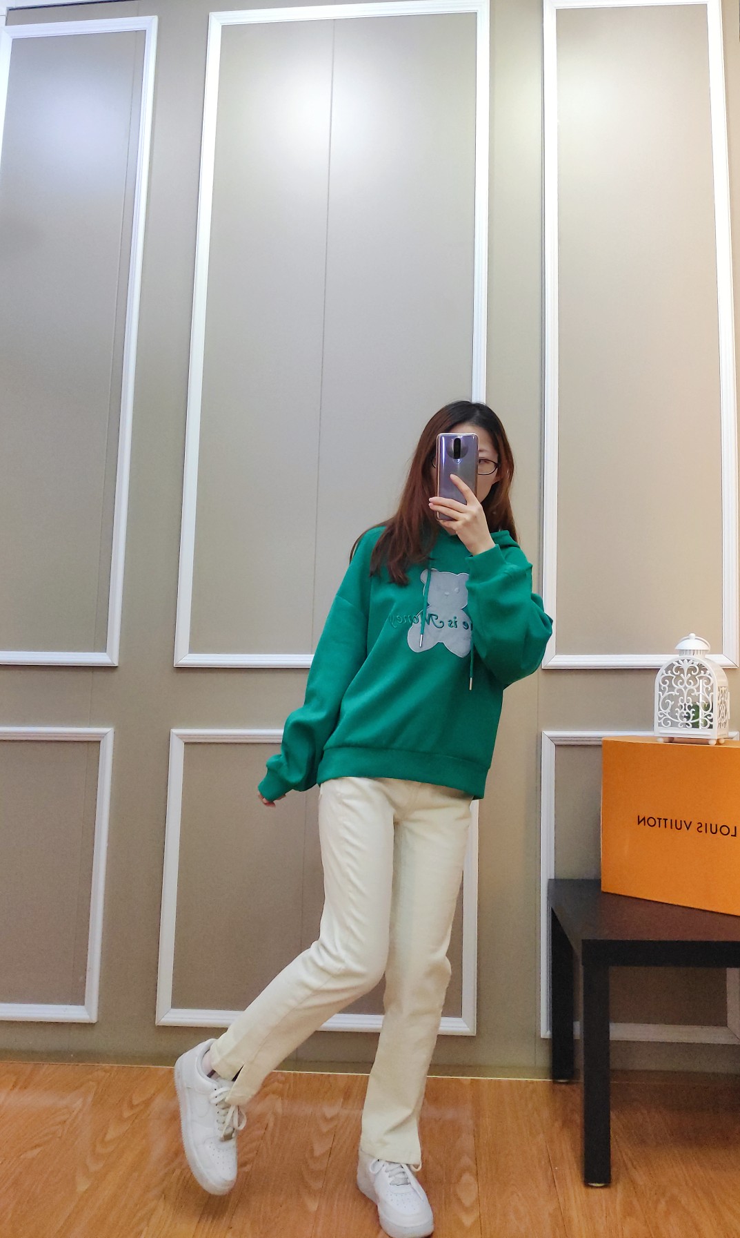 3203# 短款带帽卫衣 颜色:绿/黑 尺码:均码