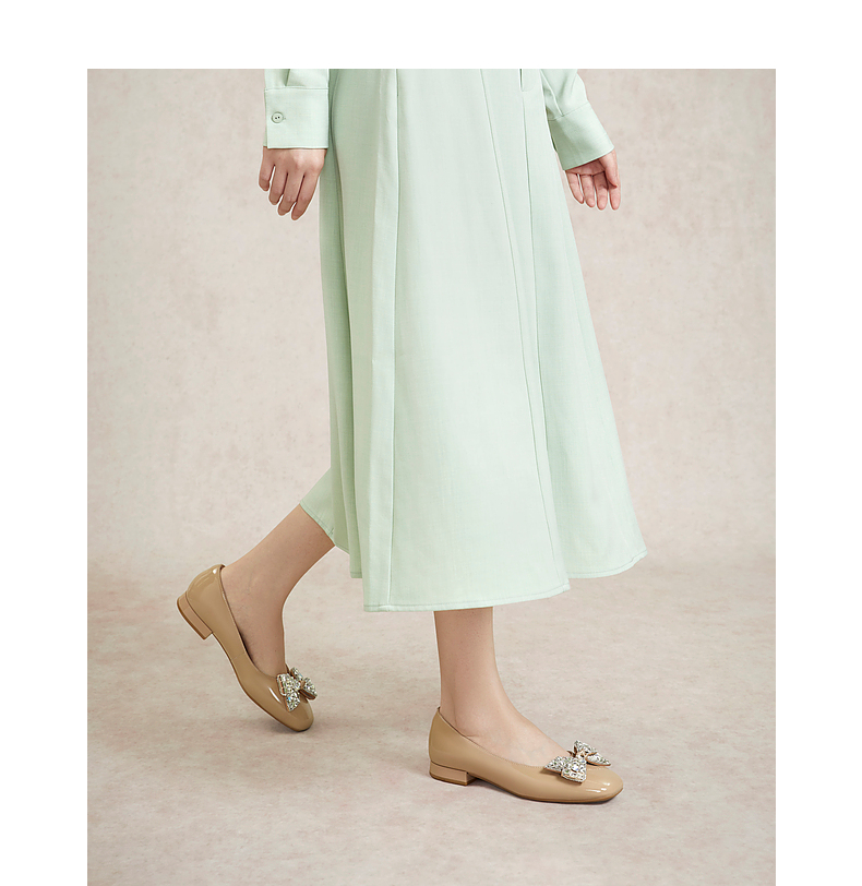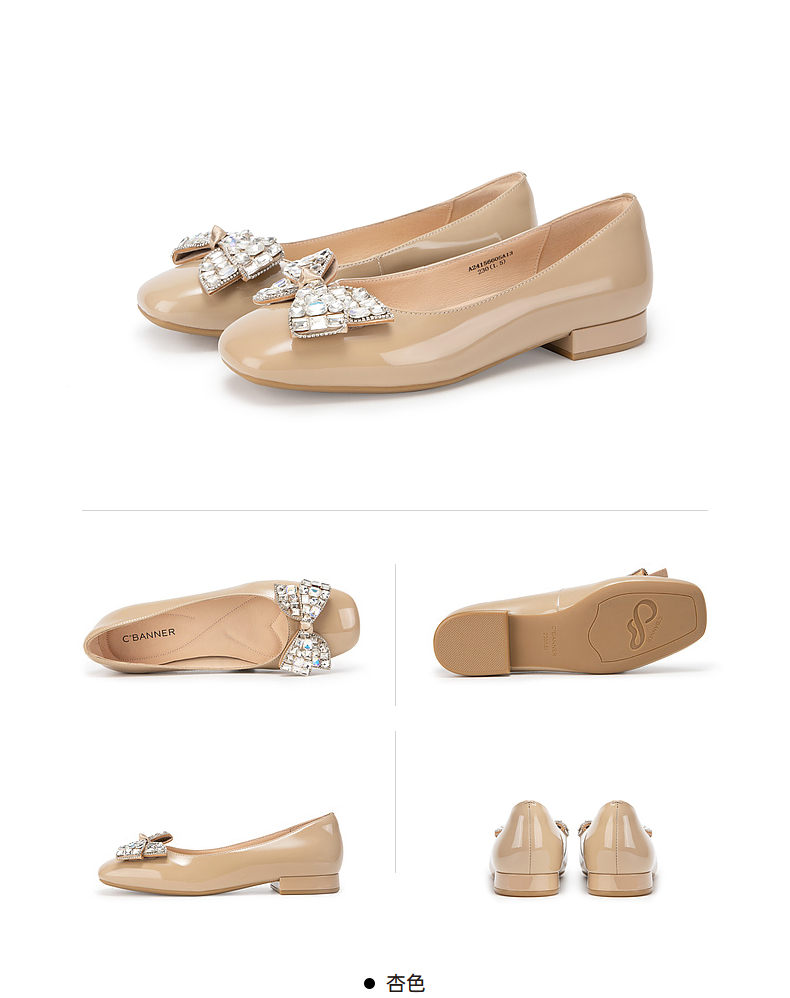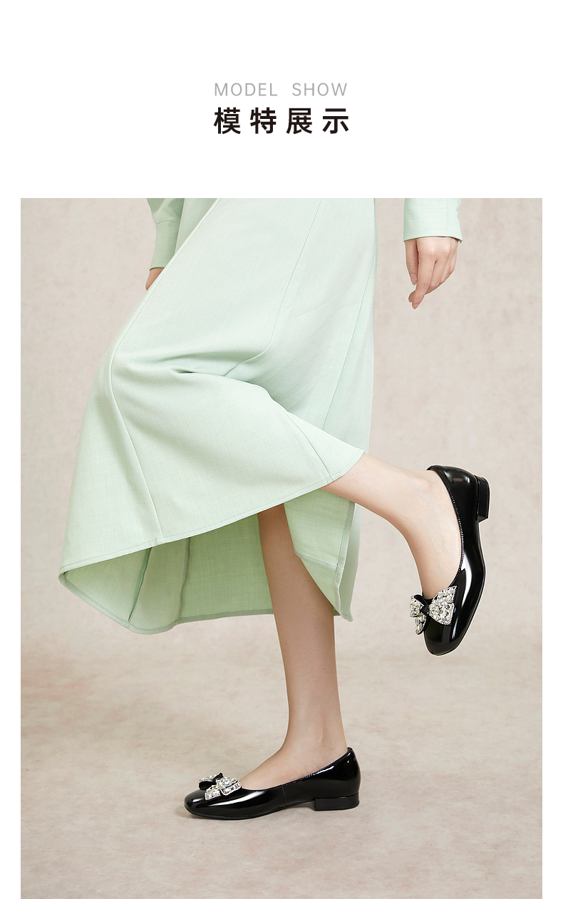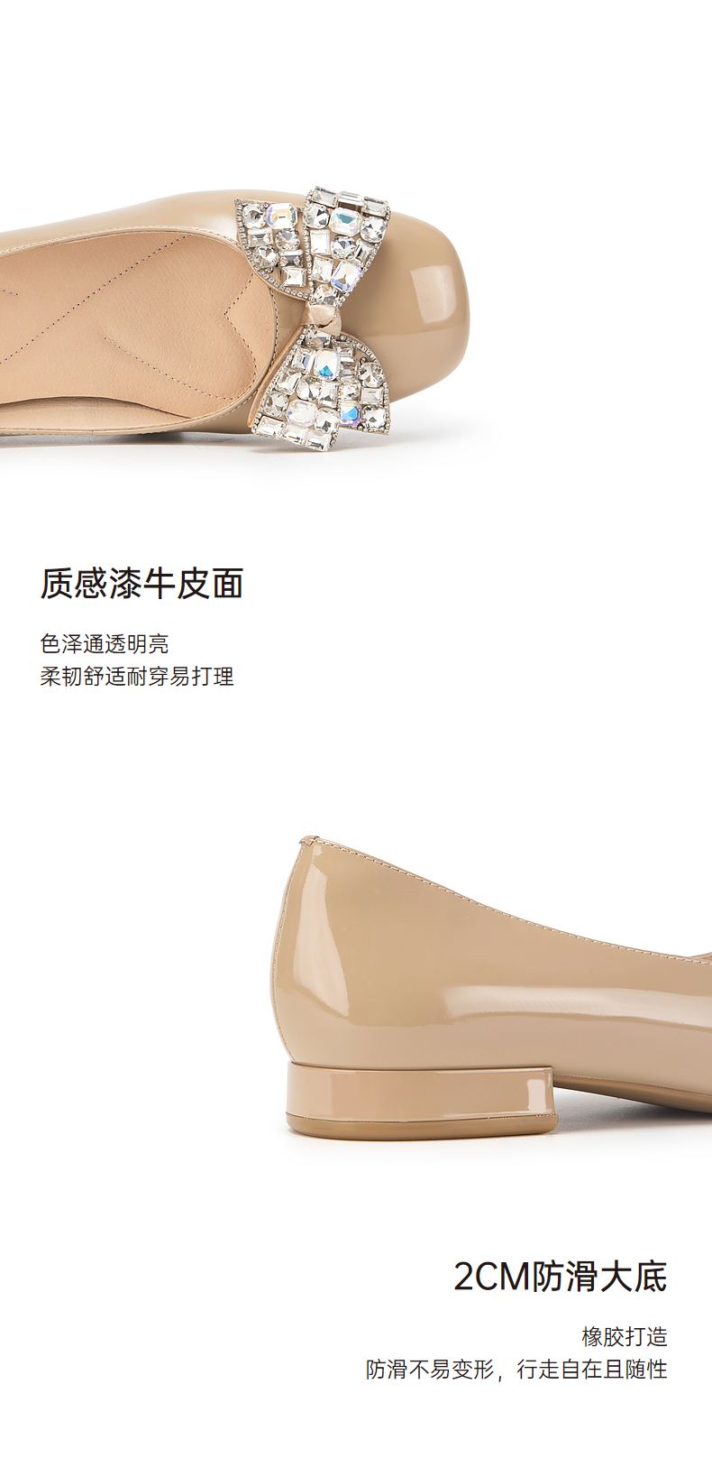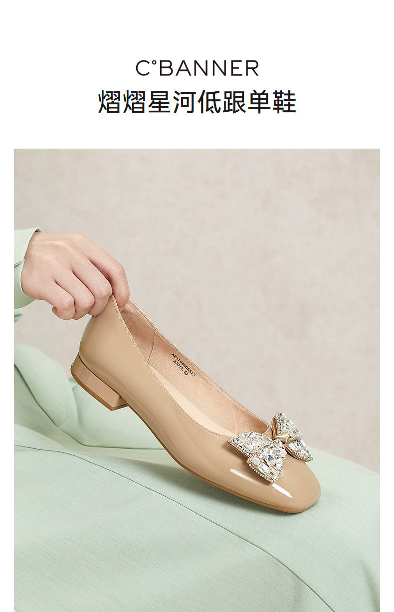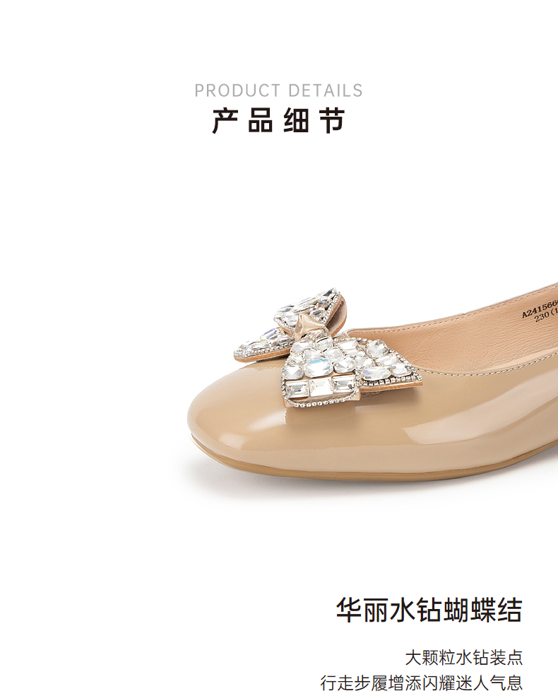 千百度蝴蝶钻饰低跟玛丽珍女鞋通勤真皮通勤浅口单鞋A25185101