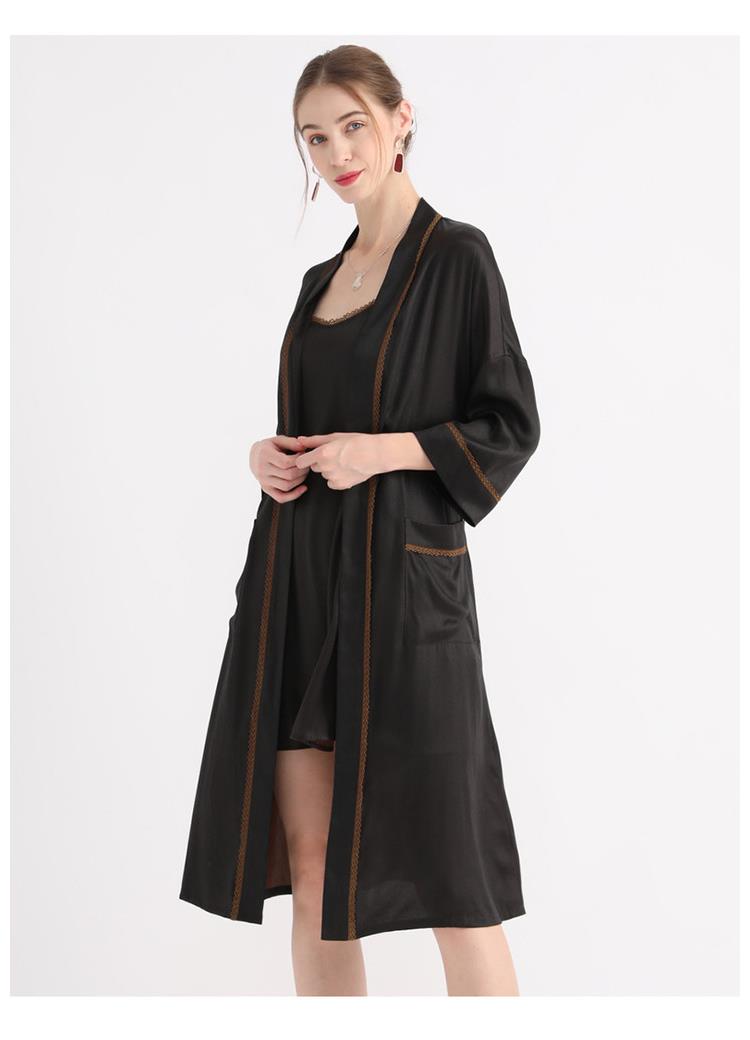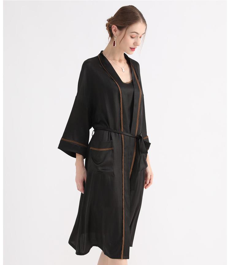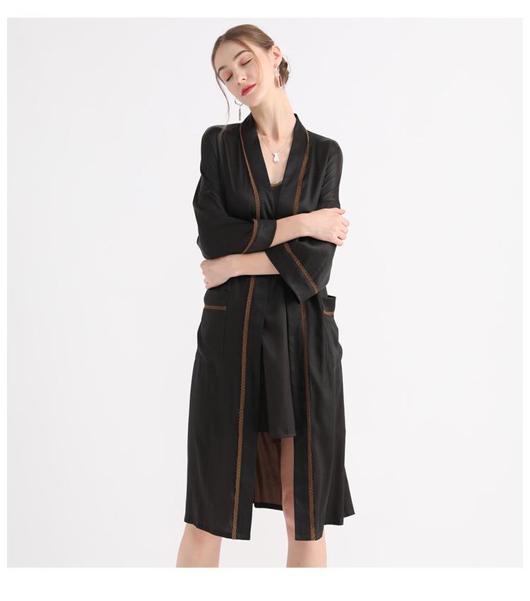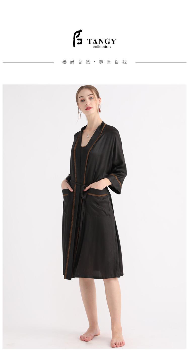TANGY Collection/天意精品春秋新品莨绸拼撞家居服睡袍丝绸外套