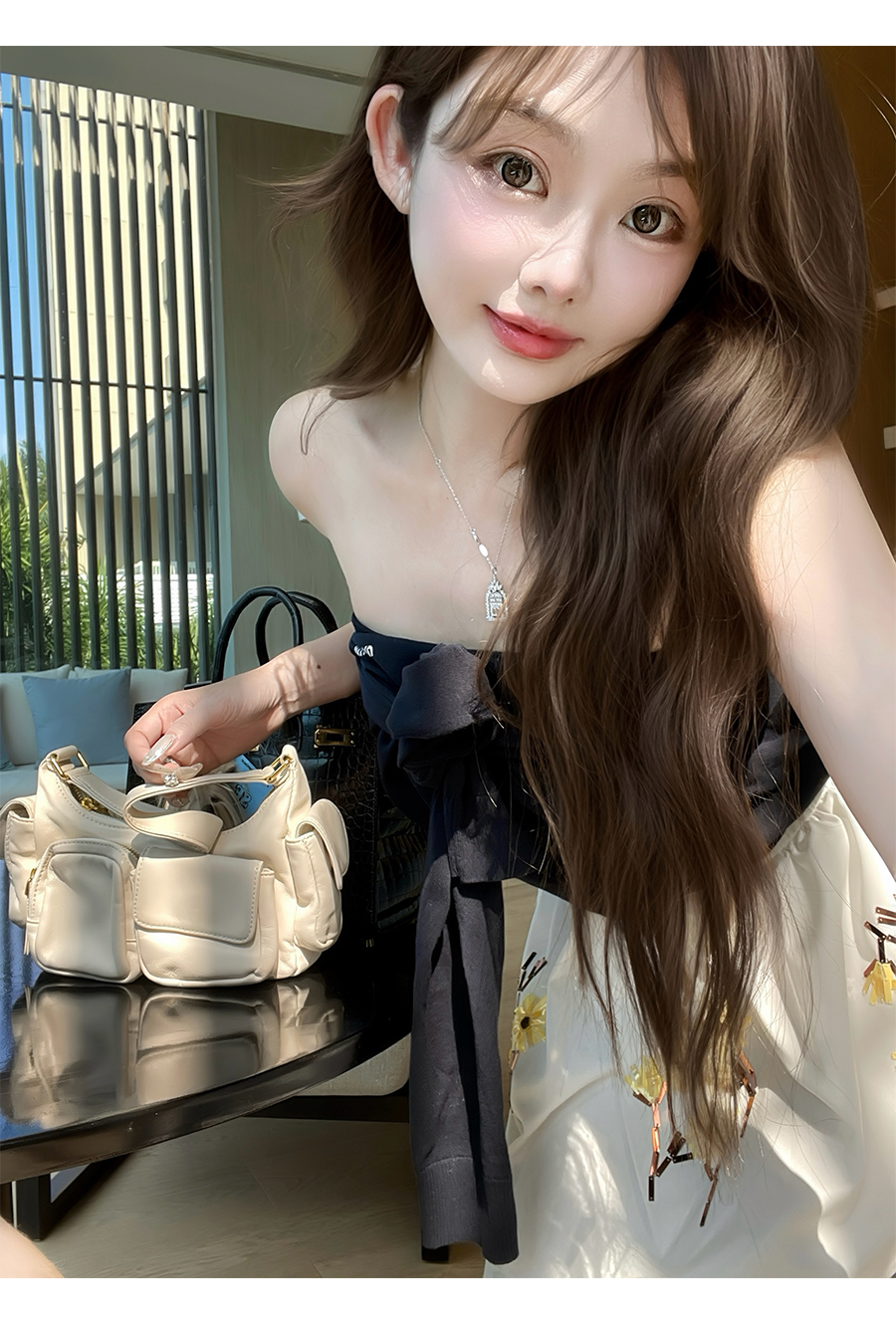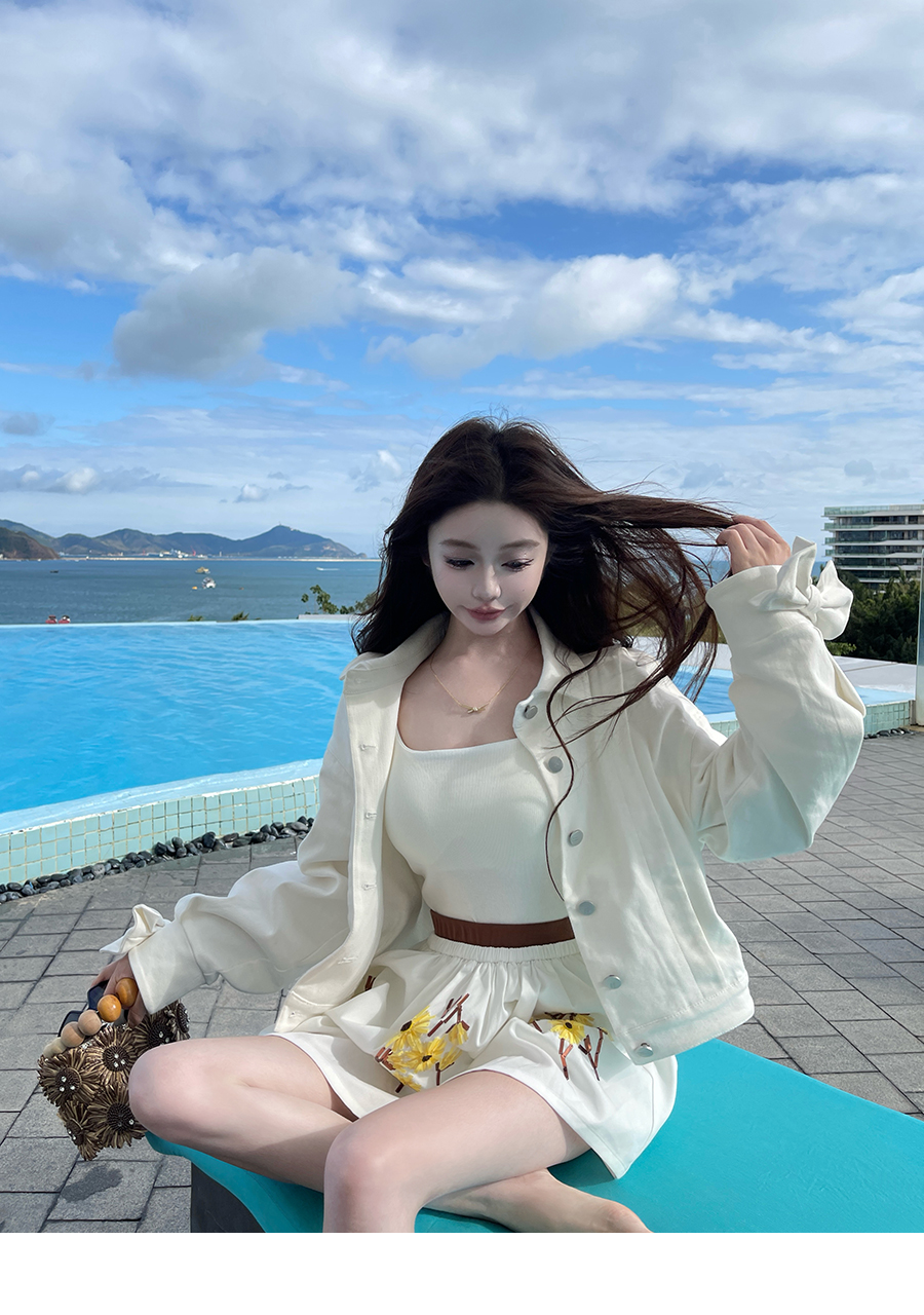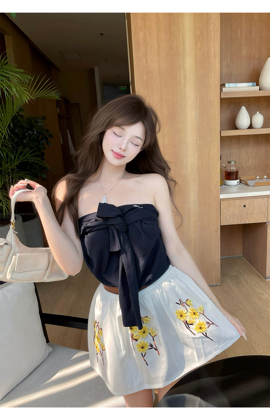 清仓捡漏 LIN BOUTIQUE 多工艺上衣重工罗纹撞色拼接手工订珠伞摆半身裙女