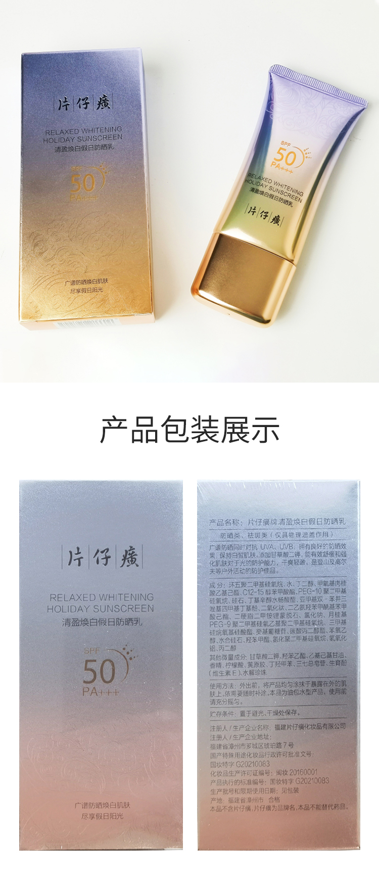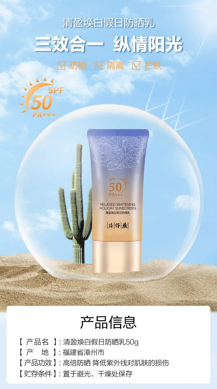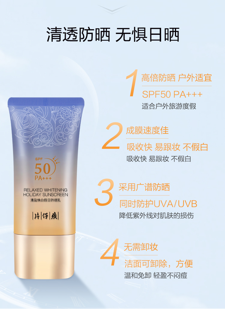 片仔癀牌清盈焕白假日防晒乳SPF50 PA+++ 50g/支*2支 另赠送雪肌无暇润白泥膜