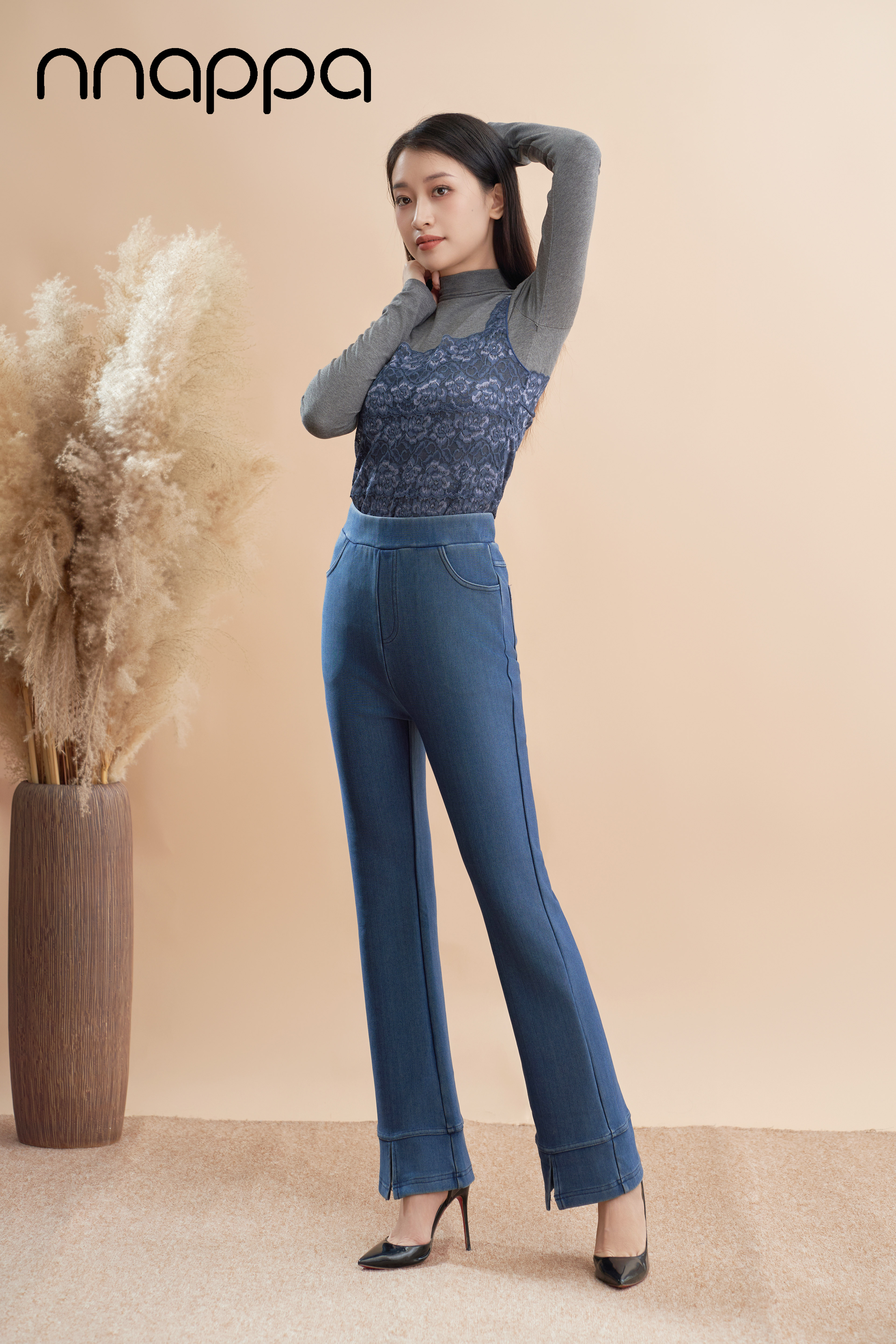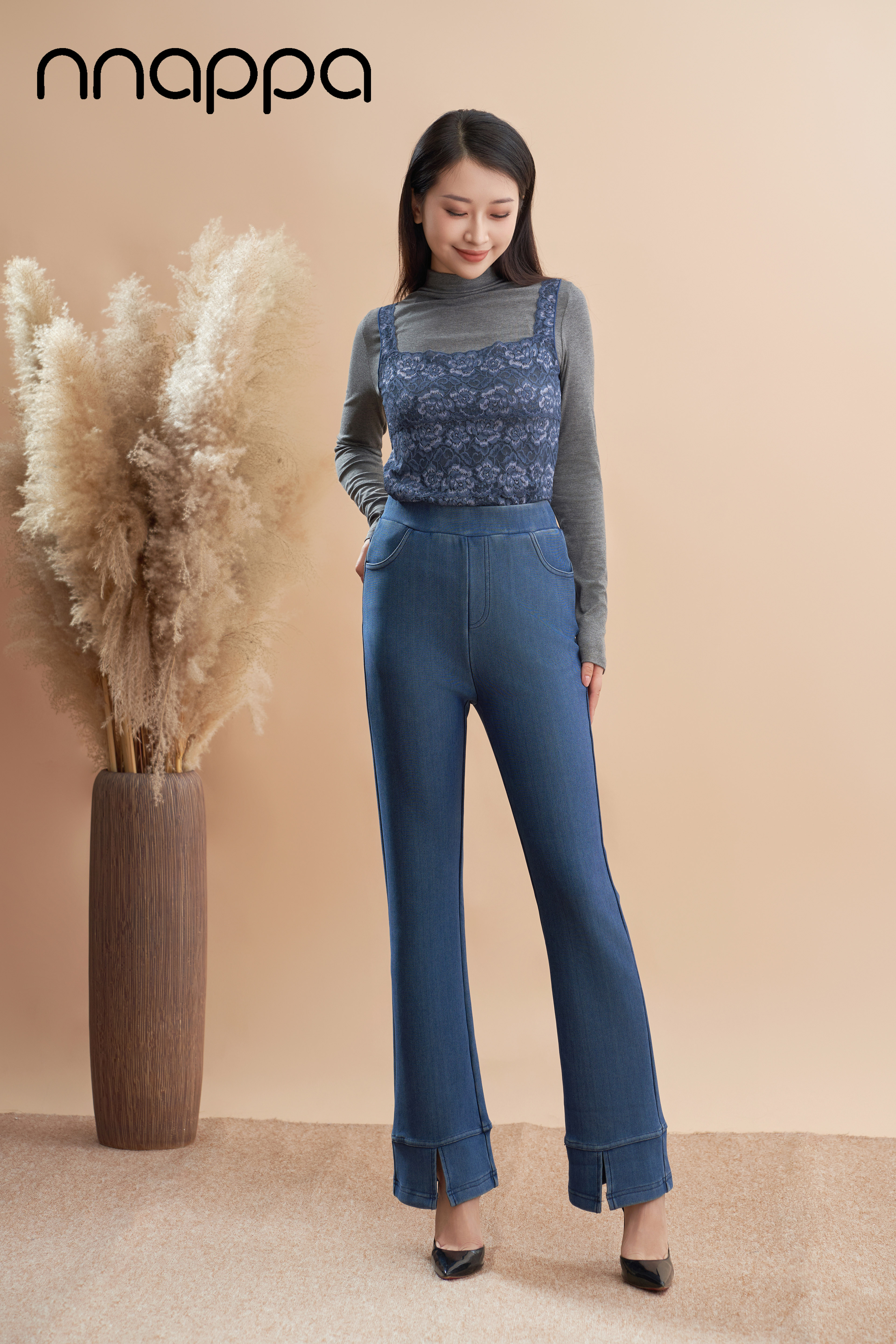 舒适天丝开衩微喇裤PA29335