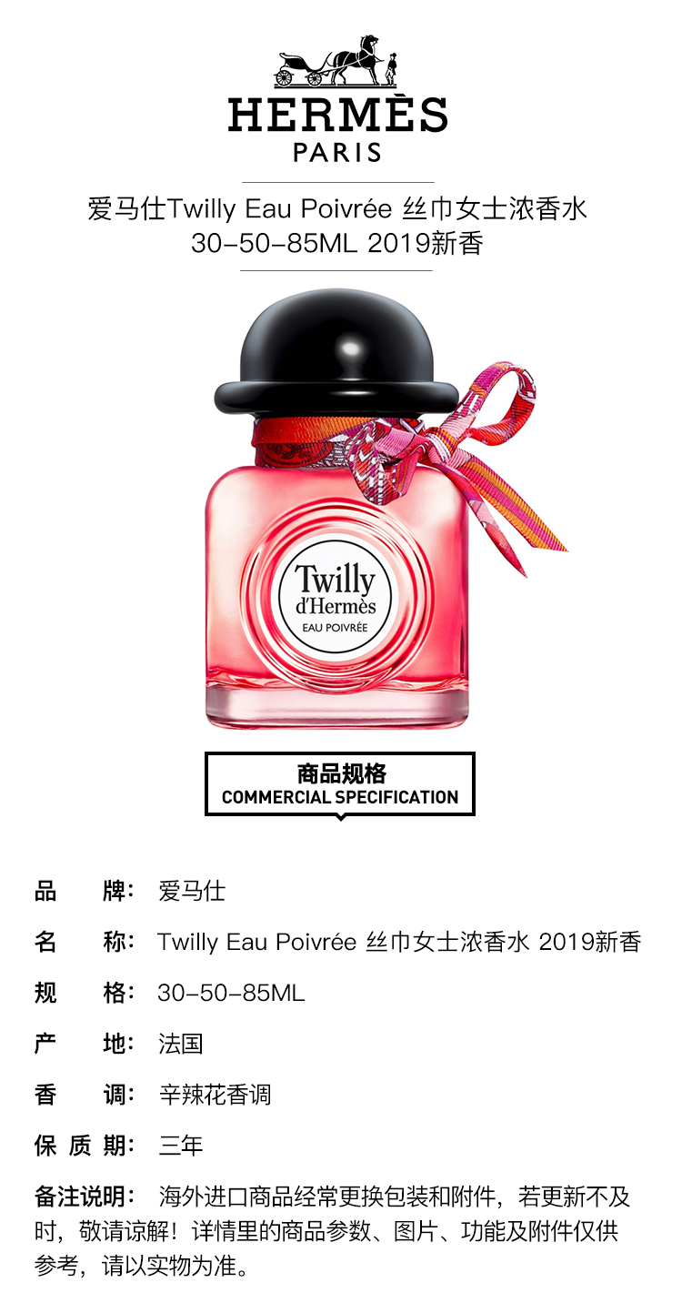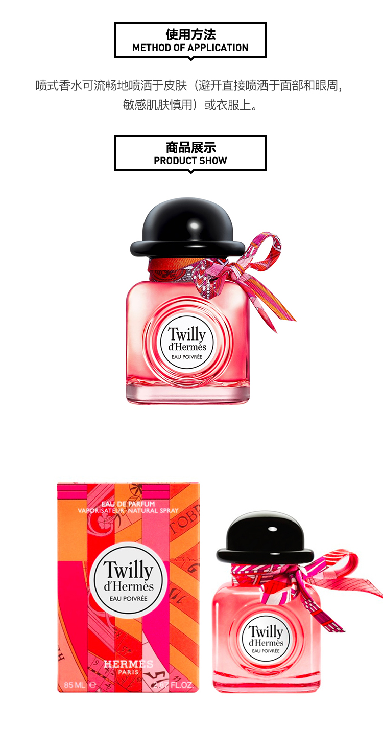 HERMES/爱马仕 新丝巾女士浓香水30-50-85ML EAU POIVREE