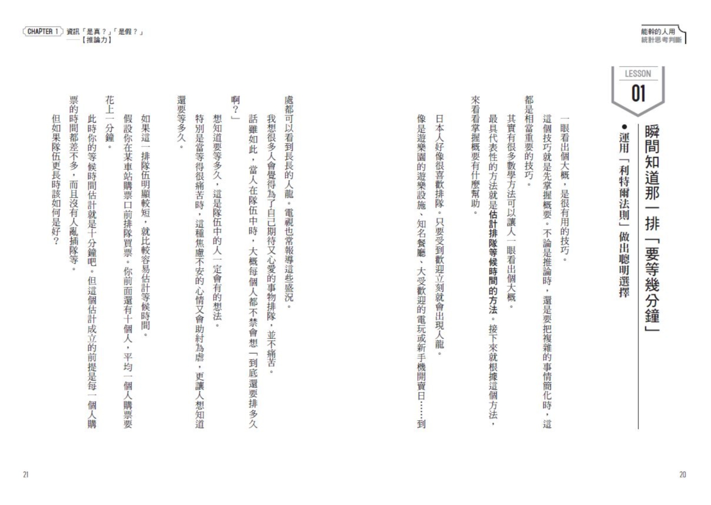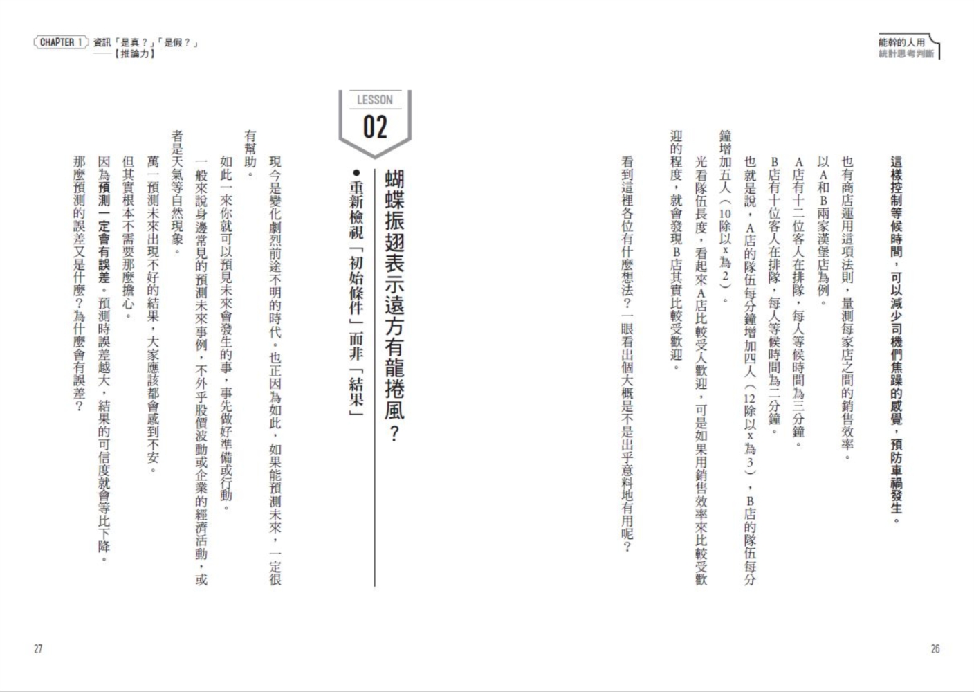 從這些日常生活的場景,到升學、就業、結婚、買房等人生的重要階段,只要運用統計思考,就可以毫不猶豫地做出合宜判斷……可說是「為你解決問題,開拓人生」的思考方法。