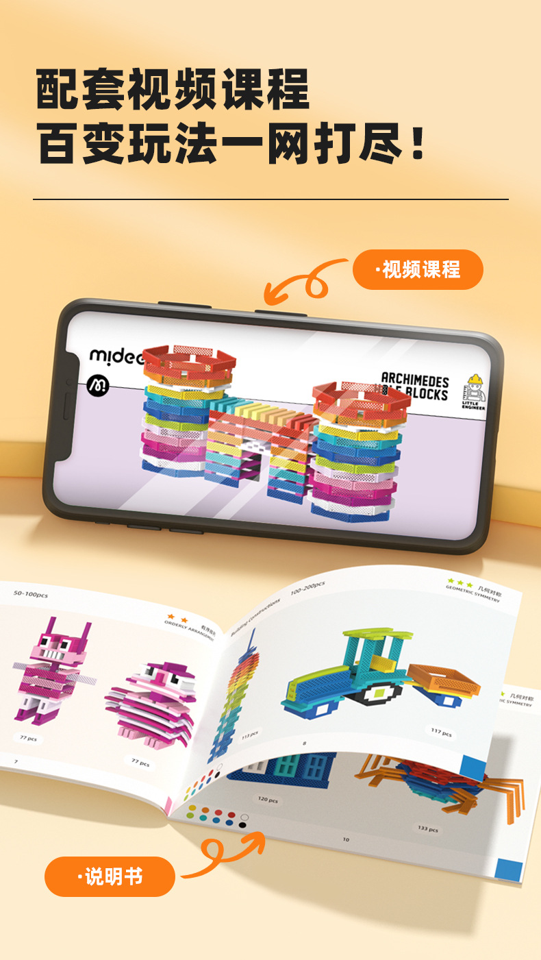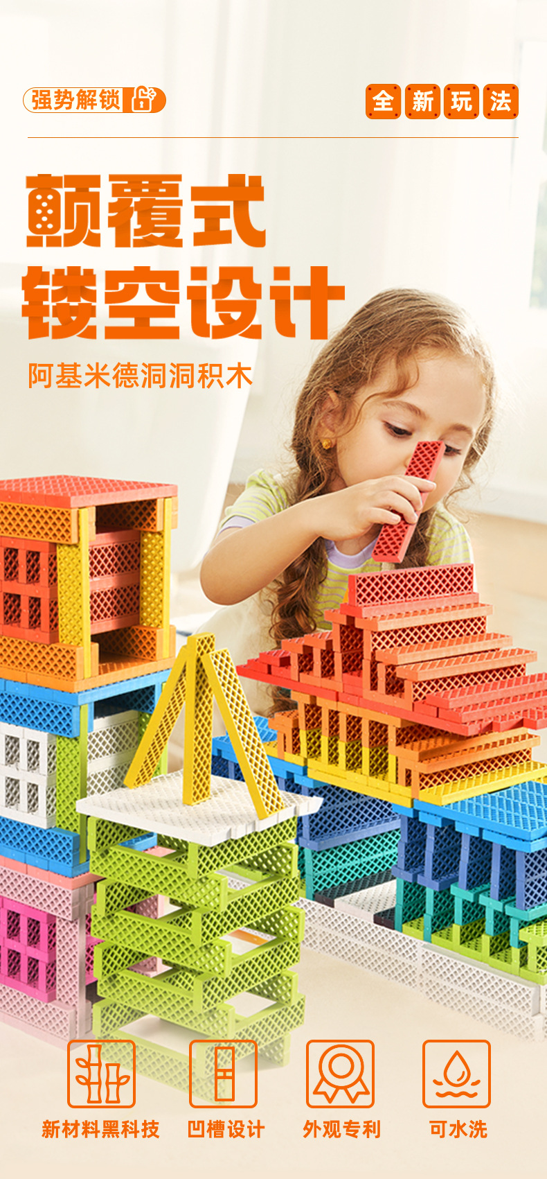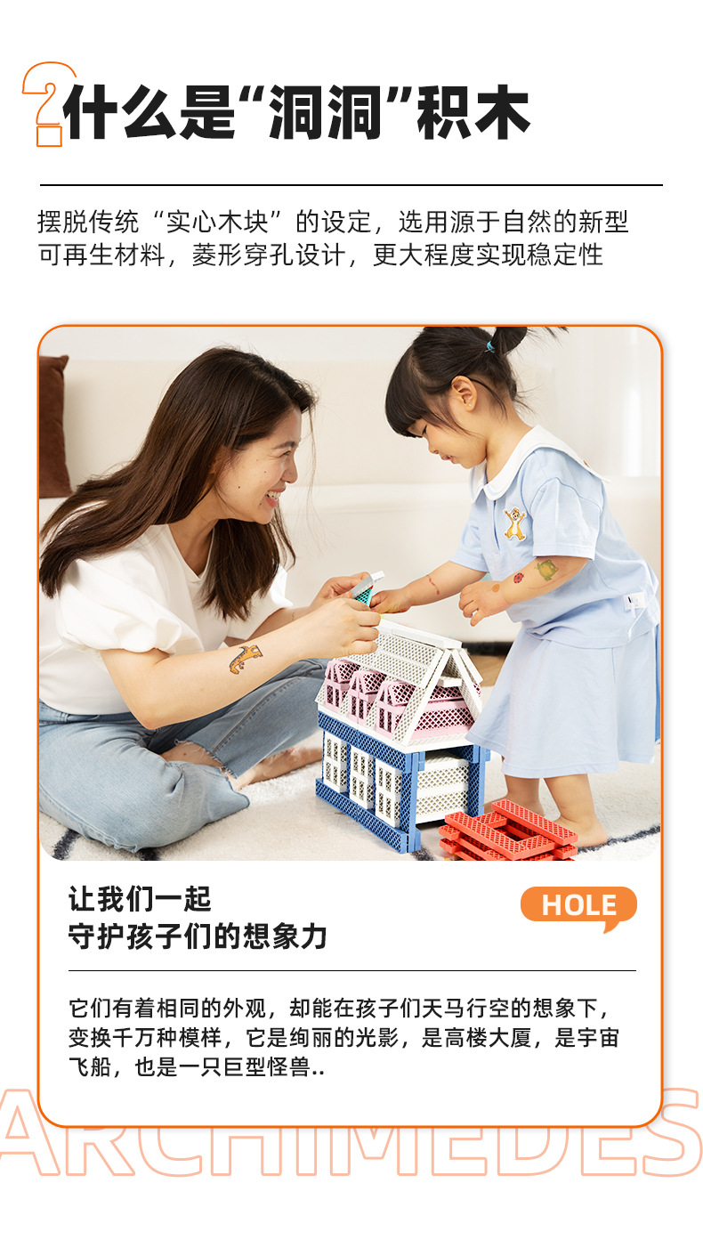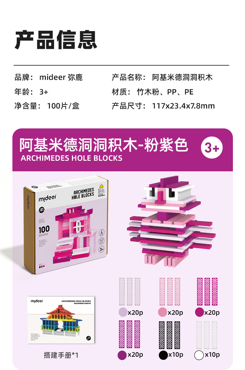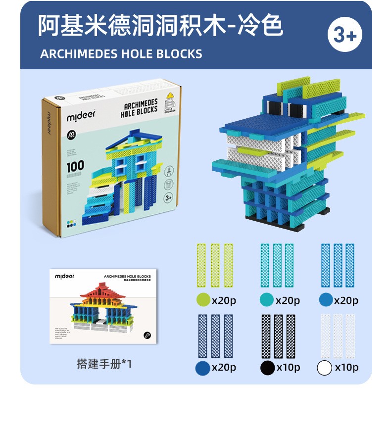 mideer弥鹿阿基米德洞洞积木拼装益智玩具儿童建筑叠叠乐新年礼物