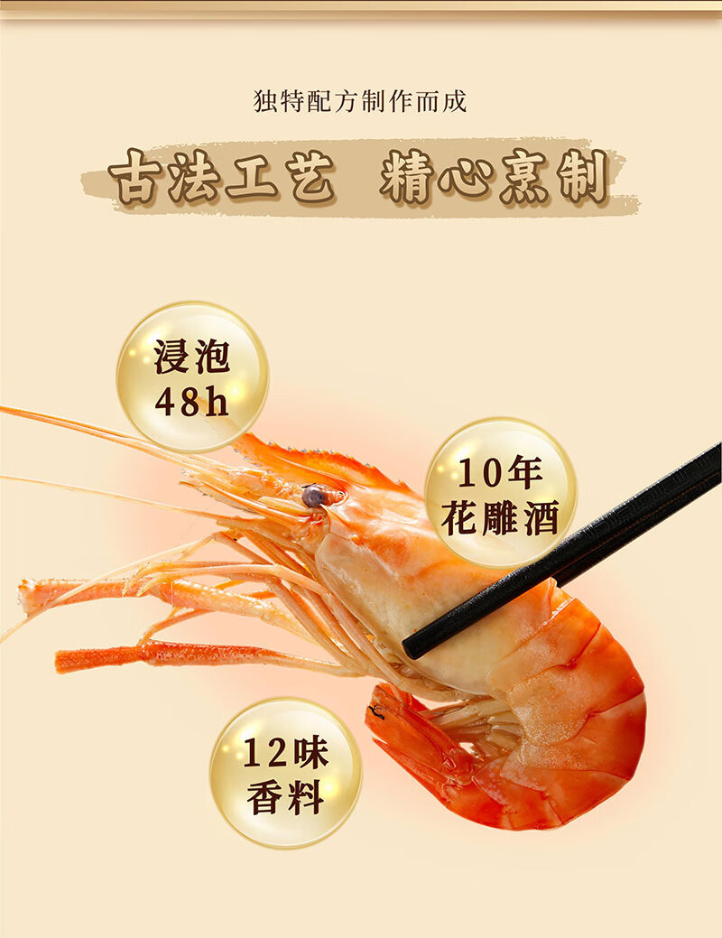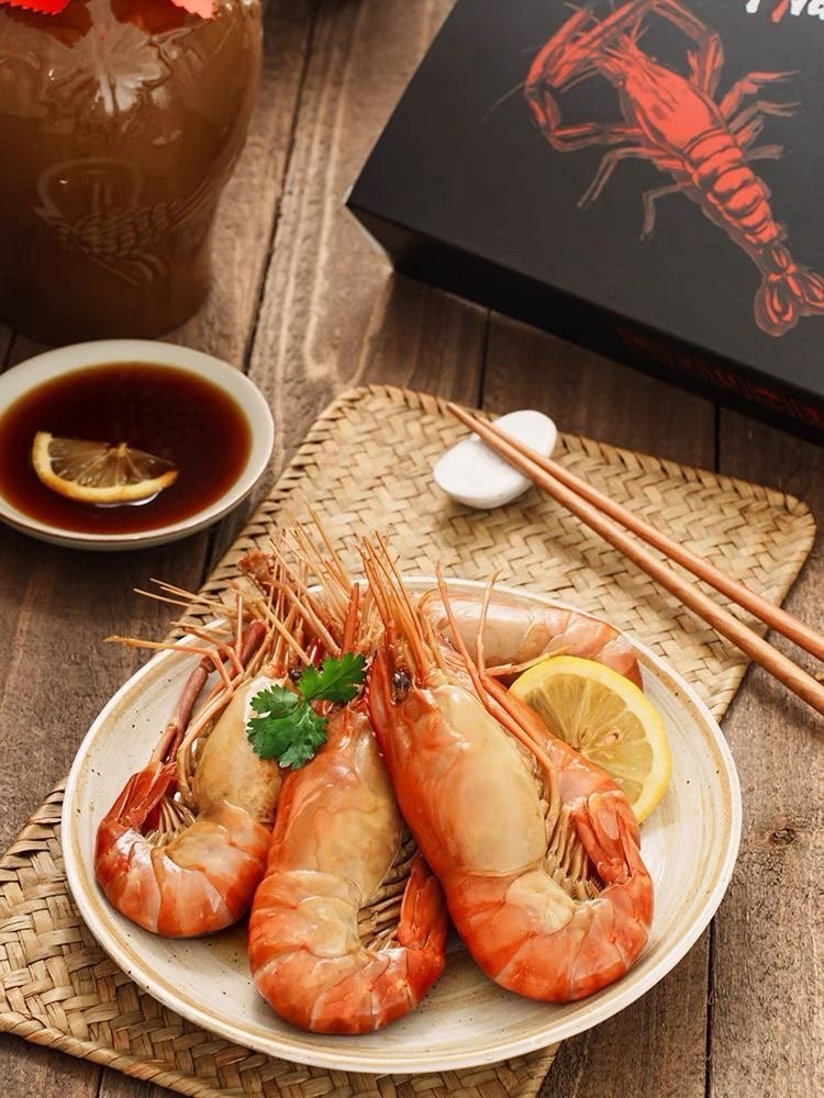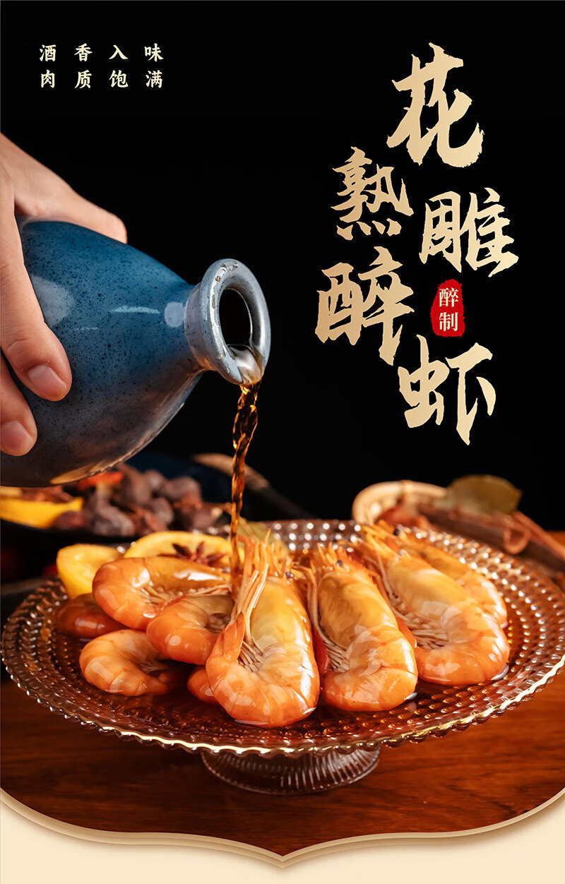 【花雕熟醉罗氏虾】 🥂活虾速冻 冷萃锁住虾肉的弹嫩 秘制花雕多种香辛料 精心卤制入味十足