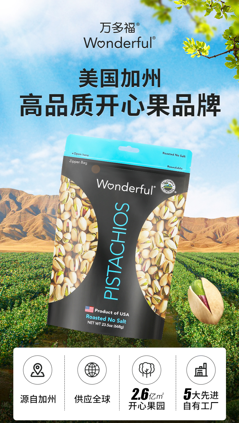 万多福美国加州进口开心果经典无盐味668g/300g 无添加原味原色经典无盐味 059153/152258