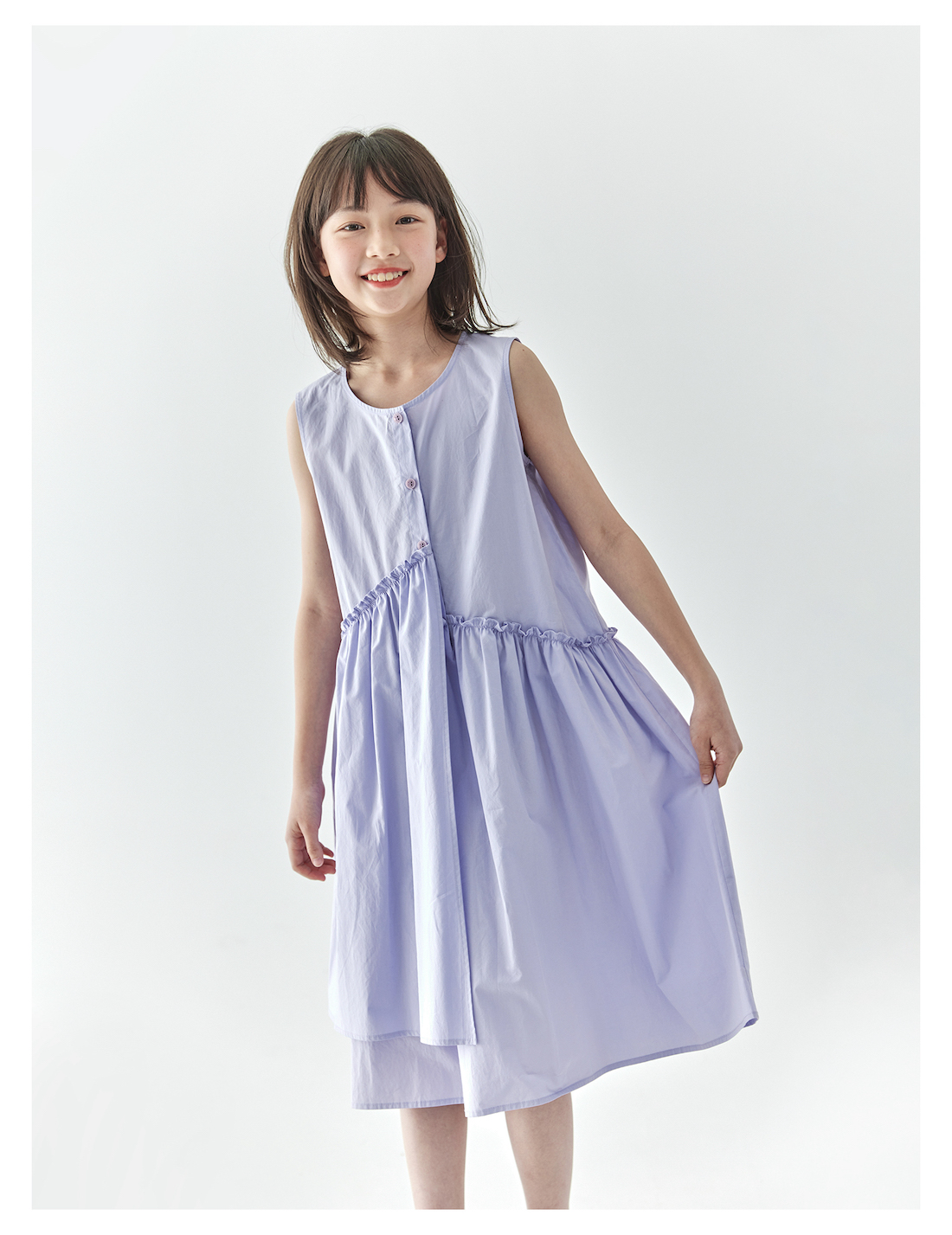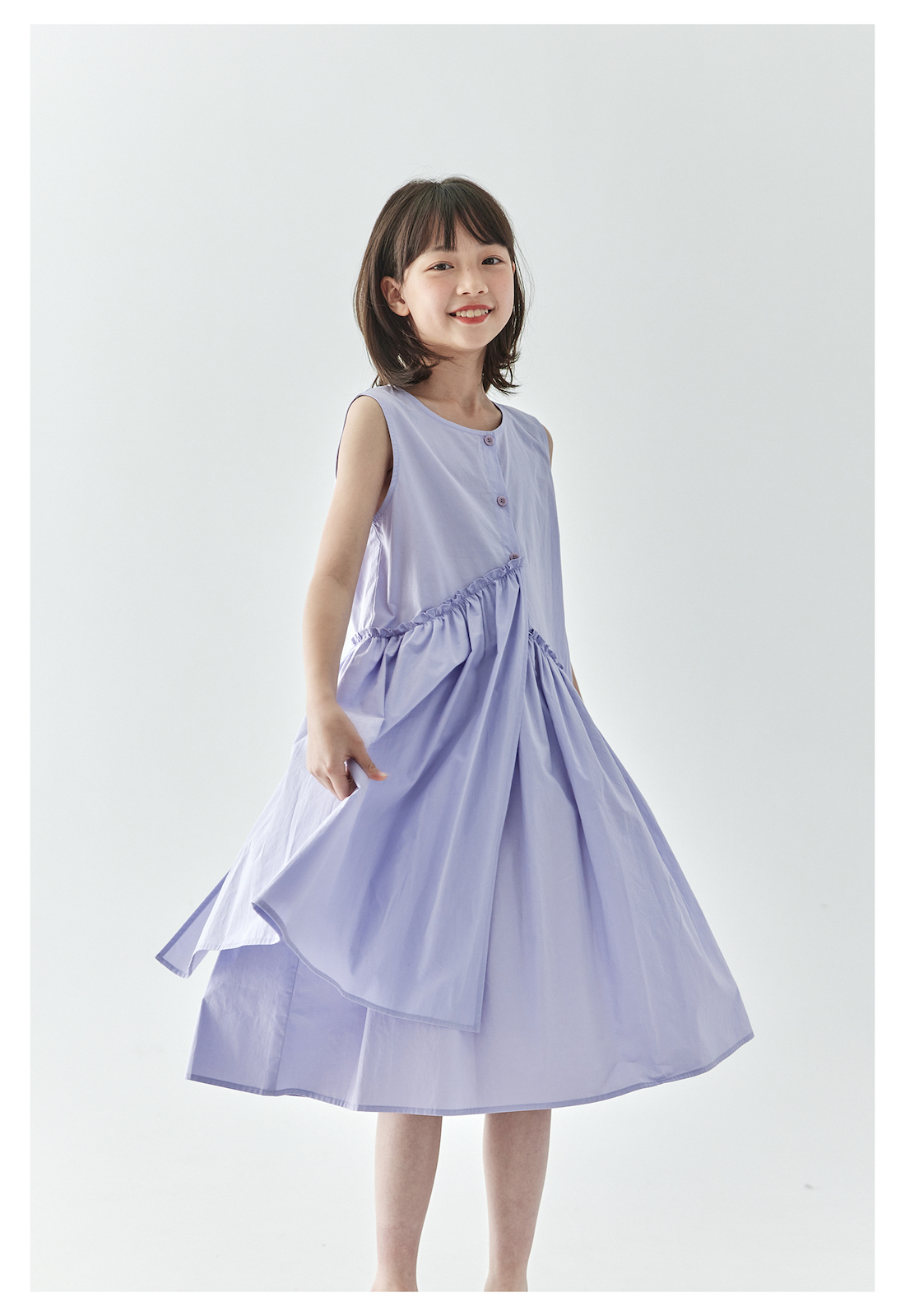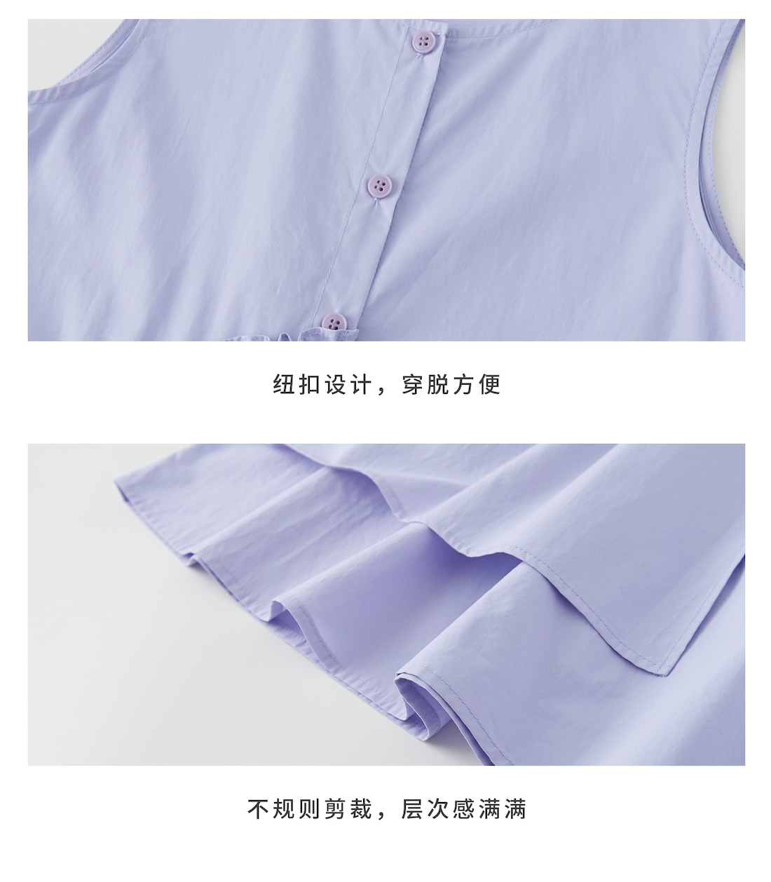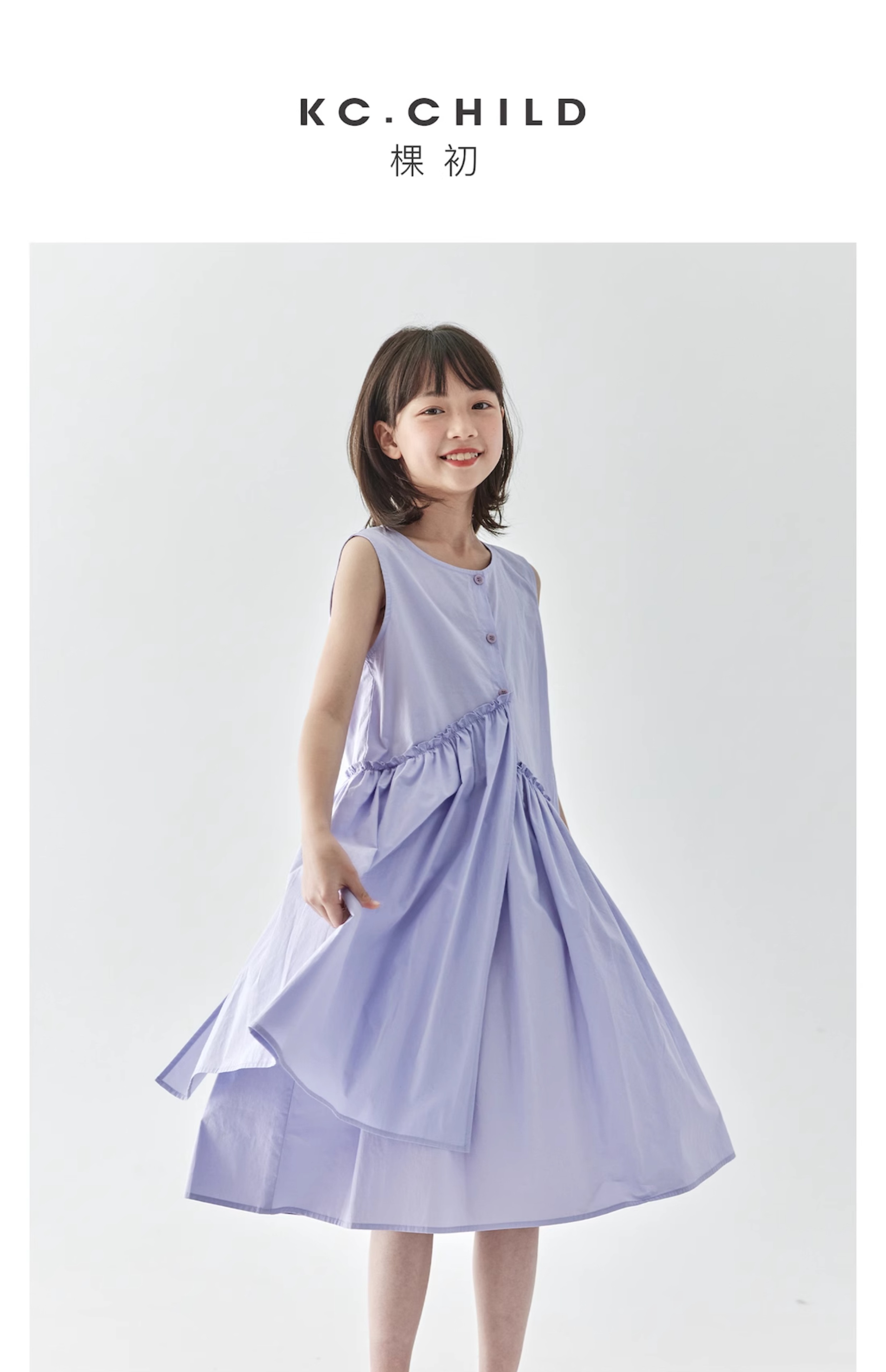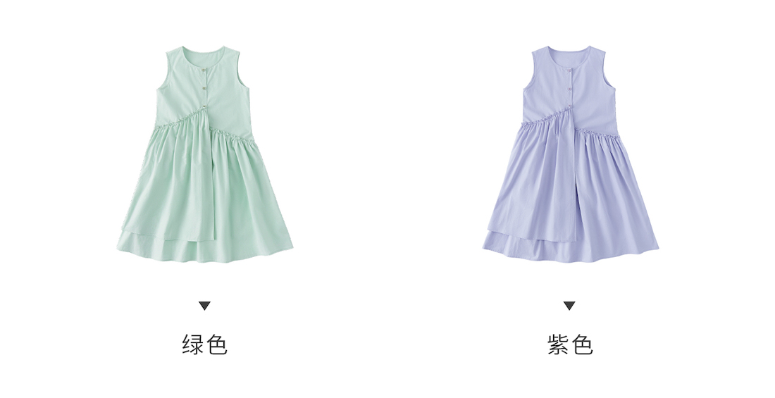 【代发】女款纯色连衣裙 棵初夏季款亲子中大女童纯棉无袖裙子木耳边宽松仙女裙湖水绿/紫色