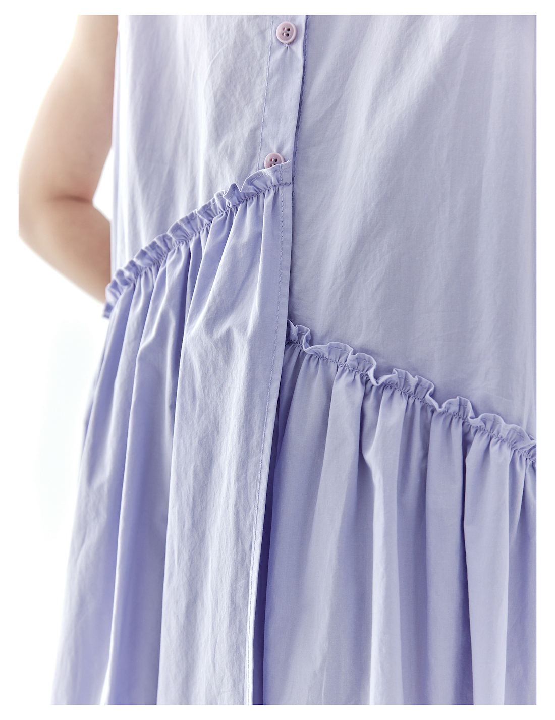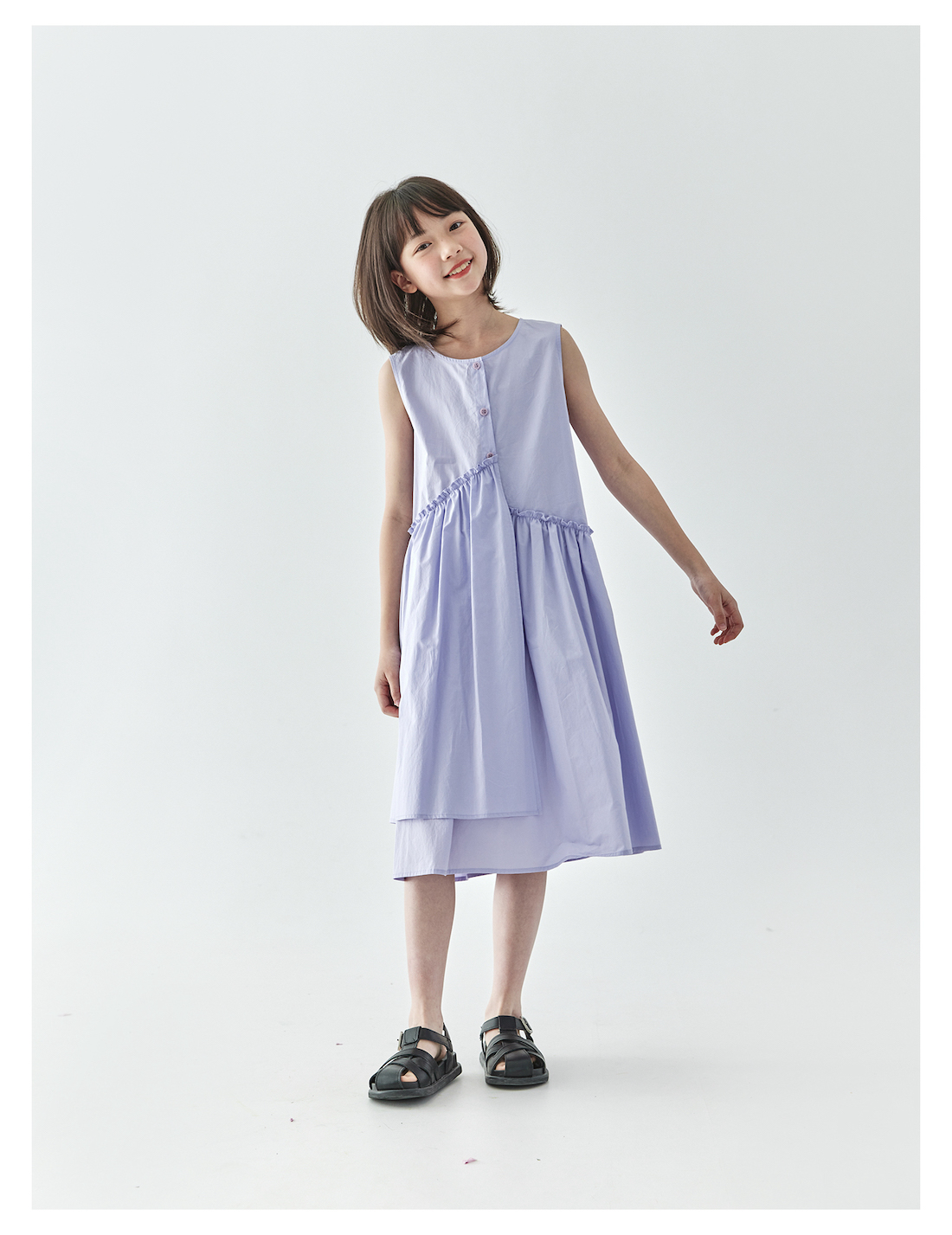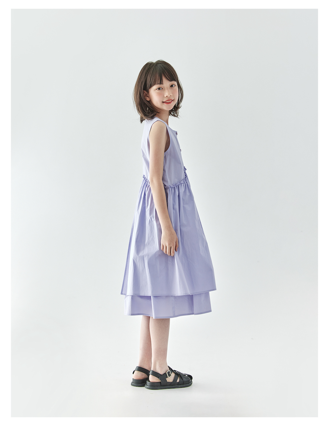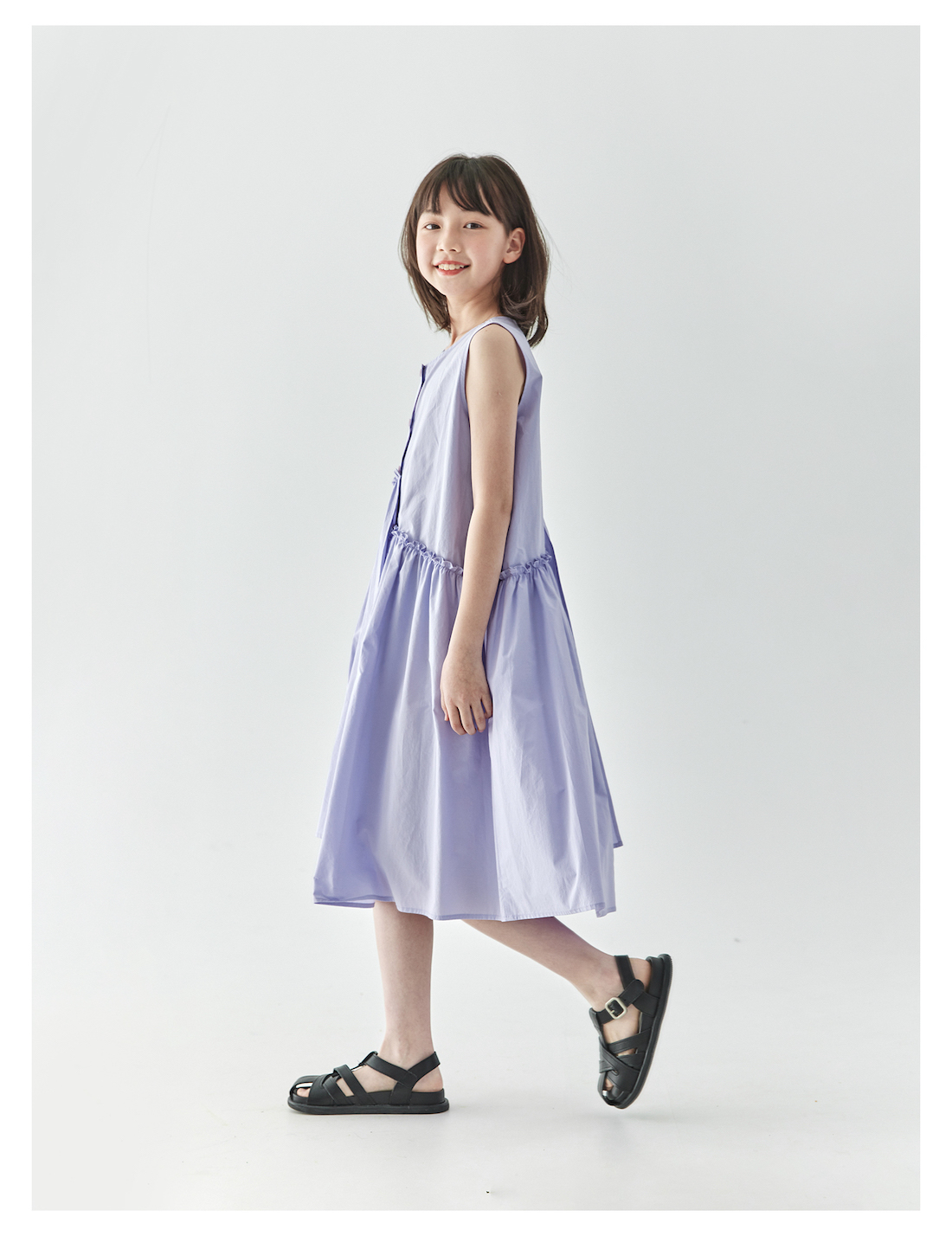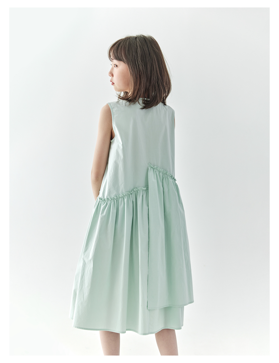【代发】女款纯色连衣裙 棵初夏季款亲子中大女童纯棉无袖裙子木耳边宽松仙女裙湖水绿/紫色