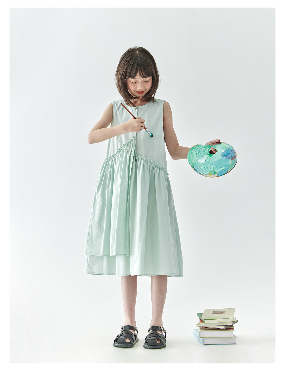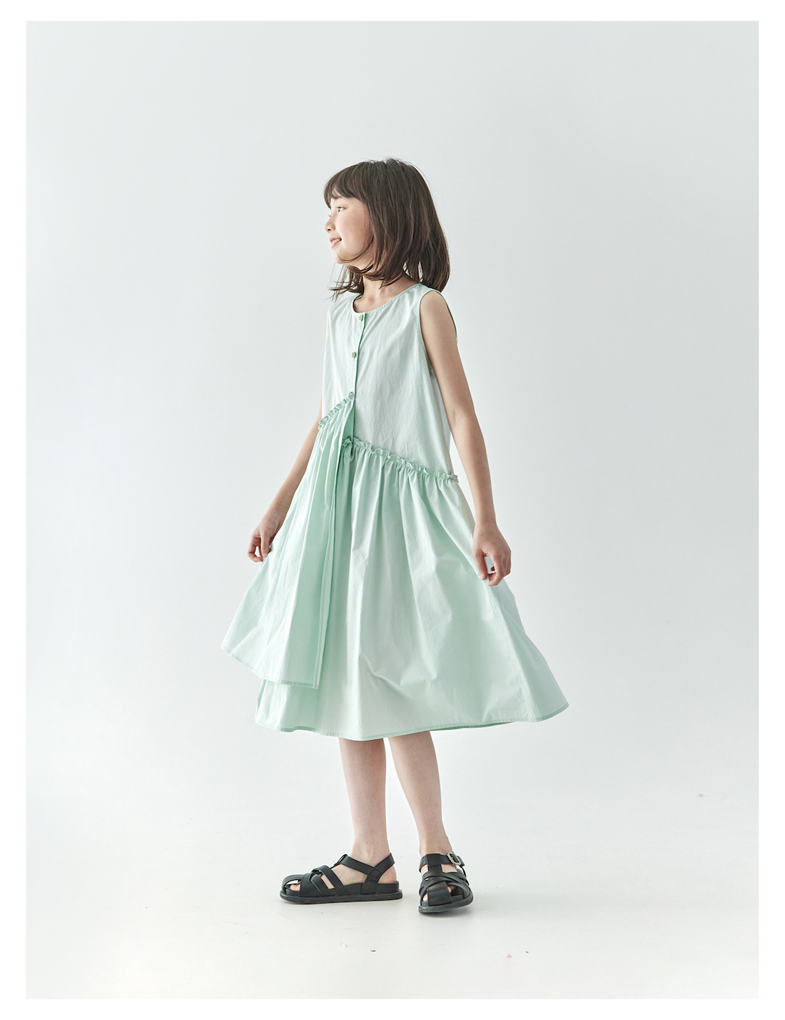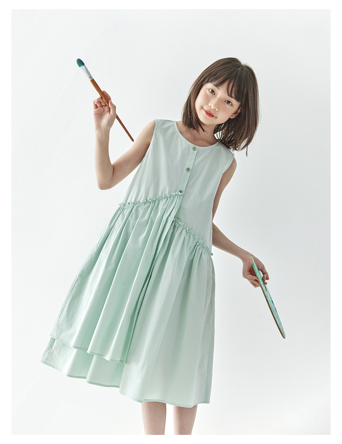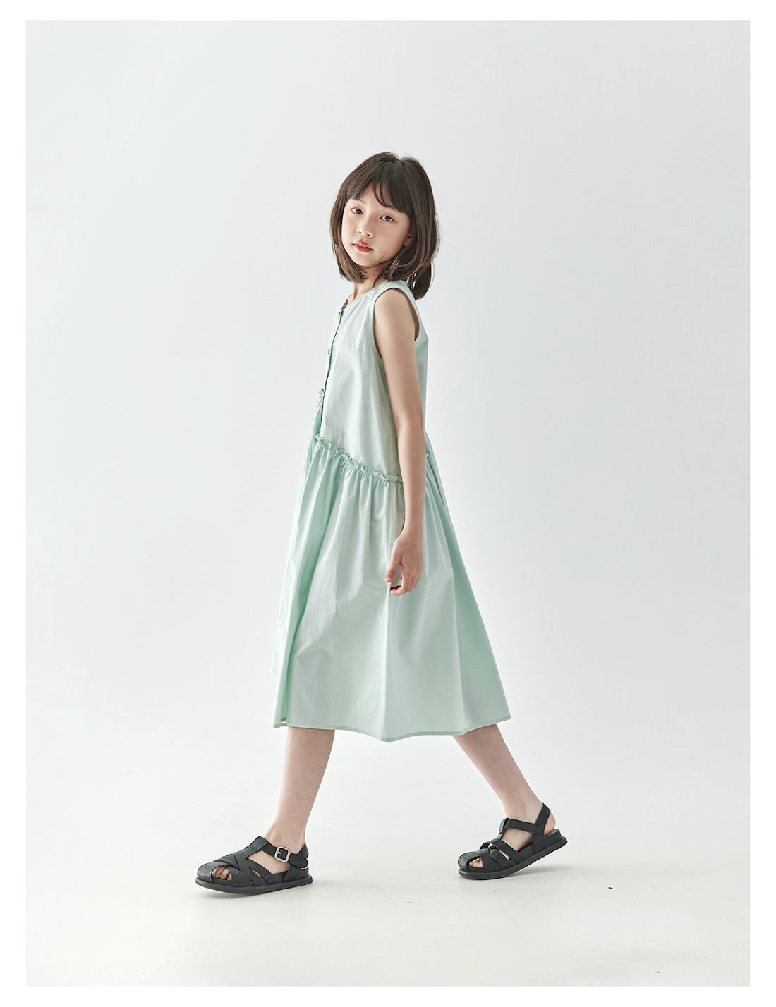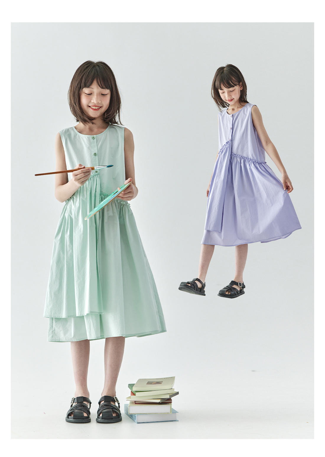 【代发】女款纯色连衣裙 棵初夏季款亲子中大女童纯棉无袖裙子木耳边宽松仙女裙湖水绿/紫色