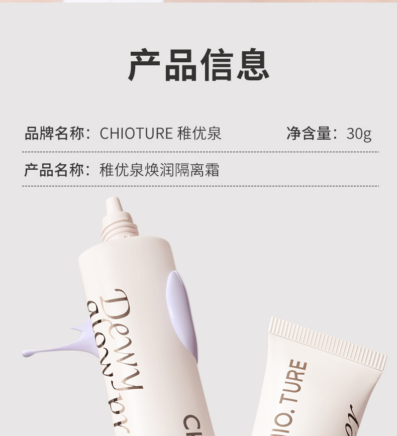稚优泉焕润隔离霜妆前乳素颜霜贴贴霜打底滋润妆前乳紫色素颜霜
