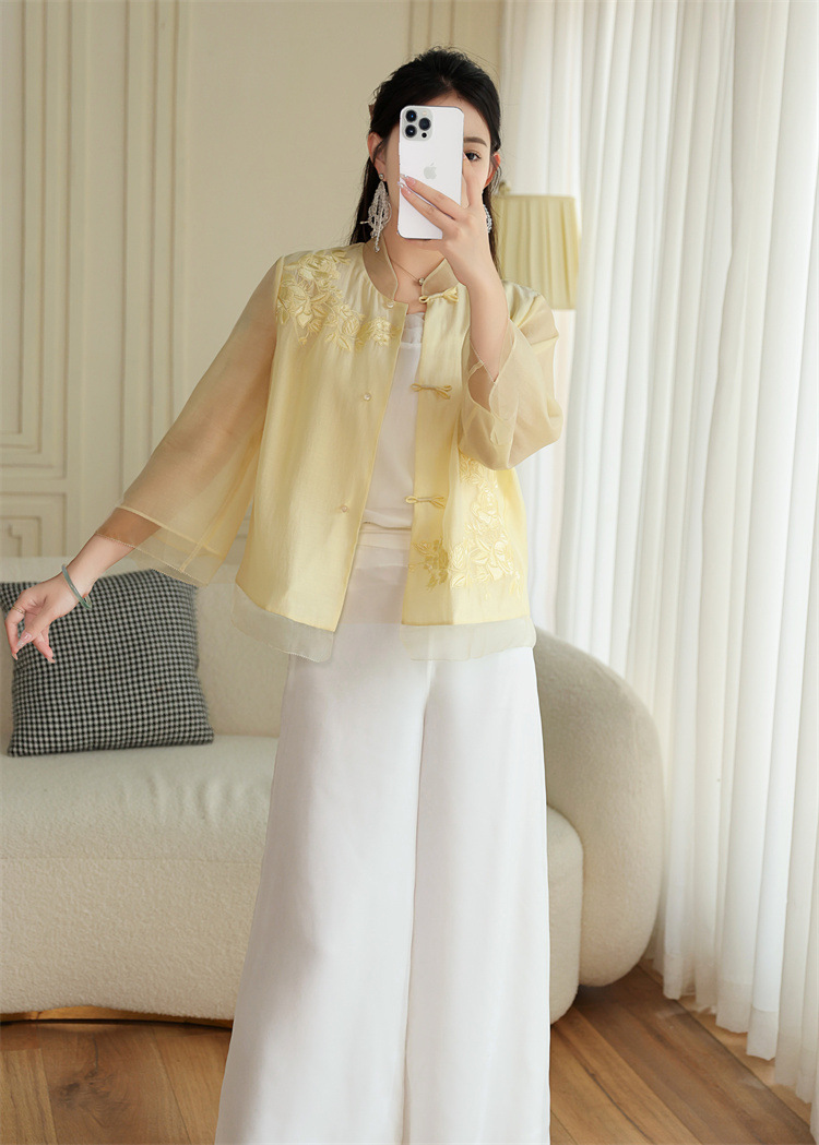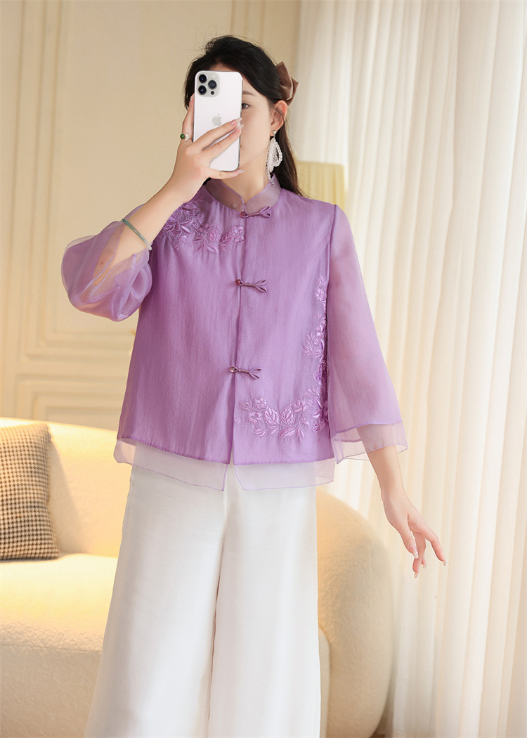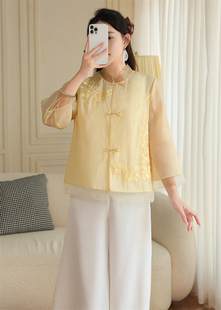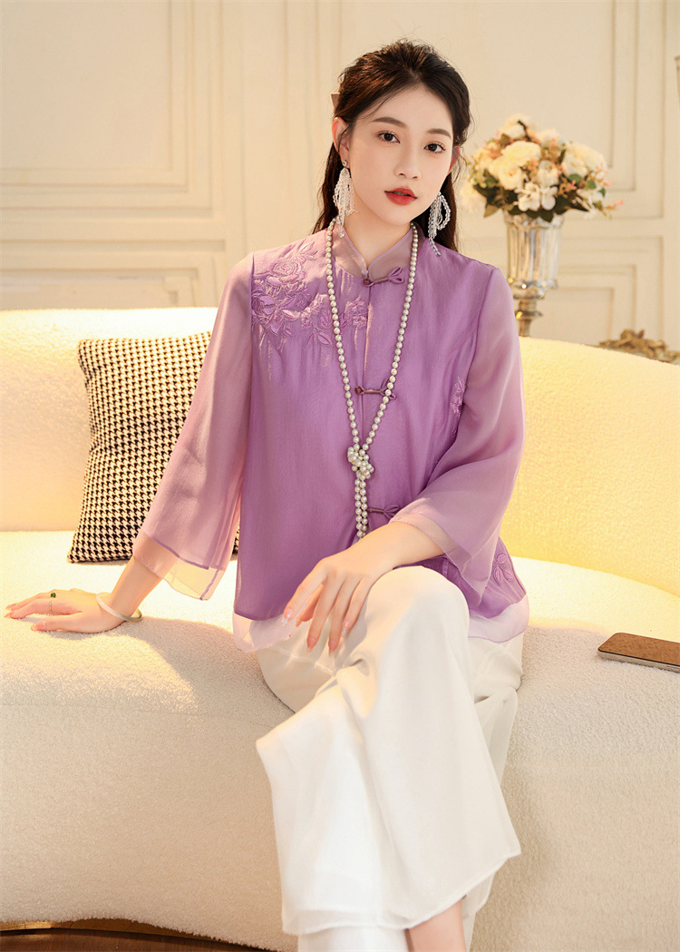 新款国风,刺绣感宽松新中式盘扣上衣FL9327
