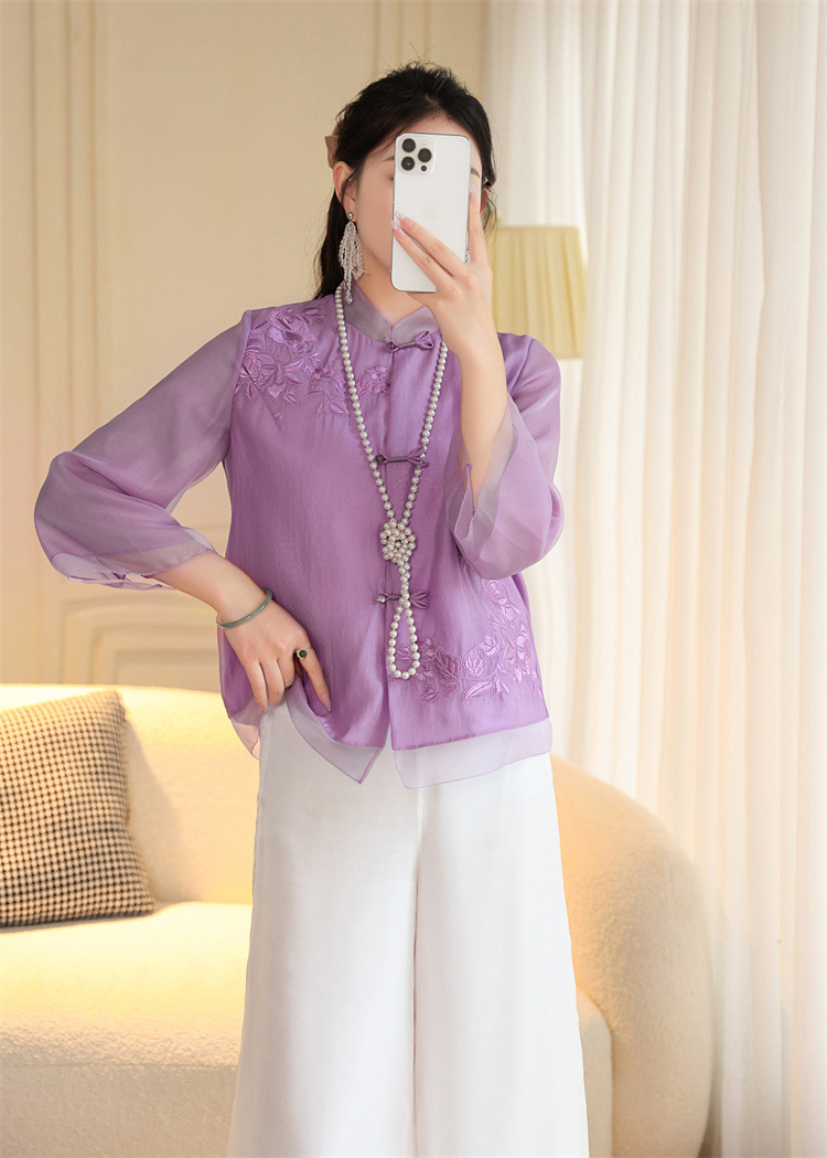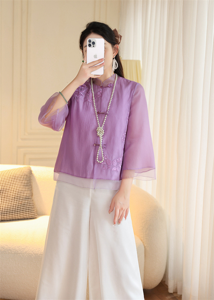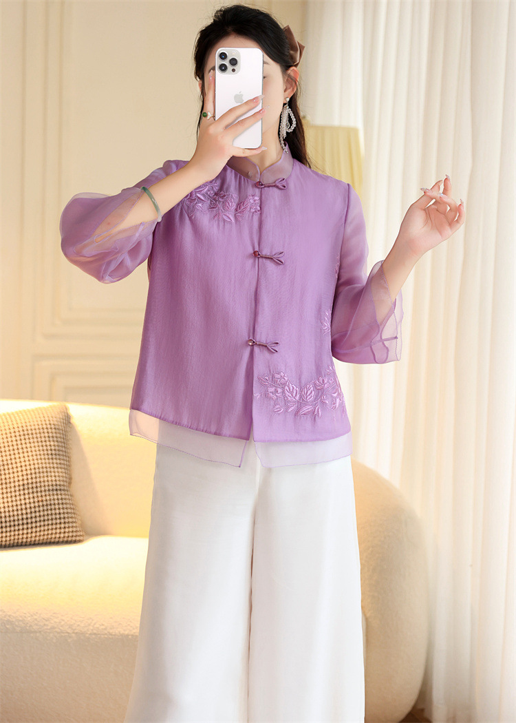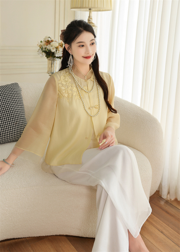 新款国风,刺绣感宽松新中式盘扣上衣FL9327