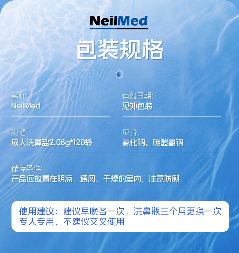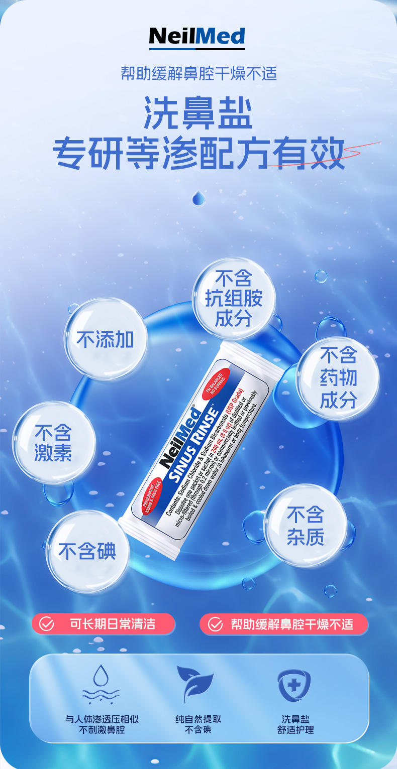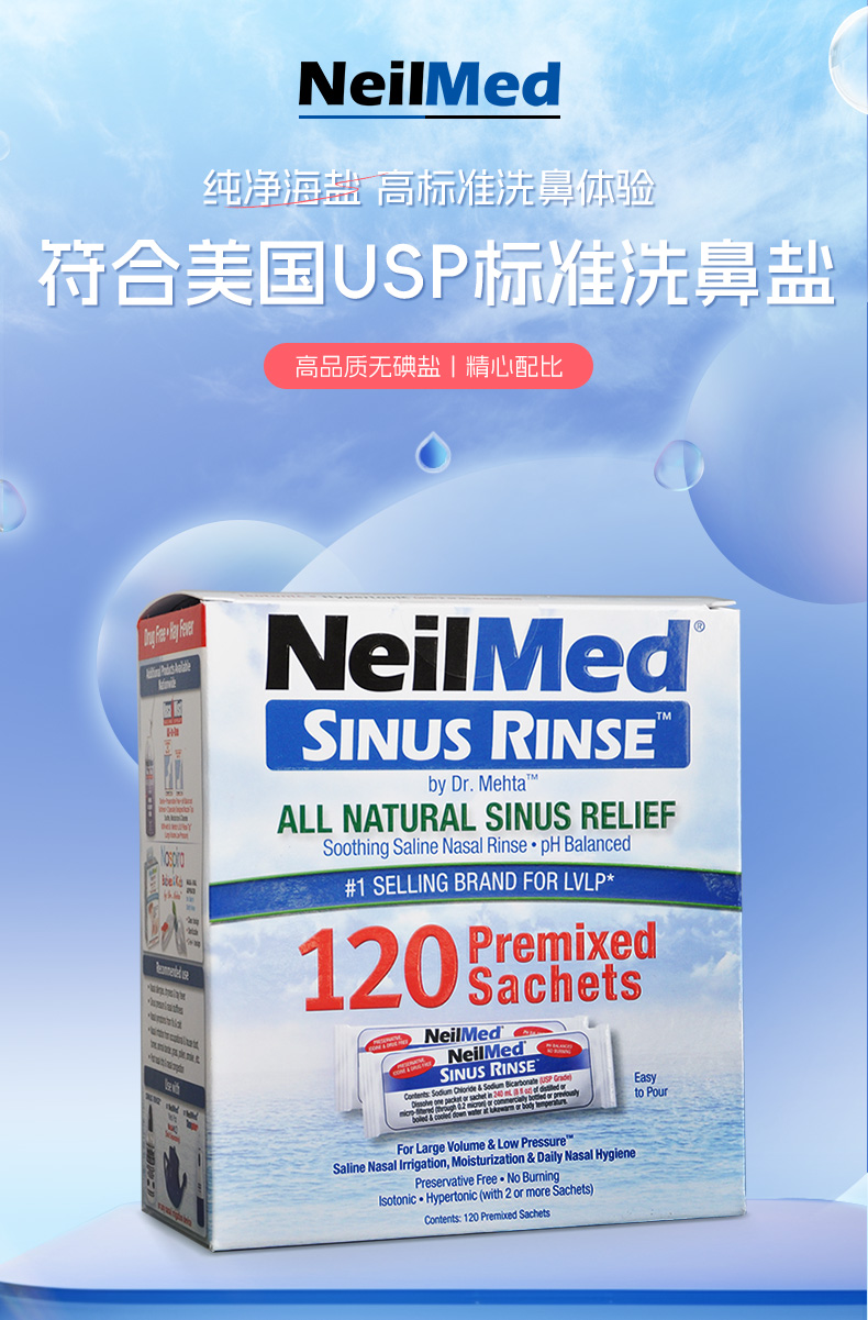 【奈尔梅德洗鼻器专用盐包】NeilMed奈尔梅德洗鼻器专用盐2.08g/袋*120袋
